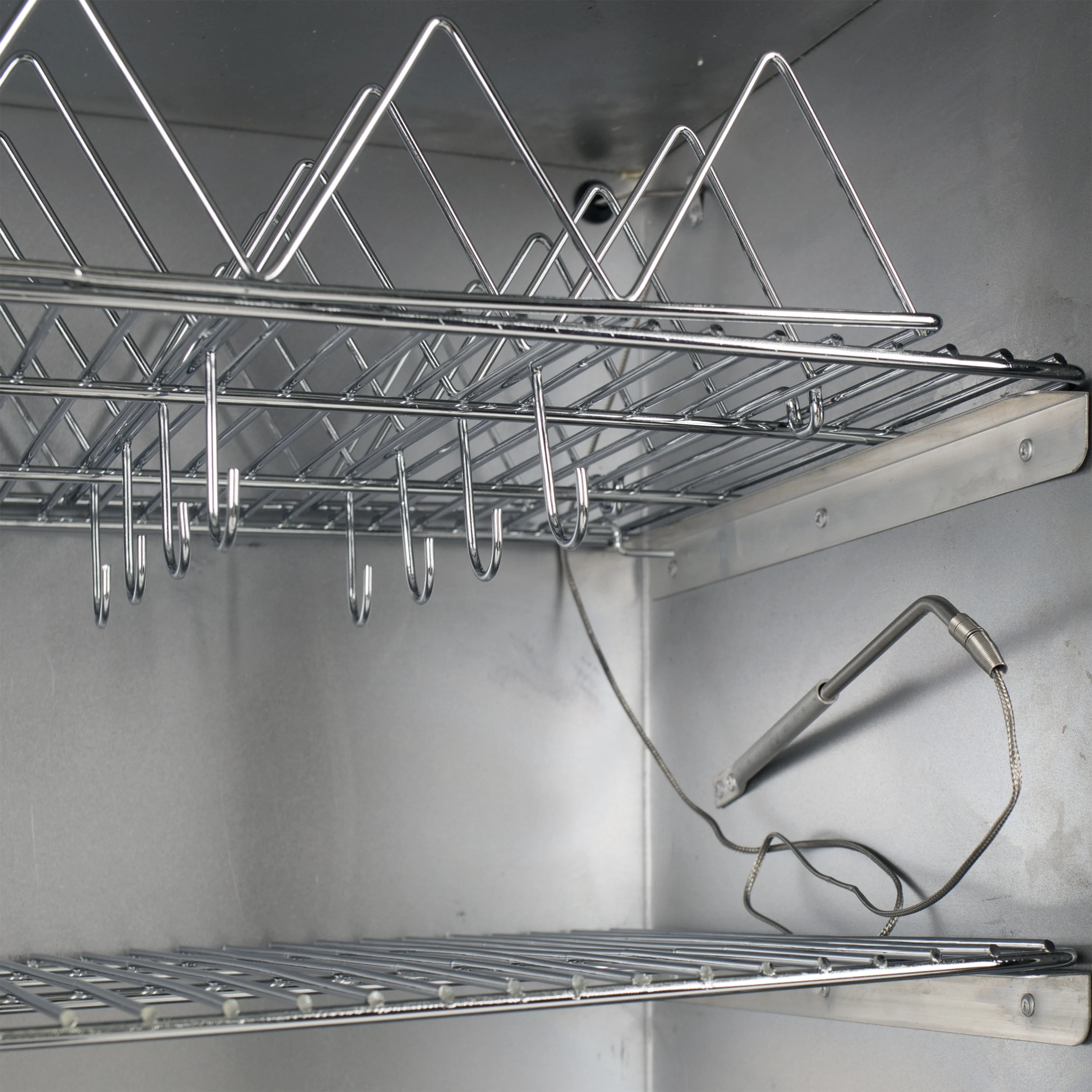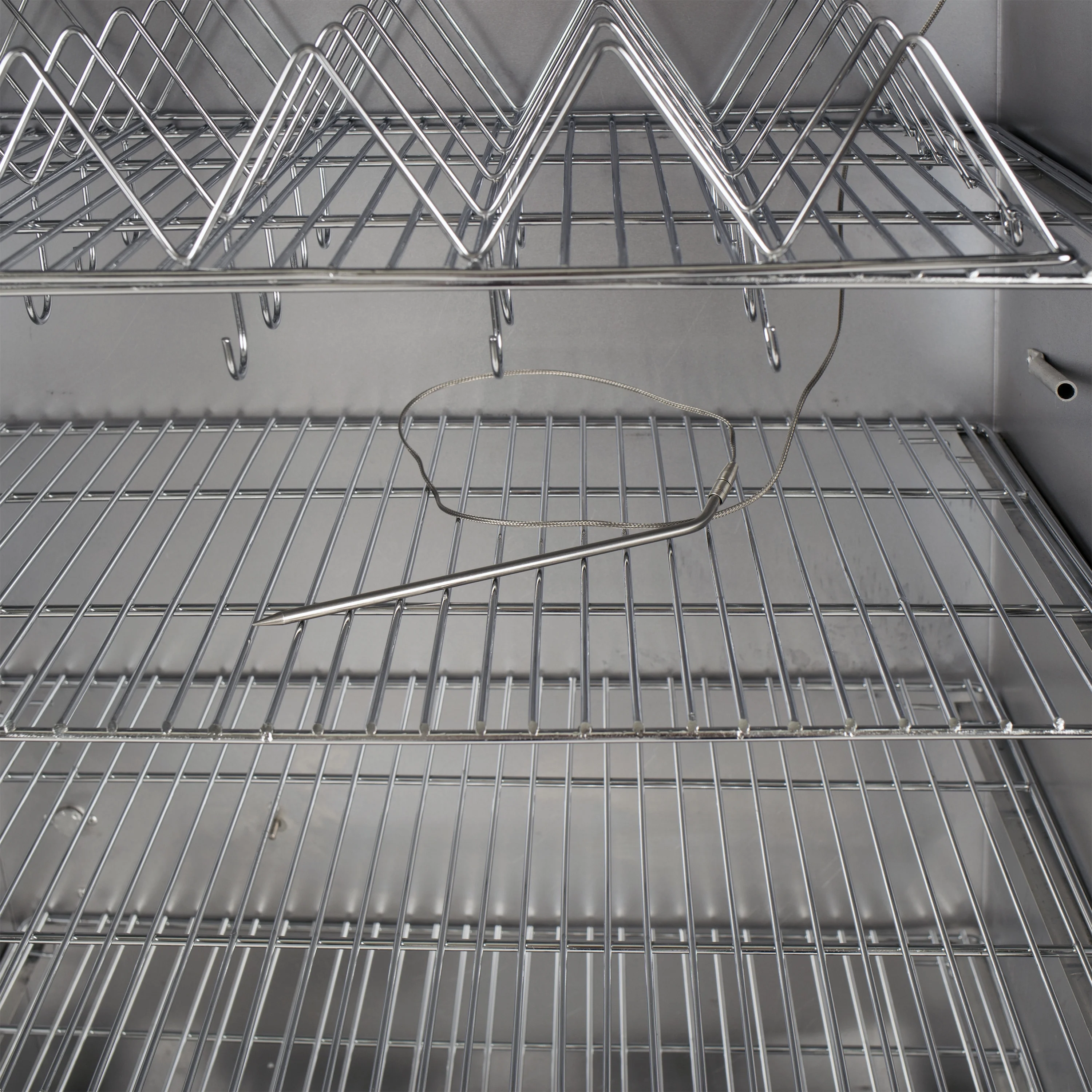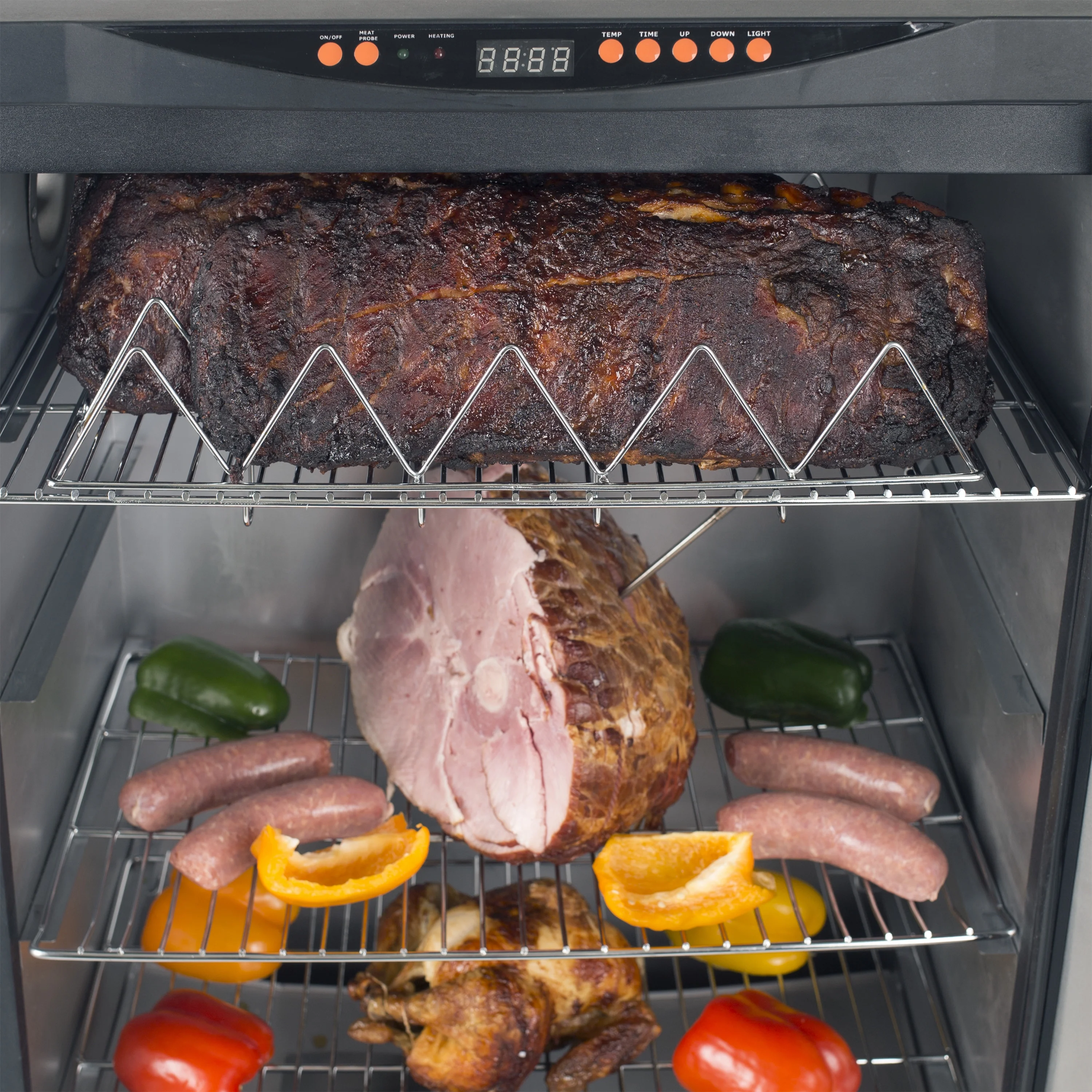 - Removable rib rack and sausage hooks offer additional cooking options