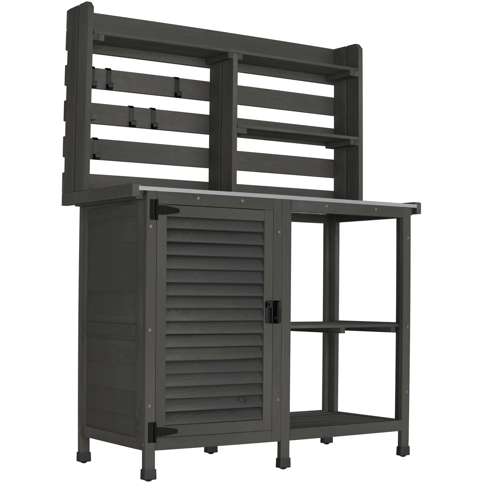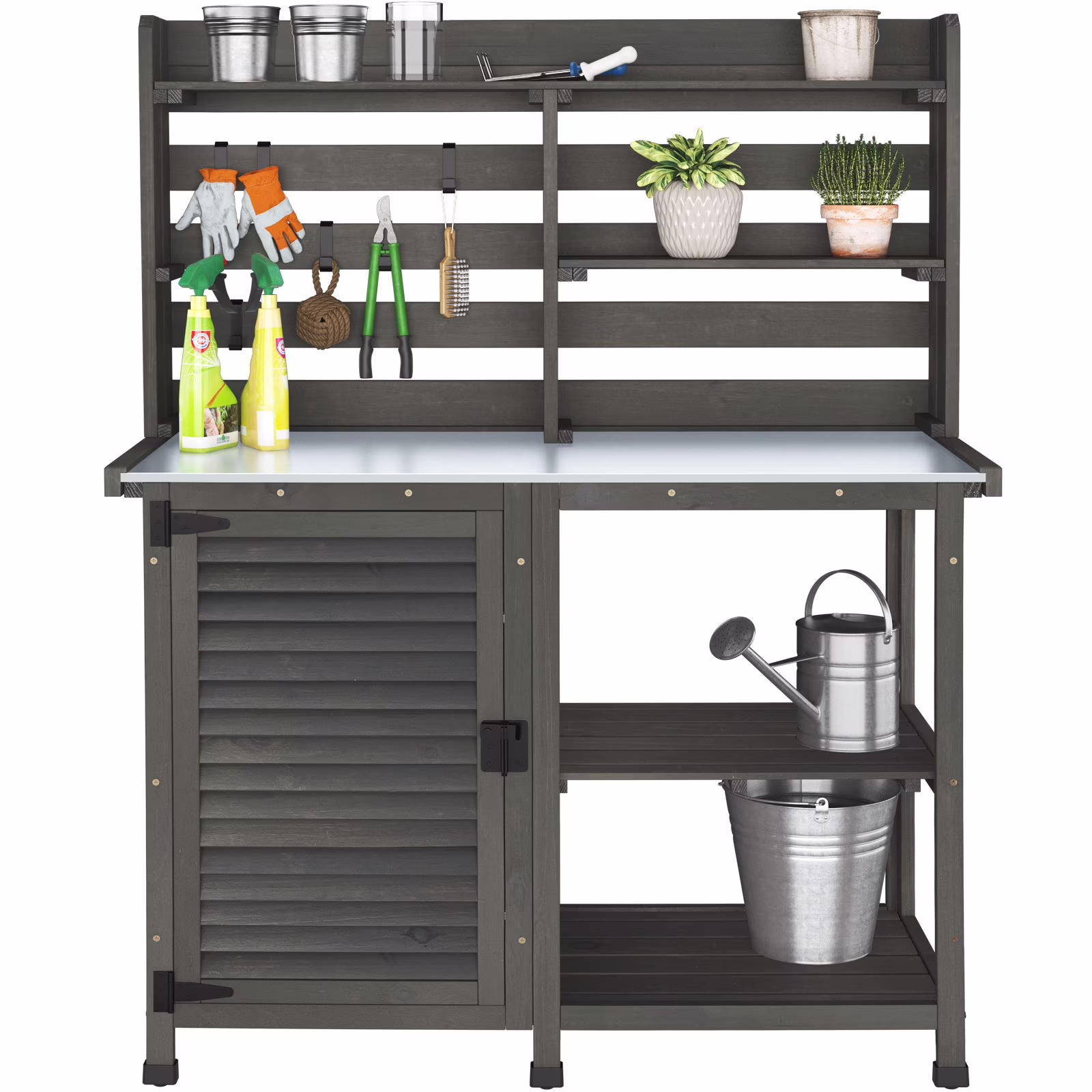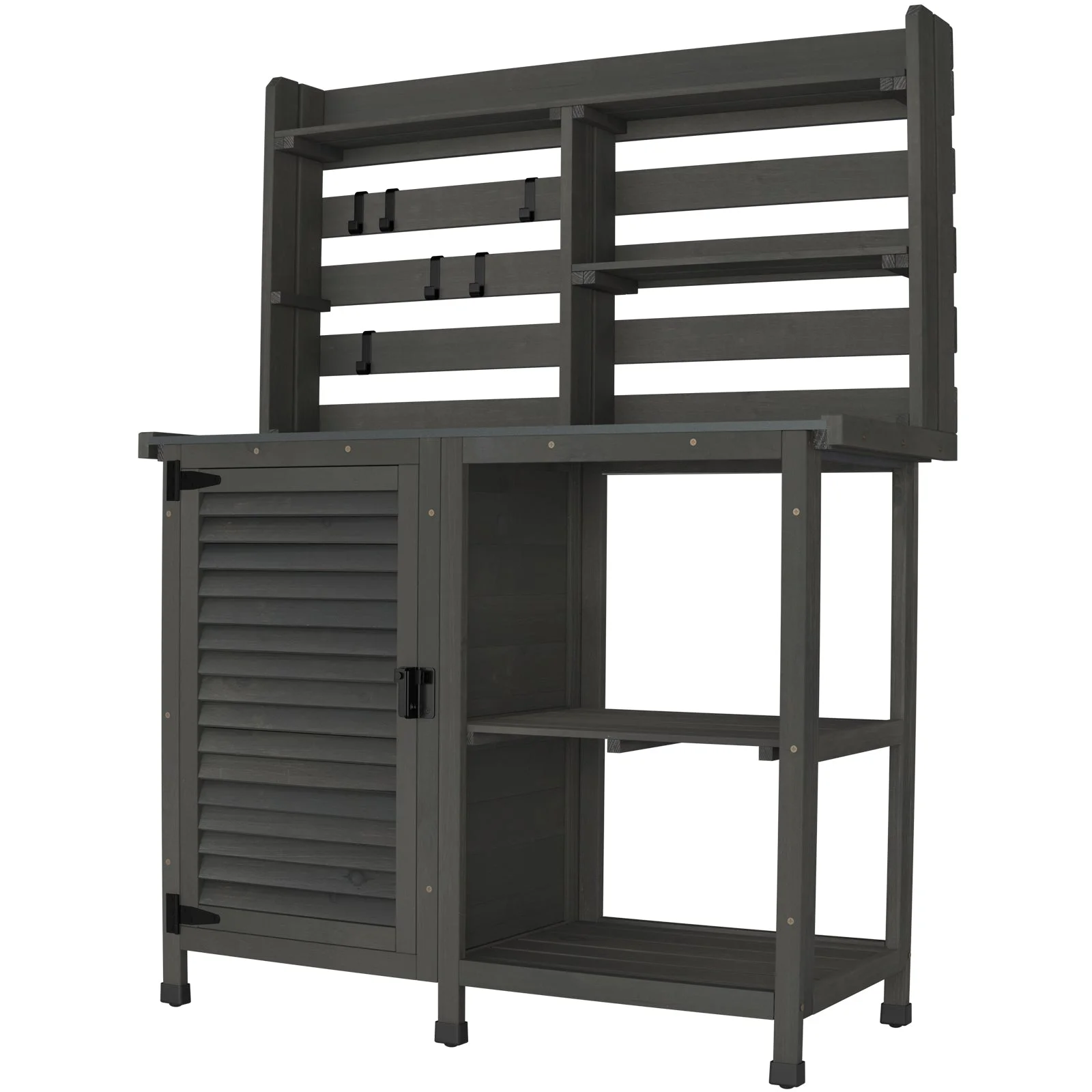 - Large outdoor GDLF potting bench: one of the largest on the market gives you all the room you need to work and store your garden supplies. The main body is 100% solid wood, feature-rich and sturdy.