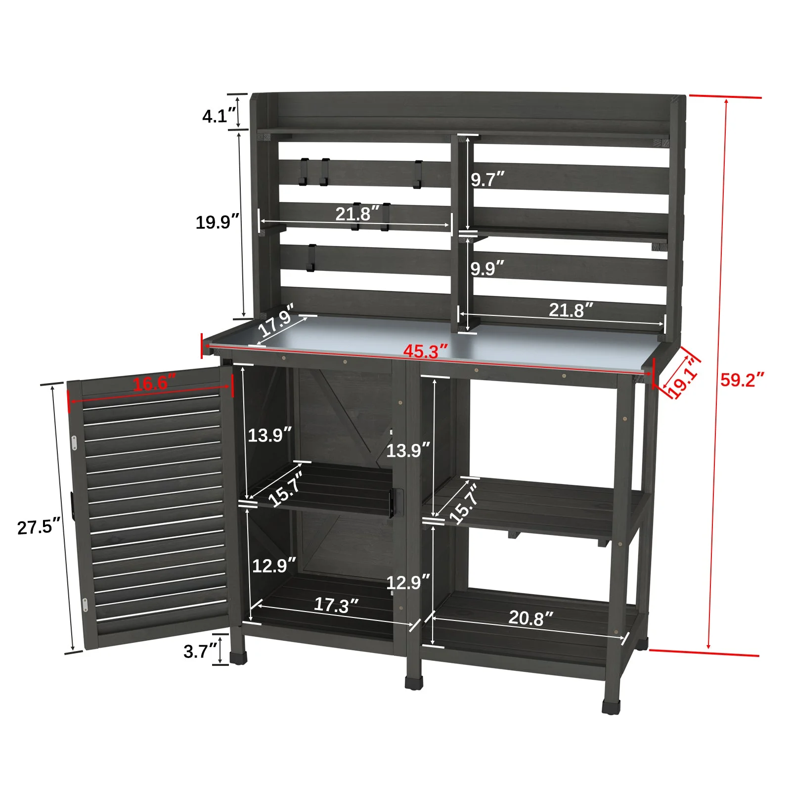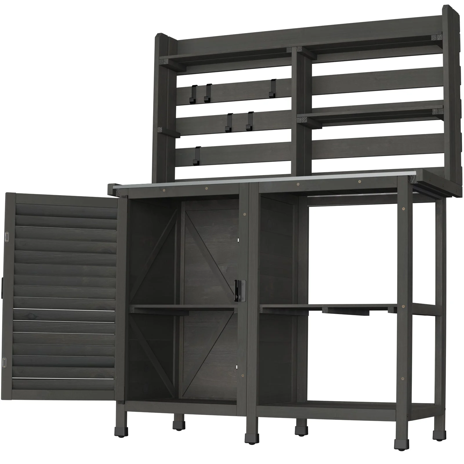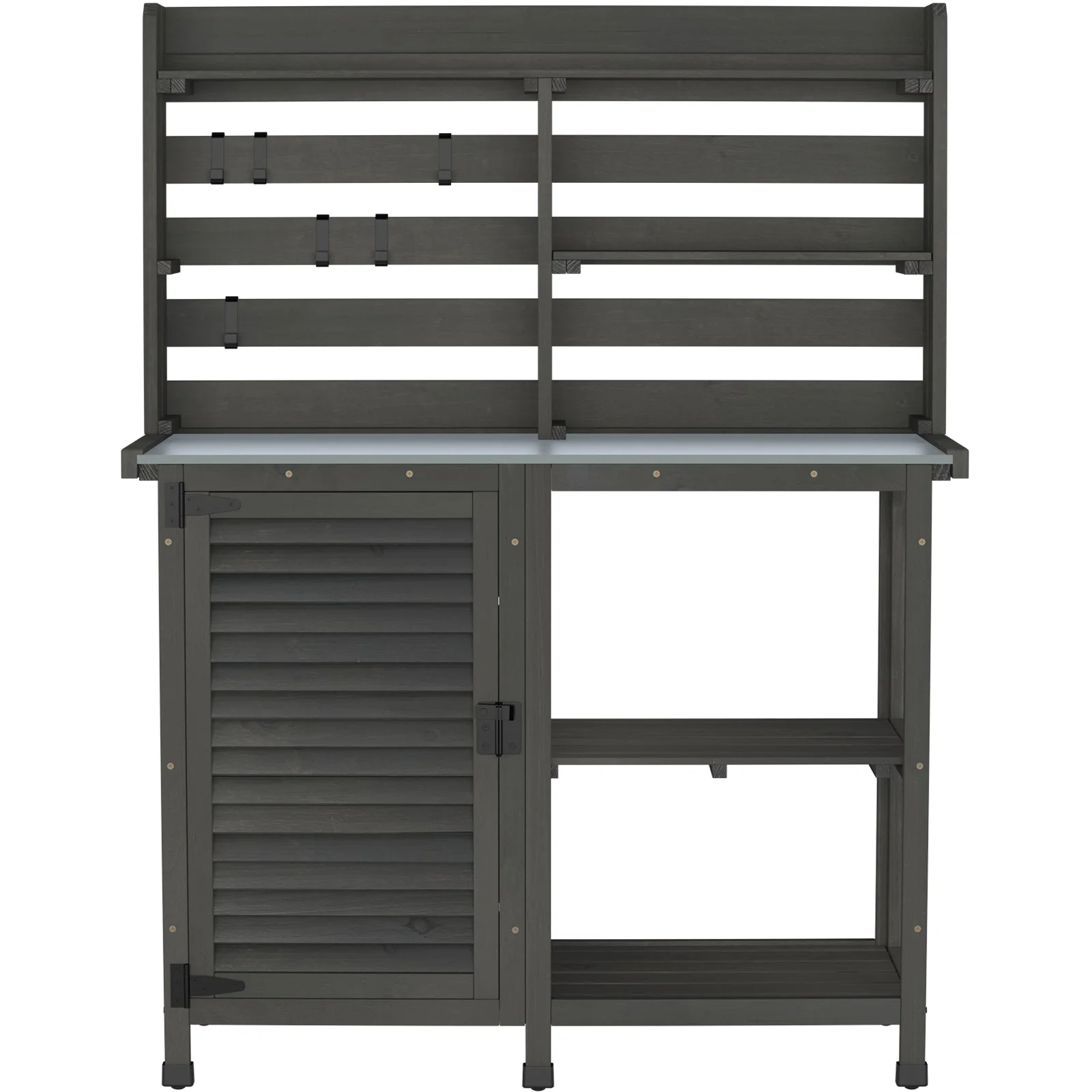 - Large outdoor GDLF potting bench: one of the largest on the market gives you all the room you need to work and store your garden supplies. The main body is 100% solid wood, feature-rich and sturdy.