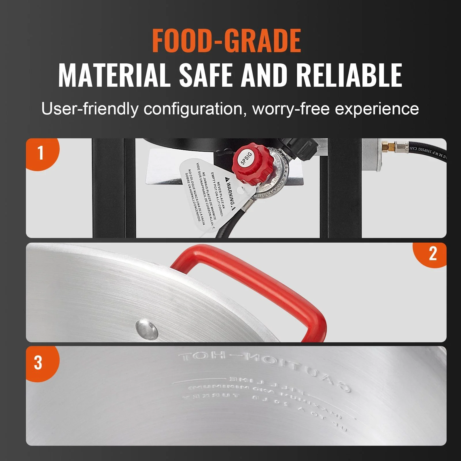 - User-Friendly Design: Upgraded packaging and accessories, providing more user-friendly product service. Strengthened propane gas boiler packaging protection to prevent product denting; maximum output of 54, 000 BTU, full firepower for quick and effortless cooking; added warning stickers to prevent dry burning; added plastic handles to enhance grip and improve heat resistance.