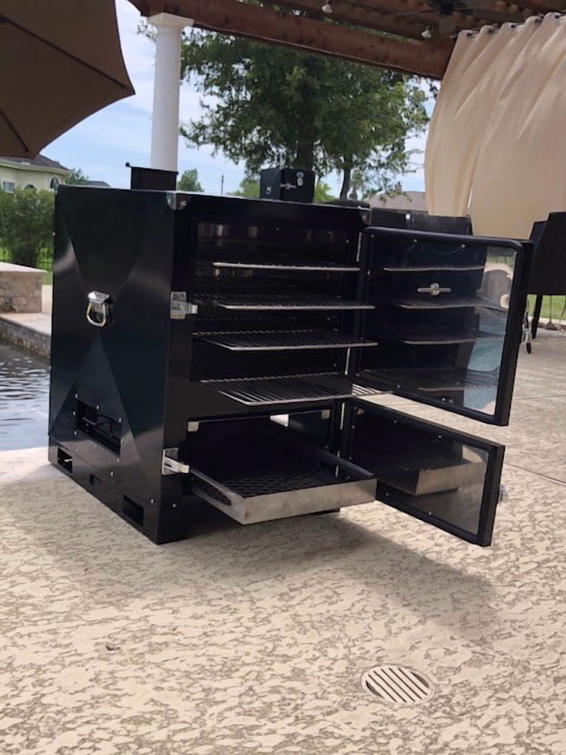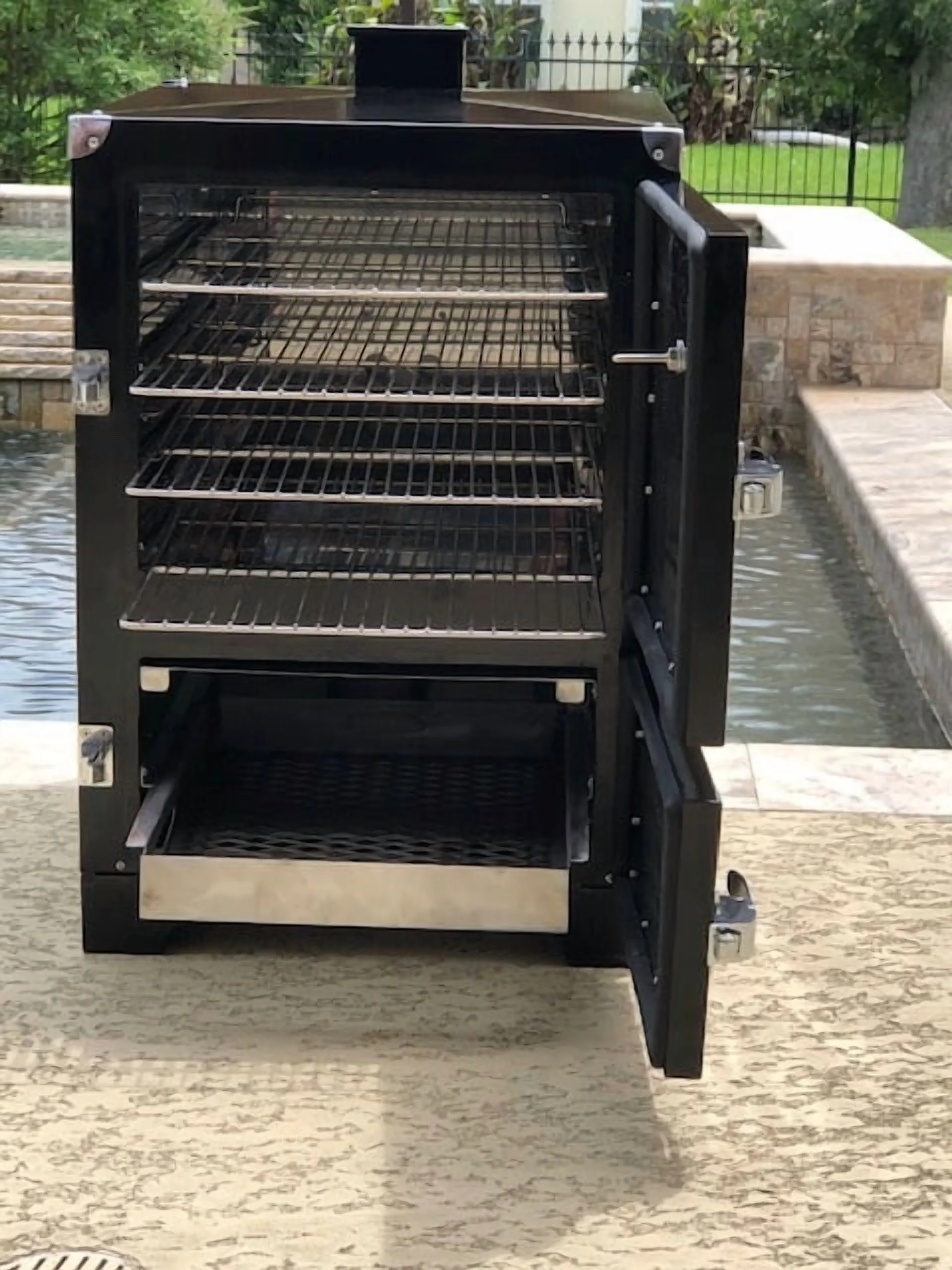 - 18 baby back ribs or 6-(10-12 pound briskets) or 4-6 chicken halves per cooking rack
