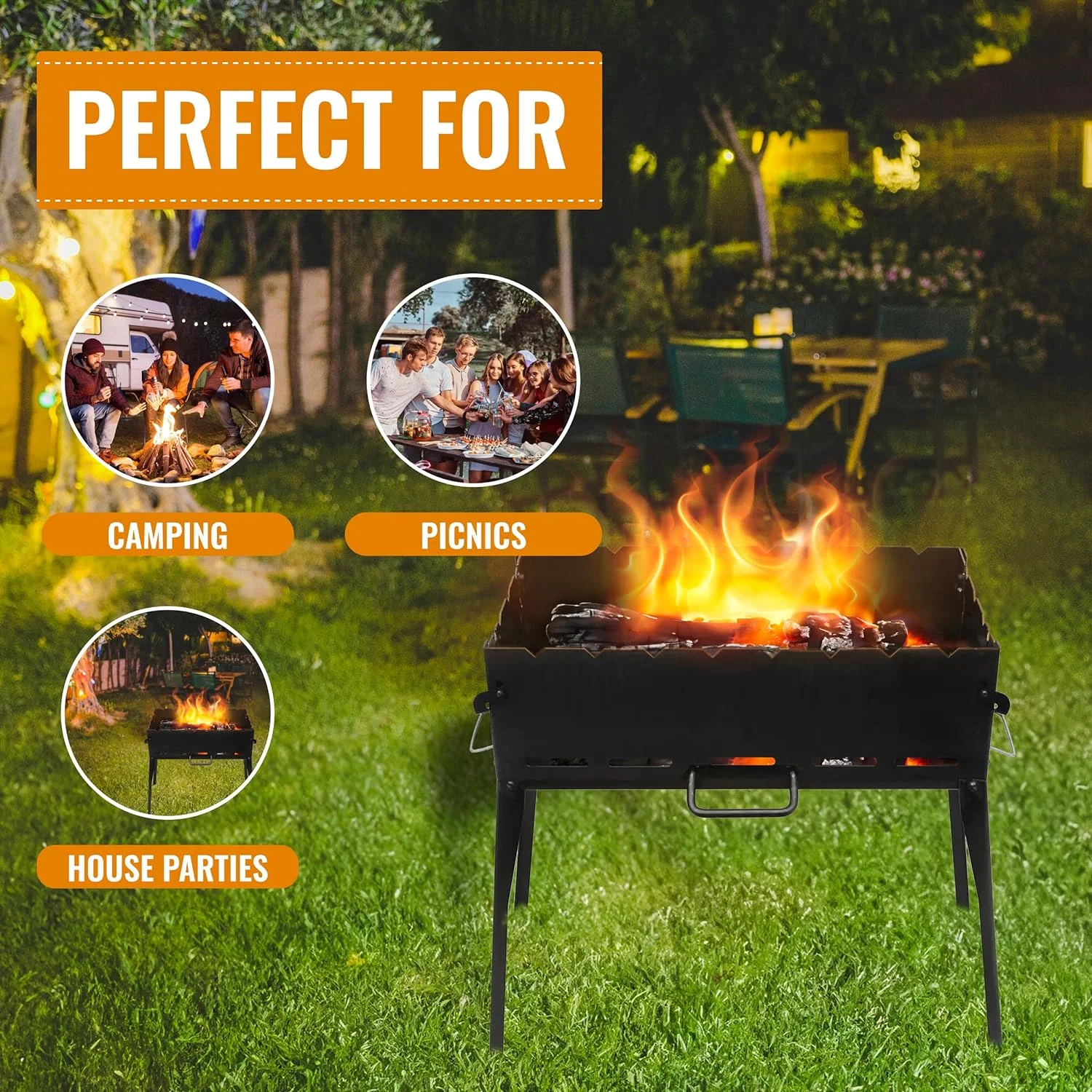 - Portable Grill - Using this portable BBQ grill is the best and healthiest way to grill. Made for easy carry and storage. Perfect for camping, backpacking, picnics, tailgate parties, camping, trailers, parks, and grilling in small spaces.