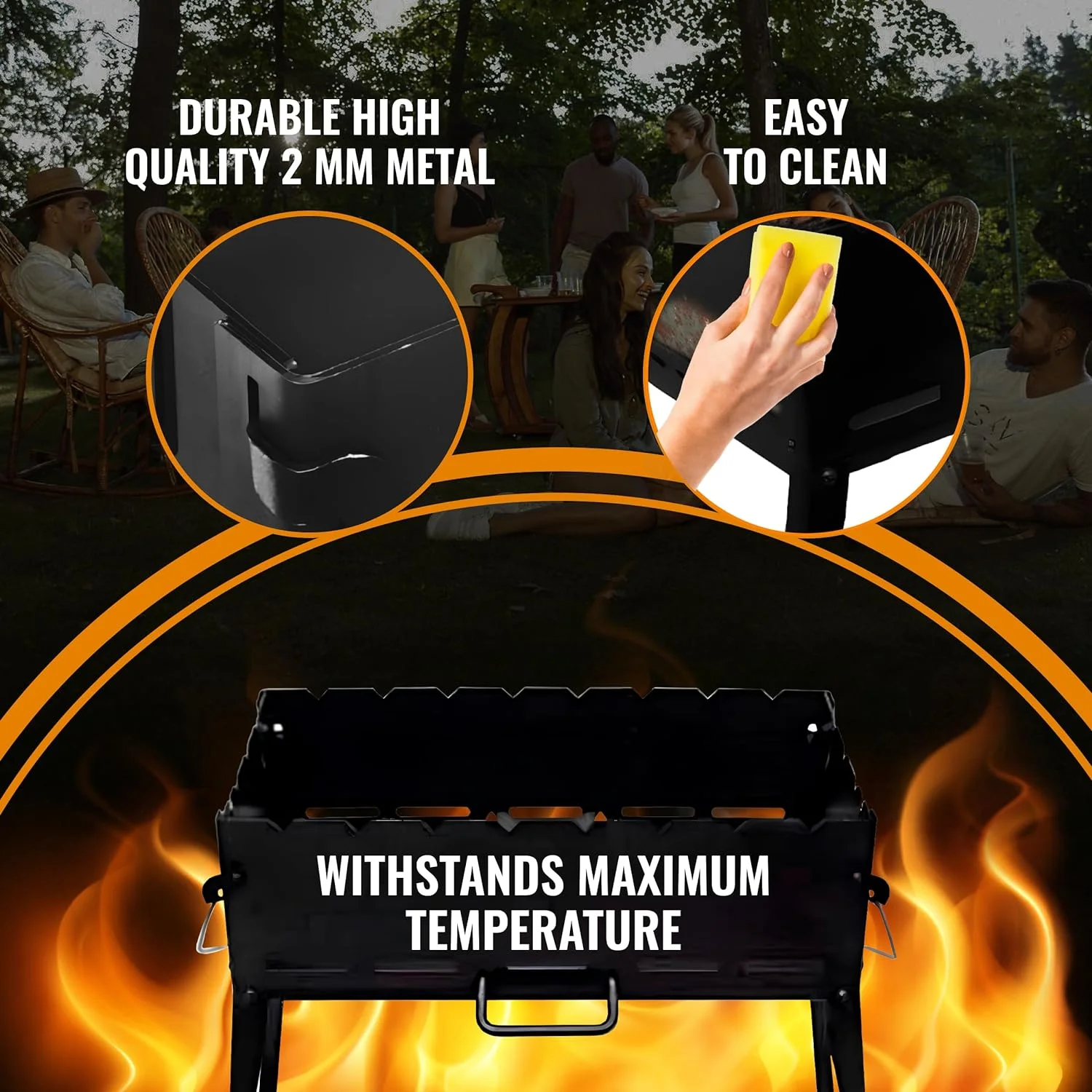 - Quality Material - Our folding barbeque grill is made ofmetal thicknessl, solid and excellent abrasive resistance, no rust, no twist, durable, and long-lasting.