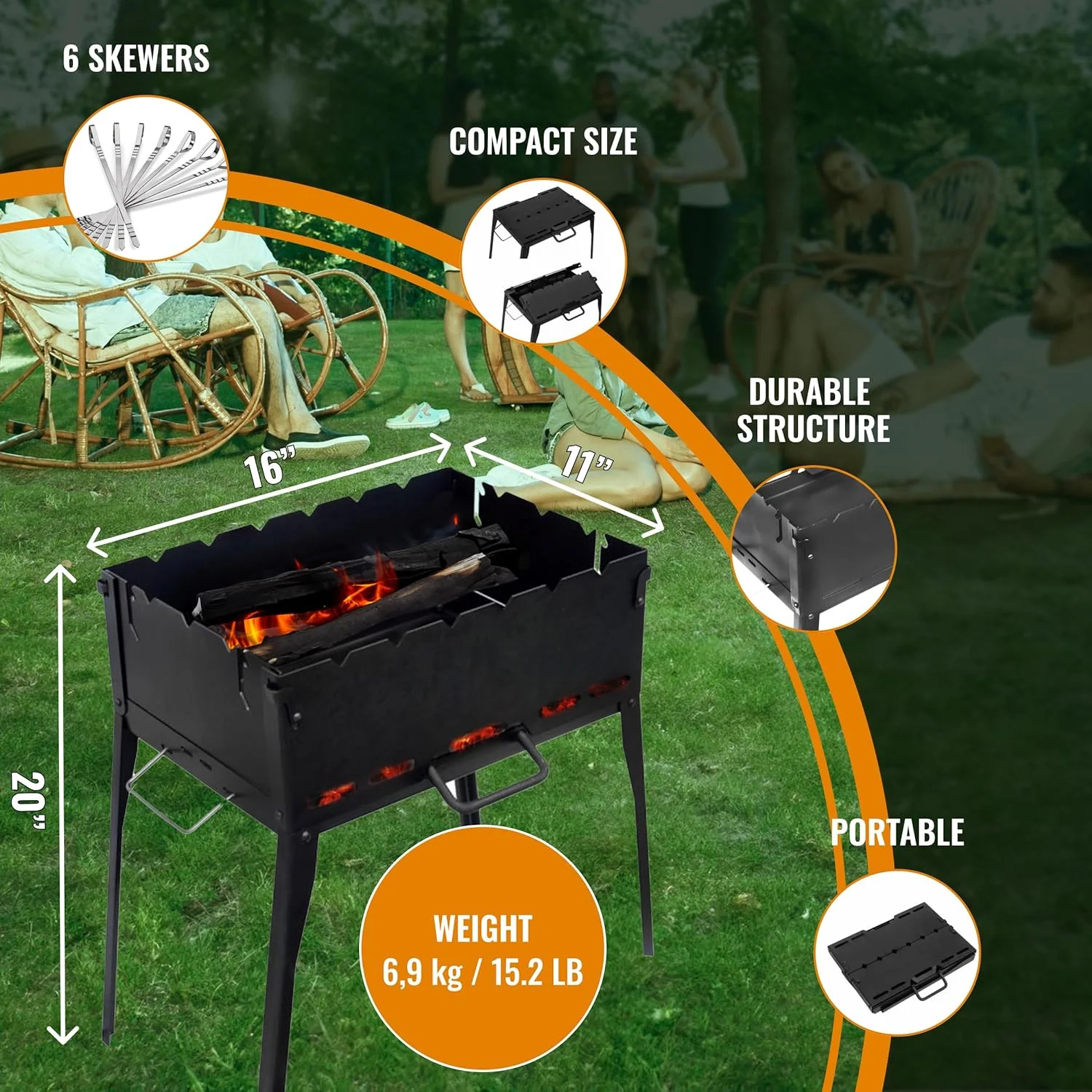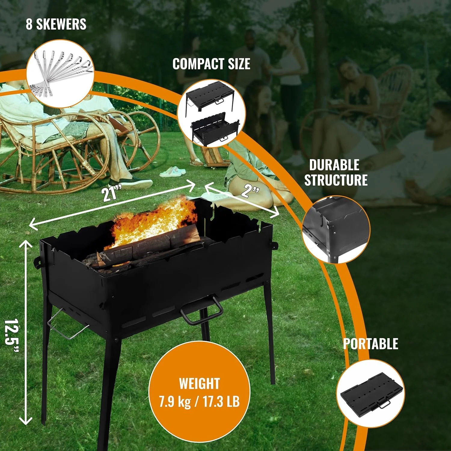 - BBQ Kabab - Also called a Portable Mangal Grill, this stainless steel grill is perfect for any Skewers, Shish Kebab, Lamb Kebab, shashlik, Japanese Yakitori. Our BBQ grill is perfect gift for family and friends.