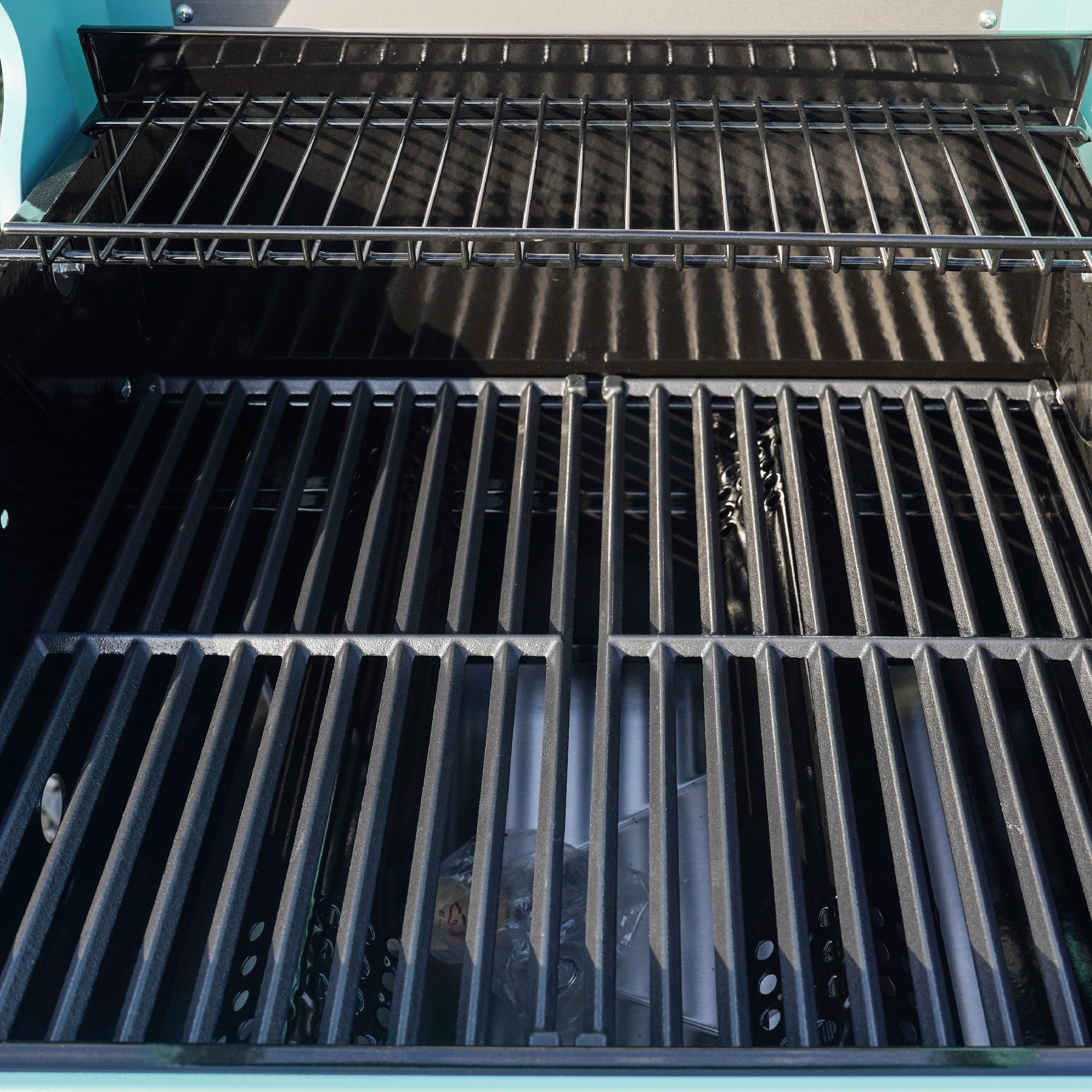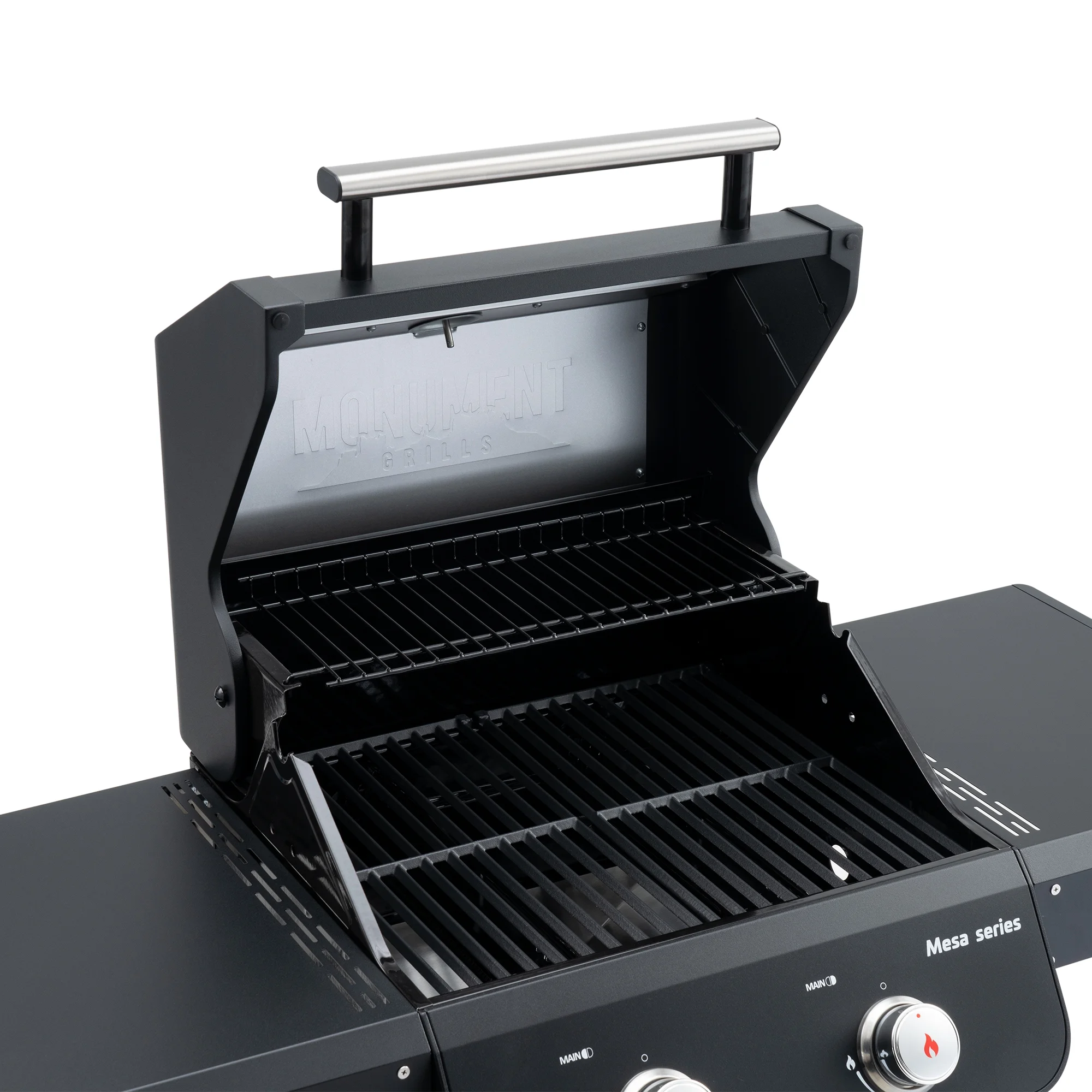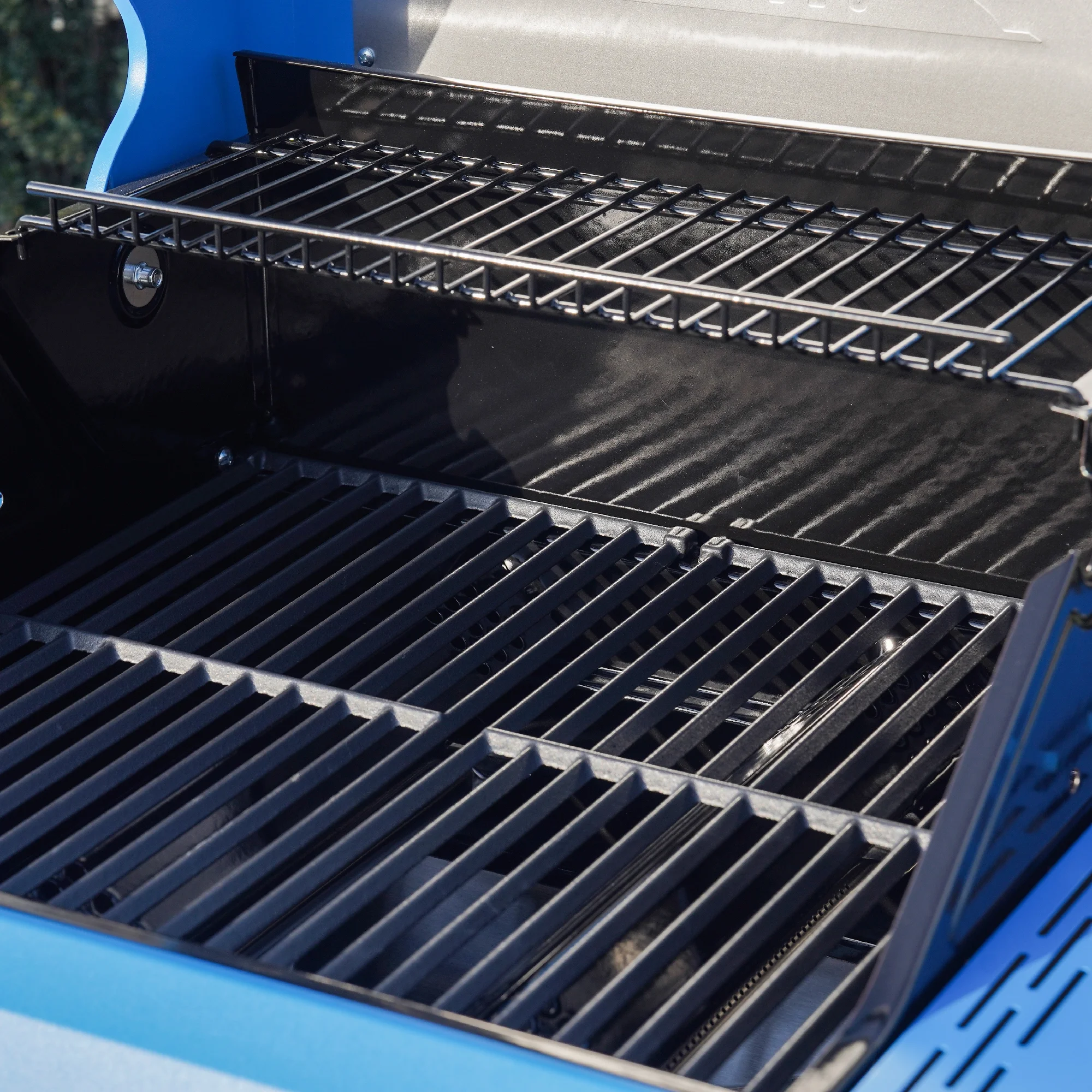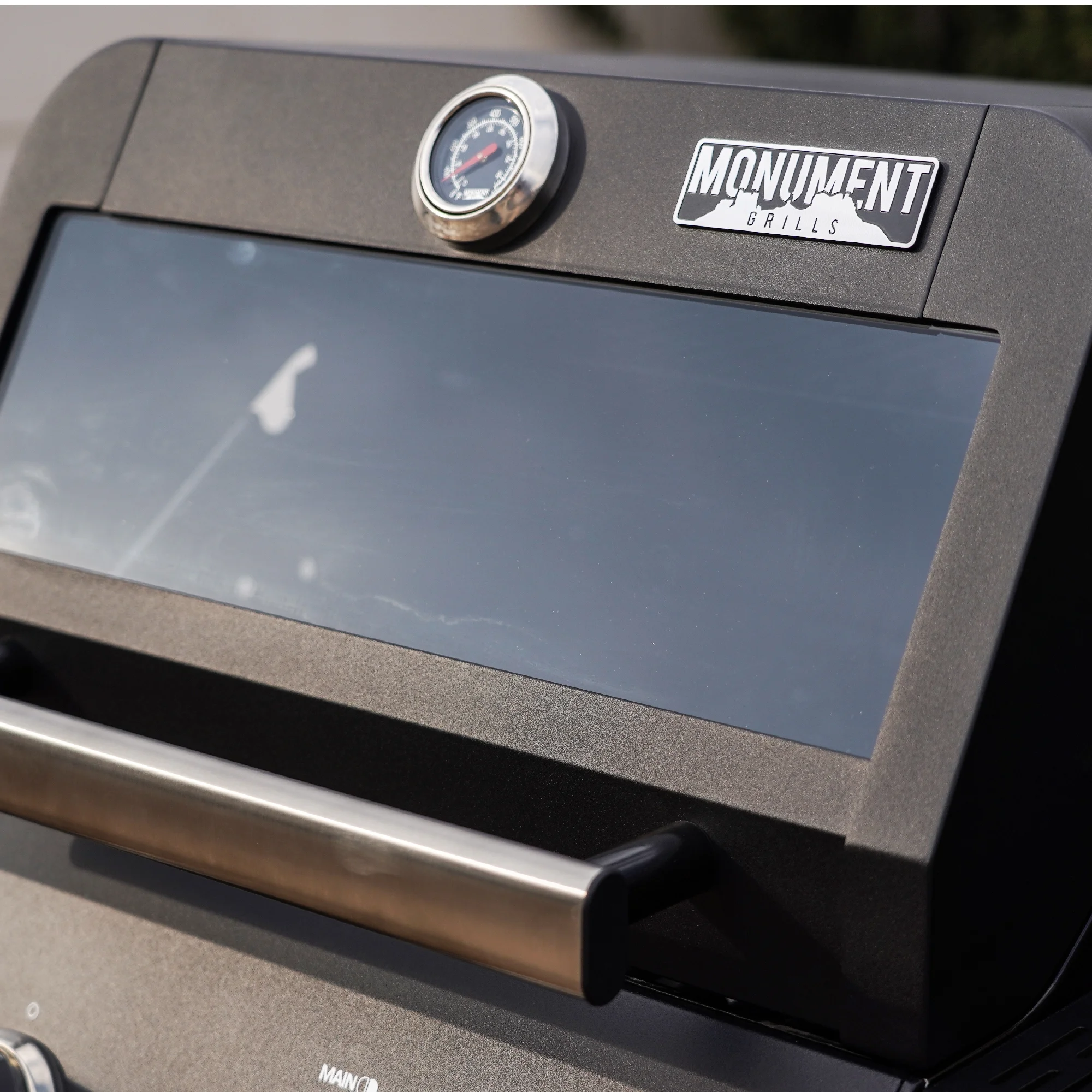 - Built-in center mounted thermometer monitors temperature inside the grill