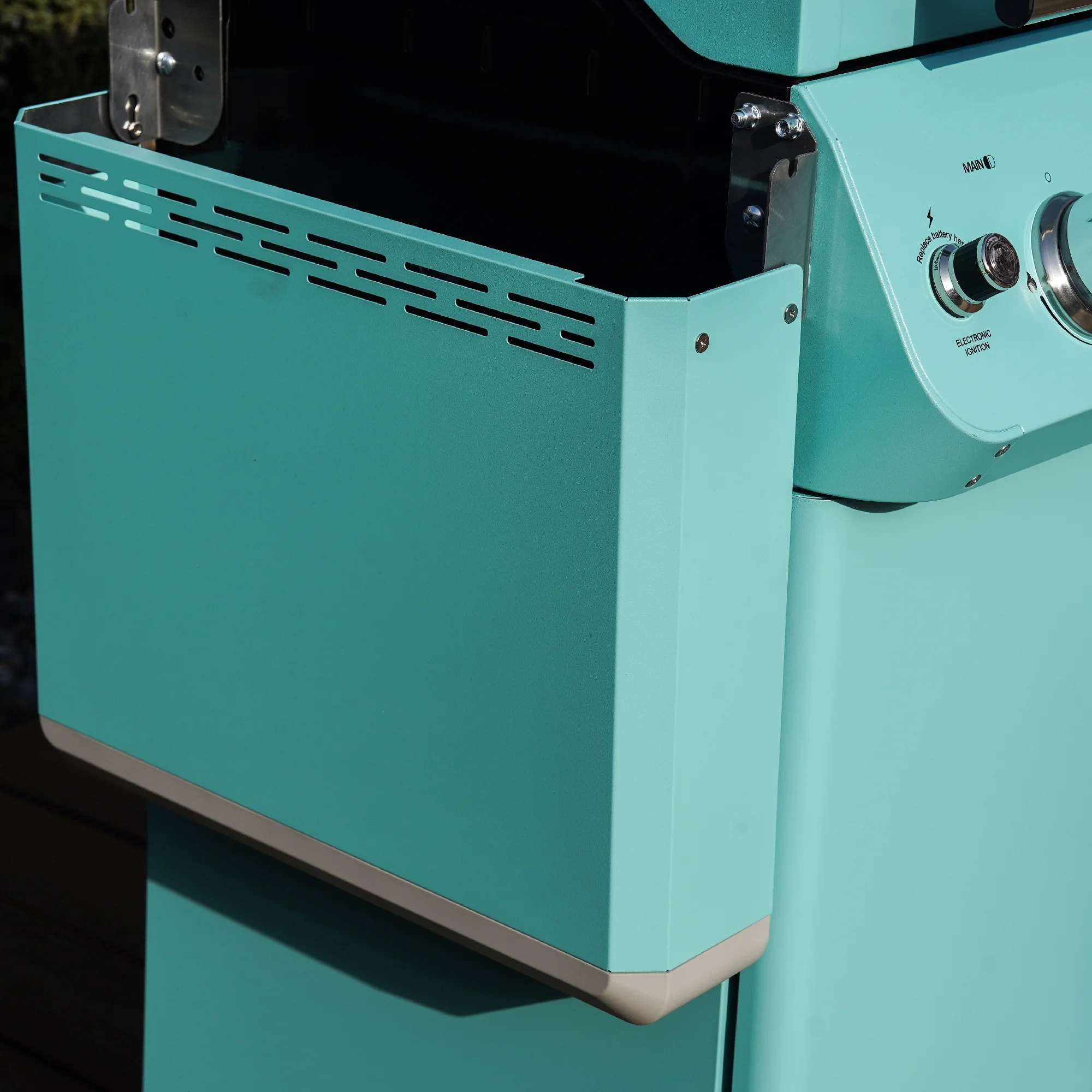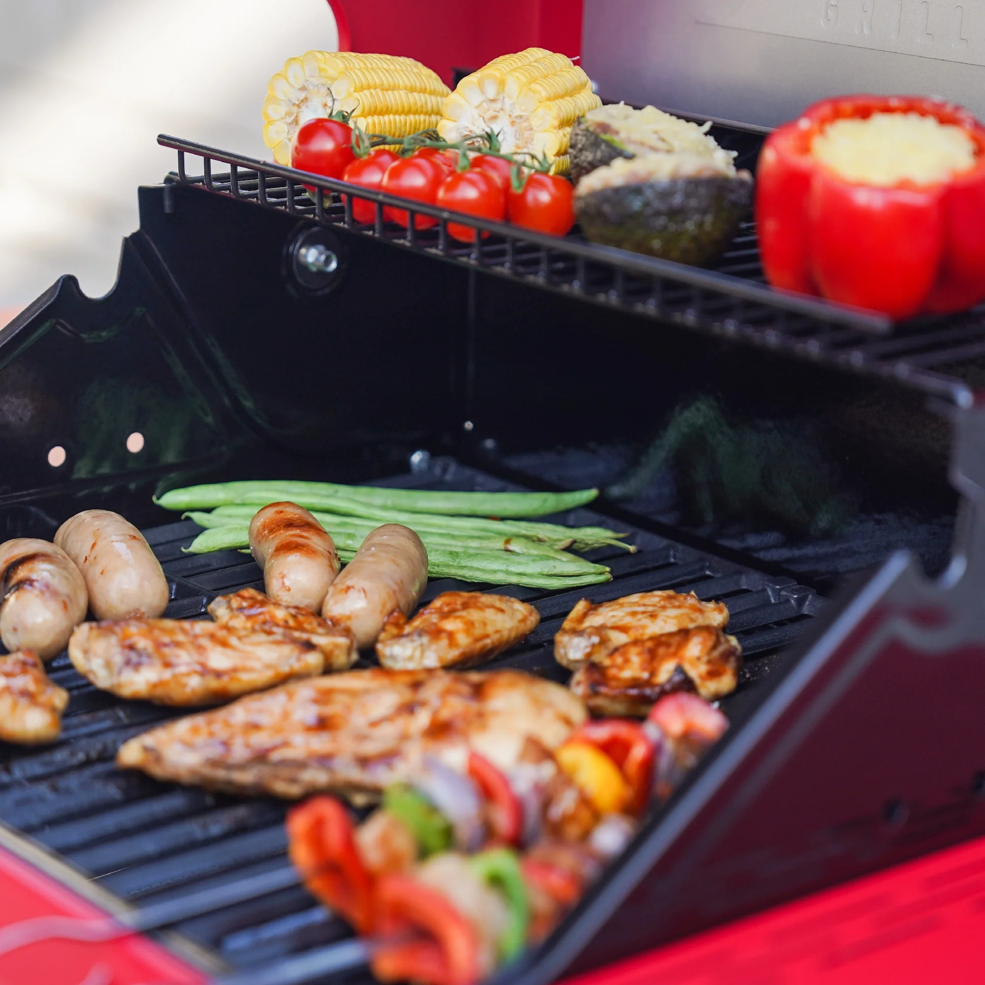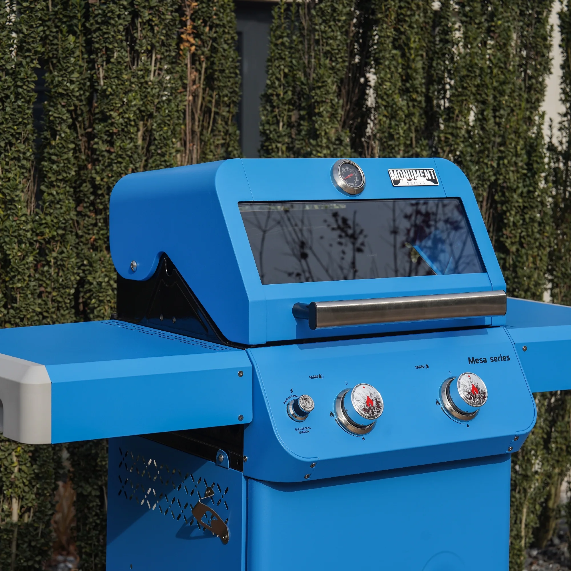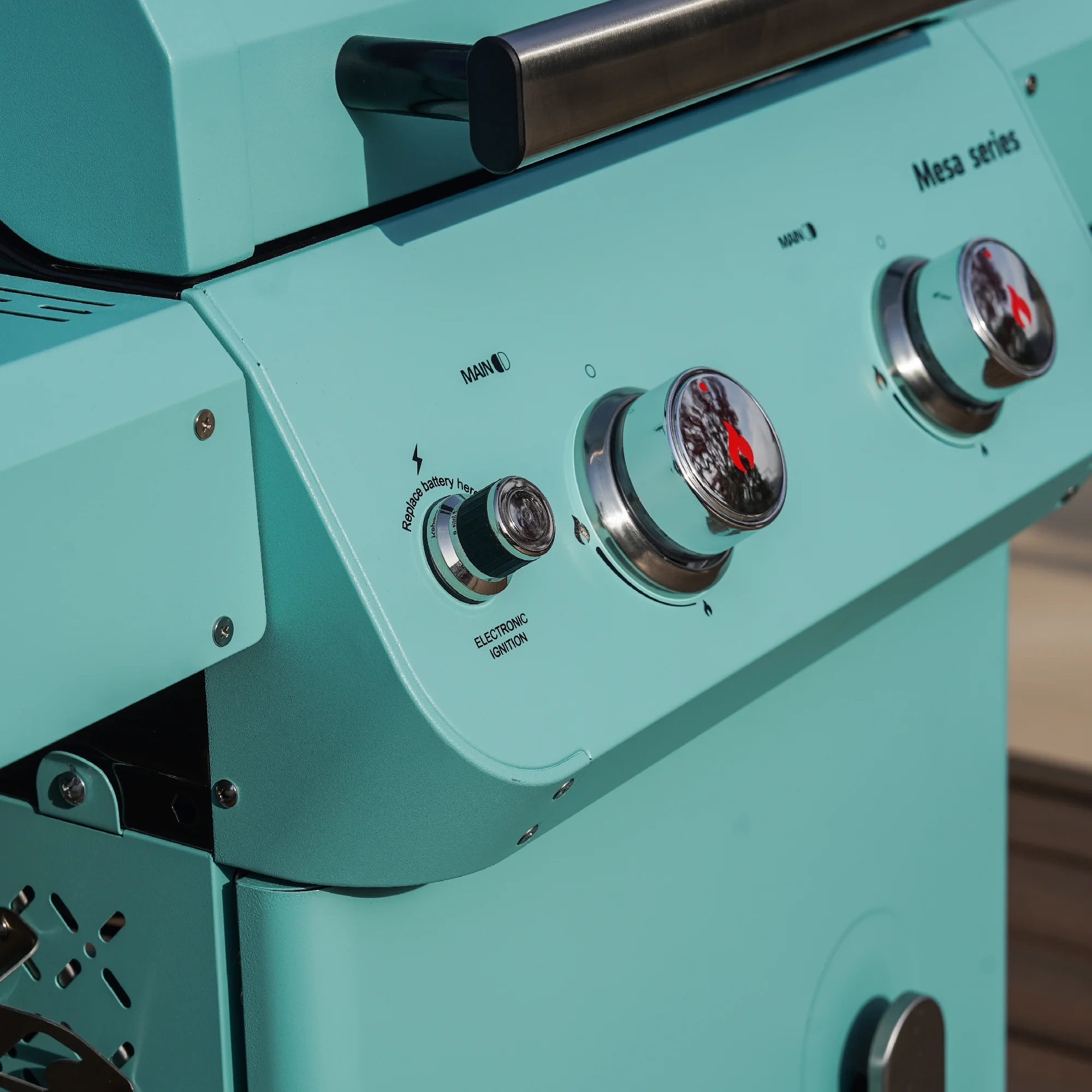 - Built-in center mounted thermometer monitors temperature inside the grill