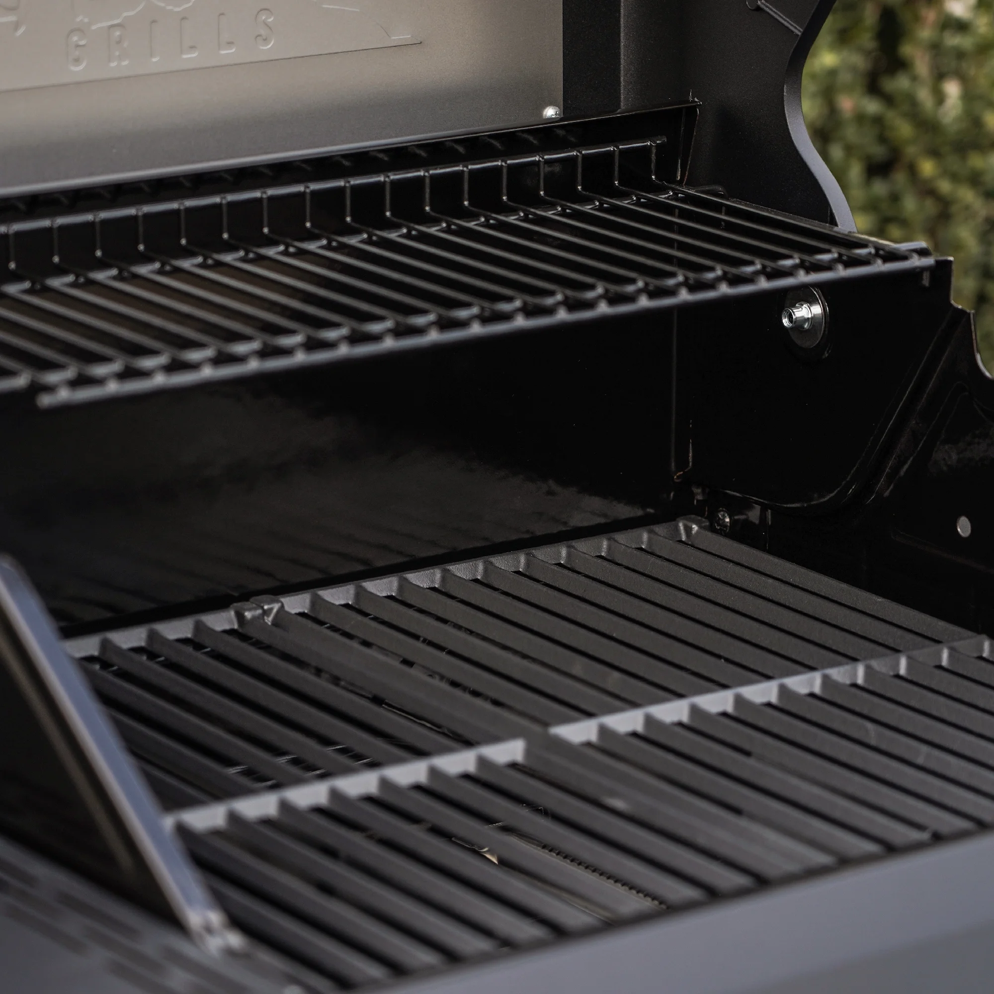 - 450 sq. in. of total cooking area offers plenty of grilling space, 320 sq. in. of primary cooking area and 130 sq. in. of warming rack area