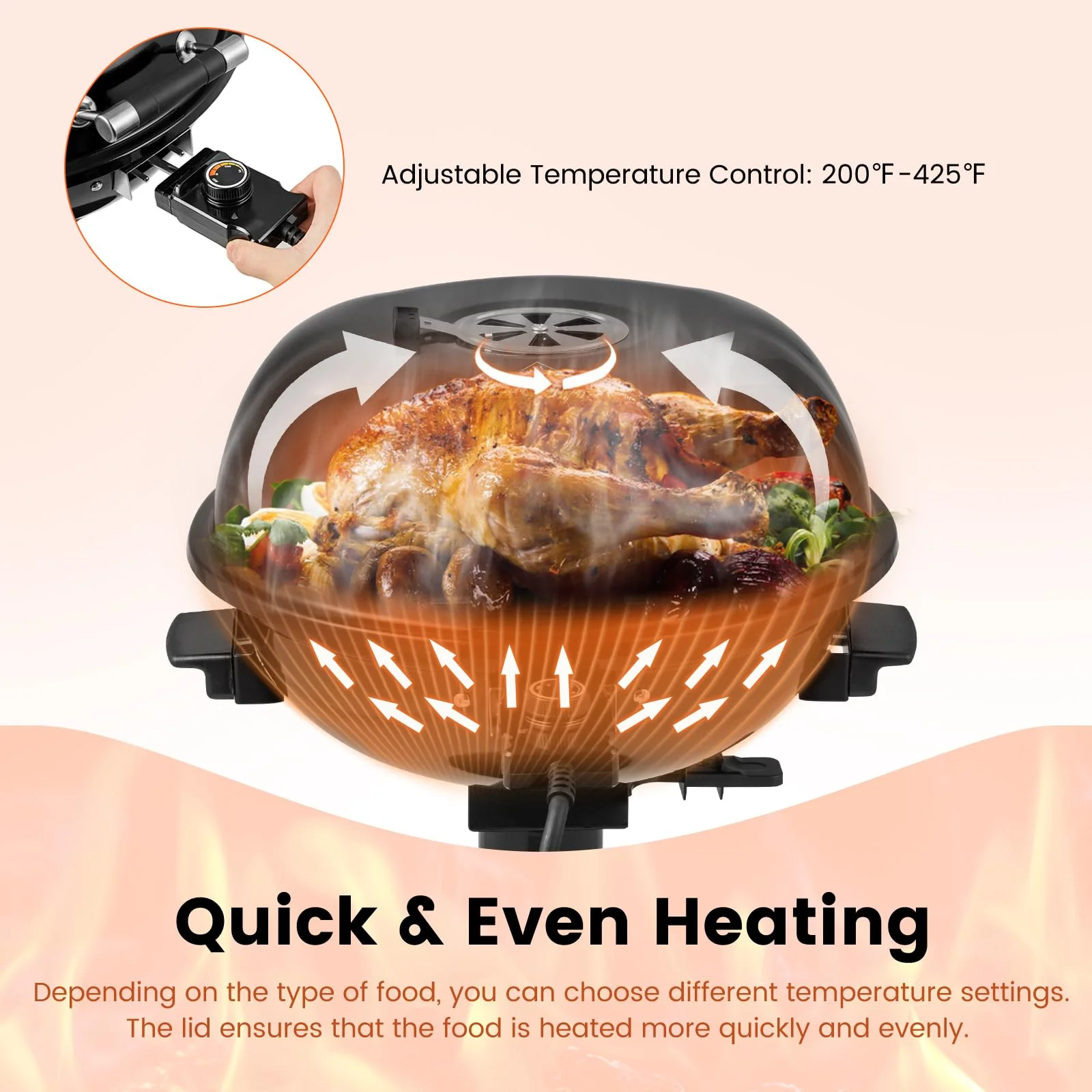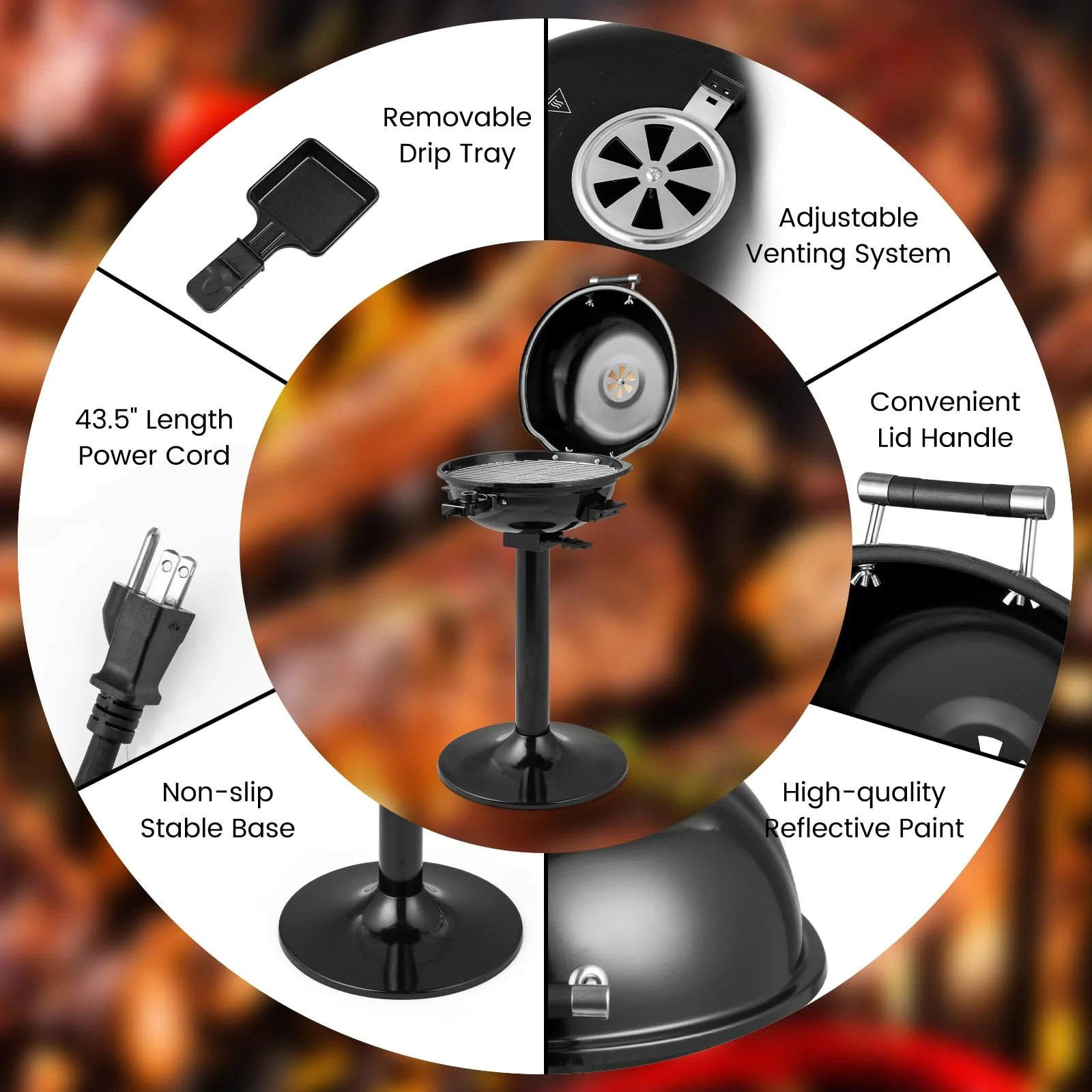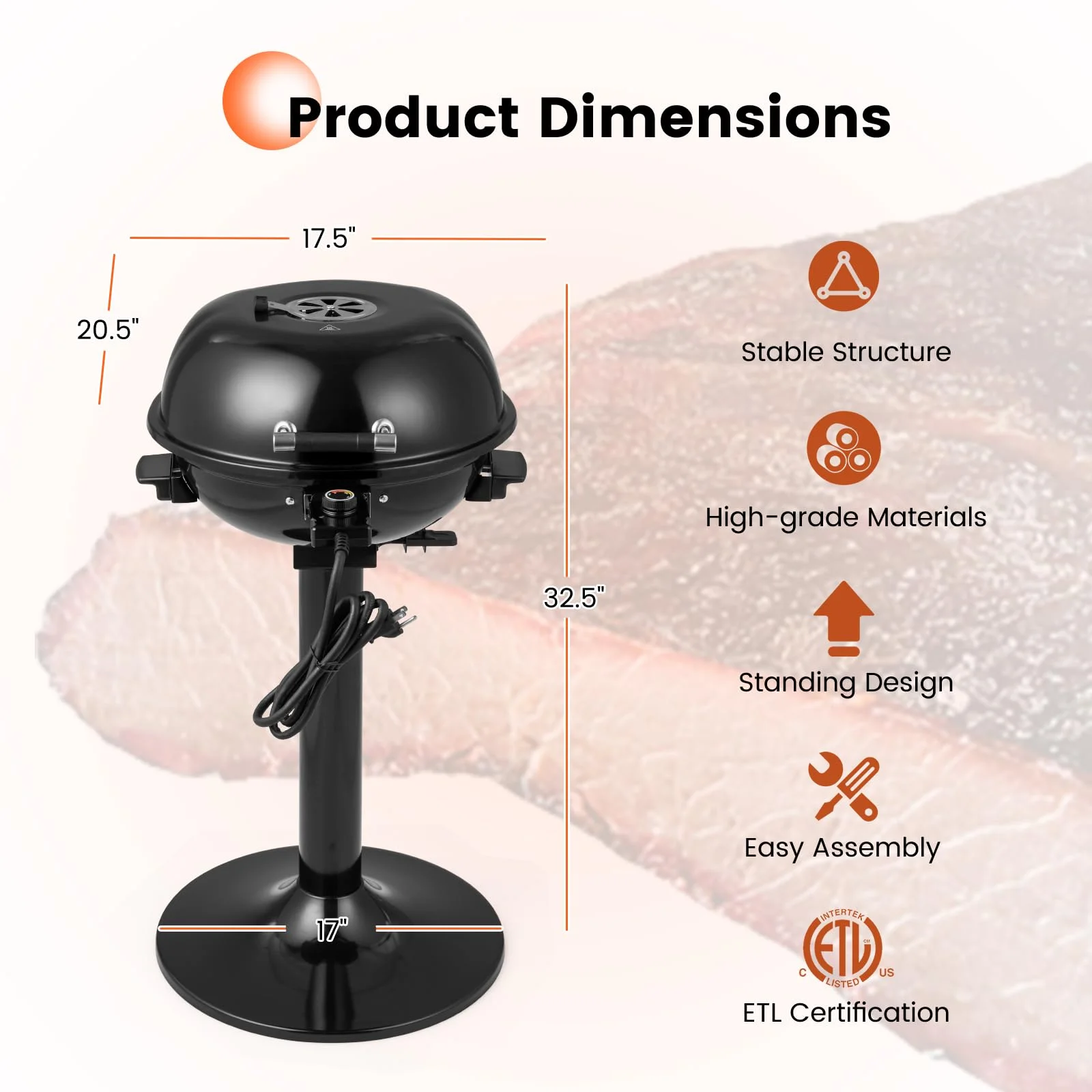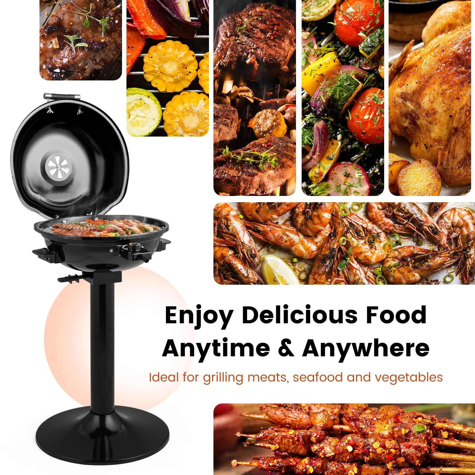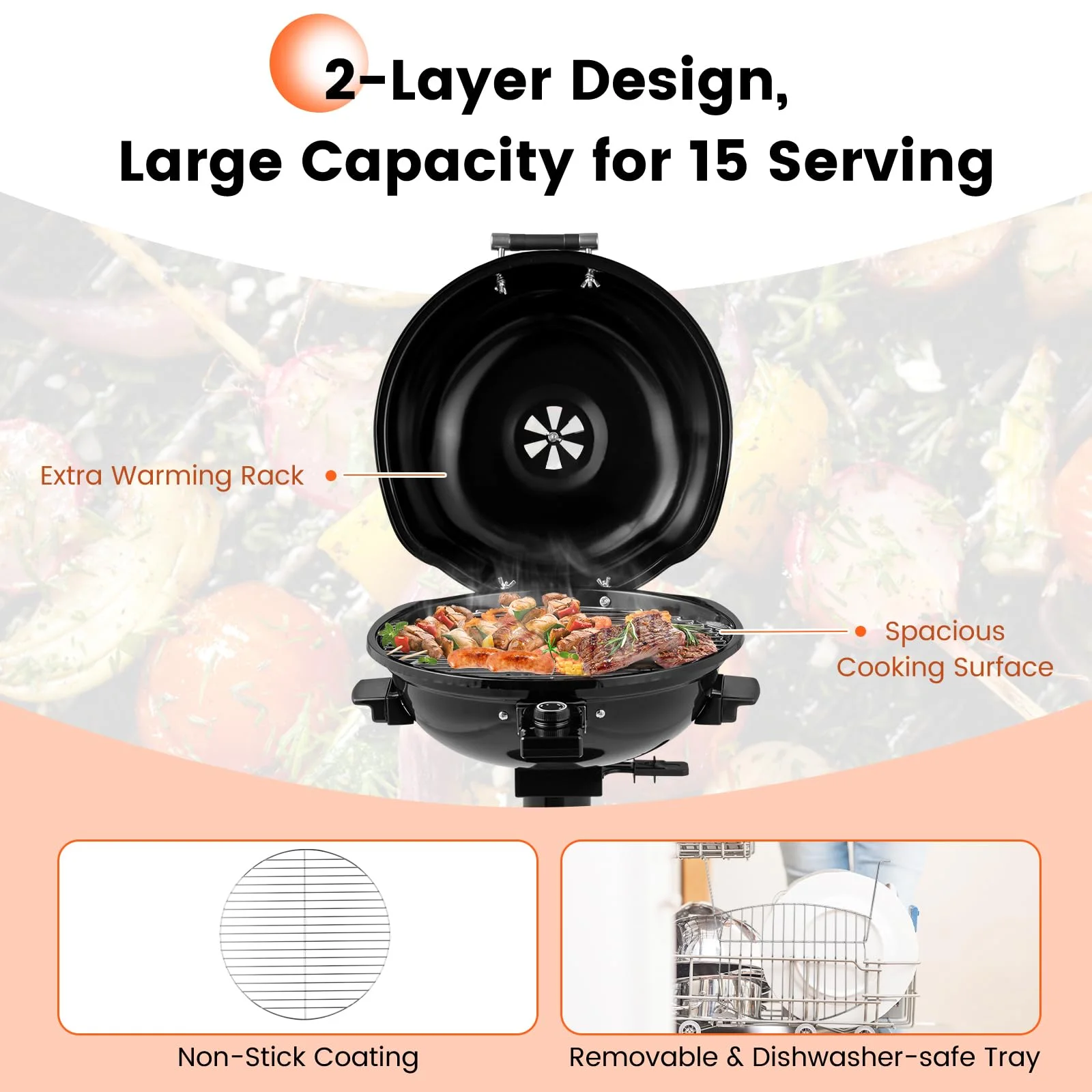 1600W Electric Grill Outdoor, 15 - Serving Freestanding Camping Grill with Warming Rack, Removable Oil Drip Tray, Adjustable Temperature Control, Portable BBQ Grill for Patio, Backyard (Black)