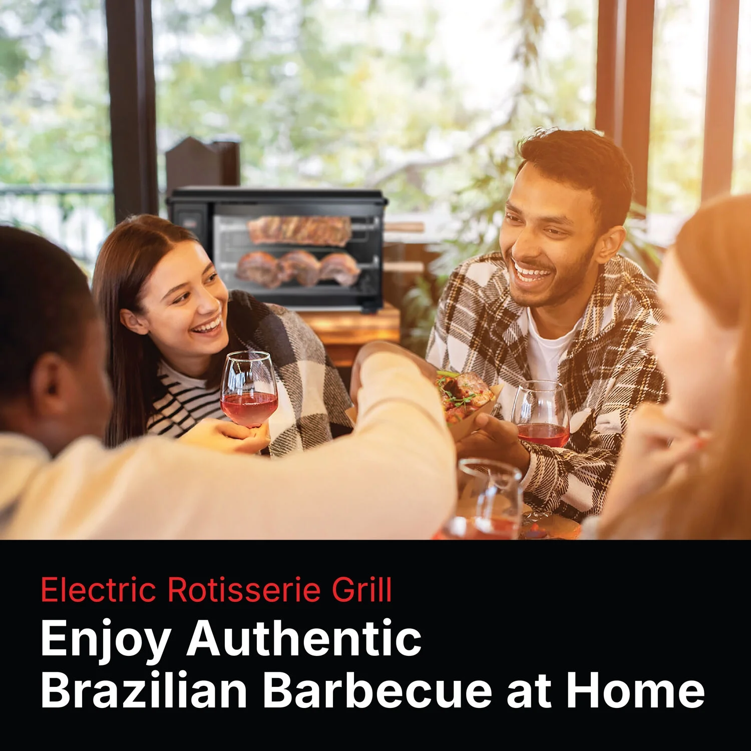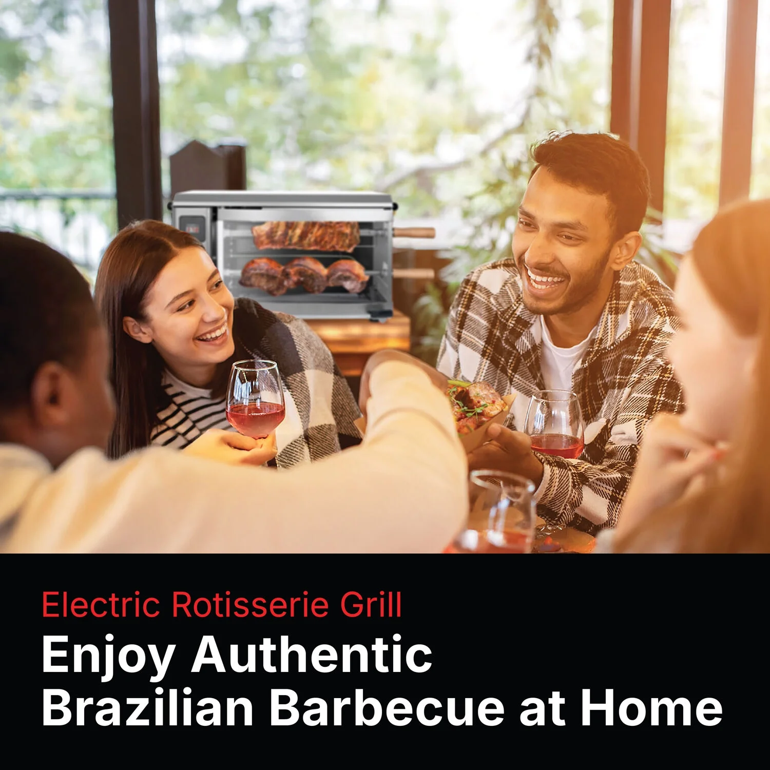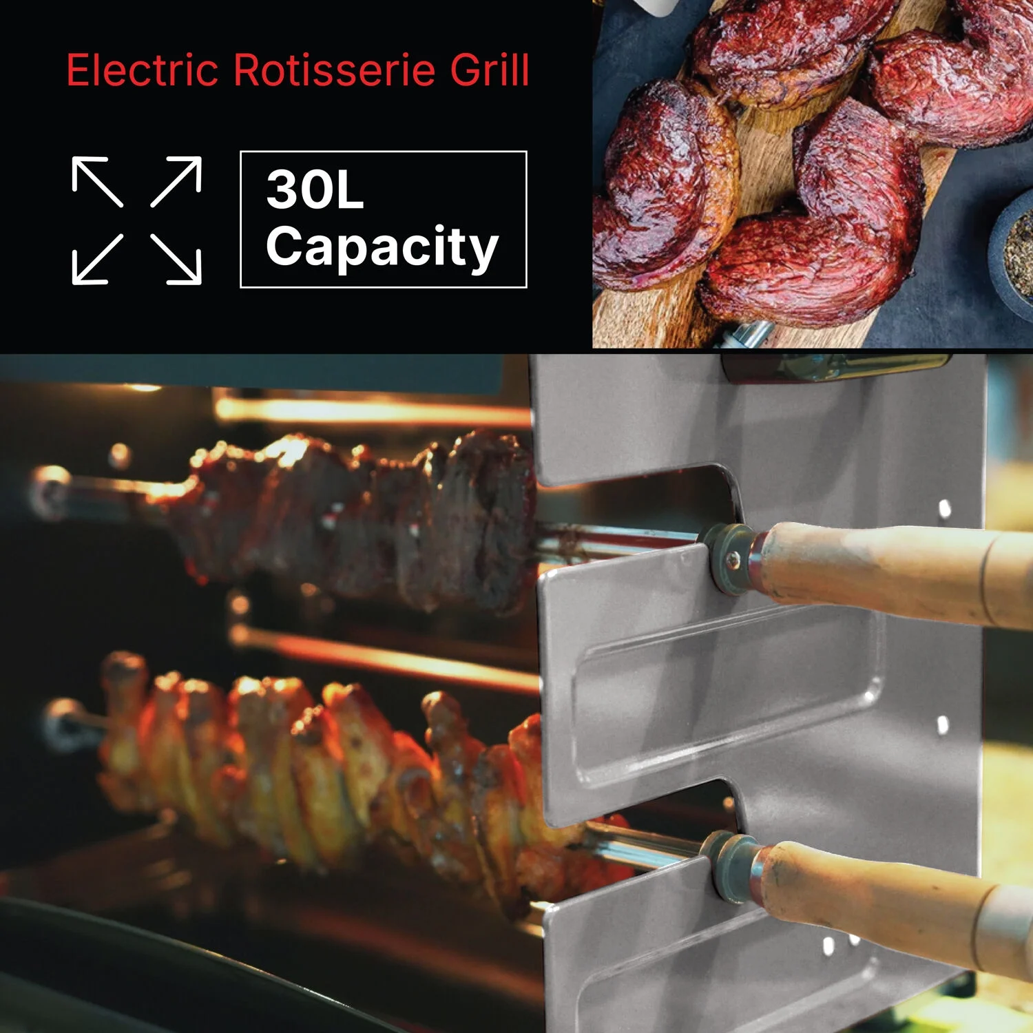 - Multi-skewer rotisserie barbeque: This multi-skewer rotating system makes sure that your chicken, fish, steak, and vegetables are cooked evenly and taste much better than they would in an oven, skillet, or regular grill.