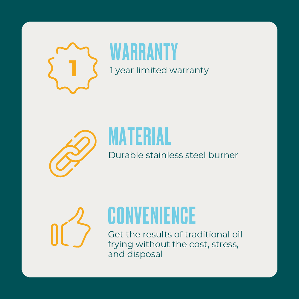 - SAFER: No hot oil means safer frying, less money spent and no stress about disposal