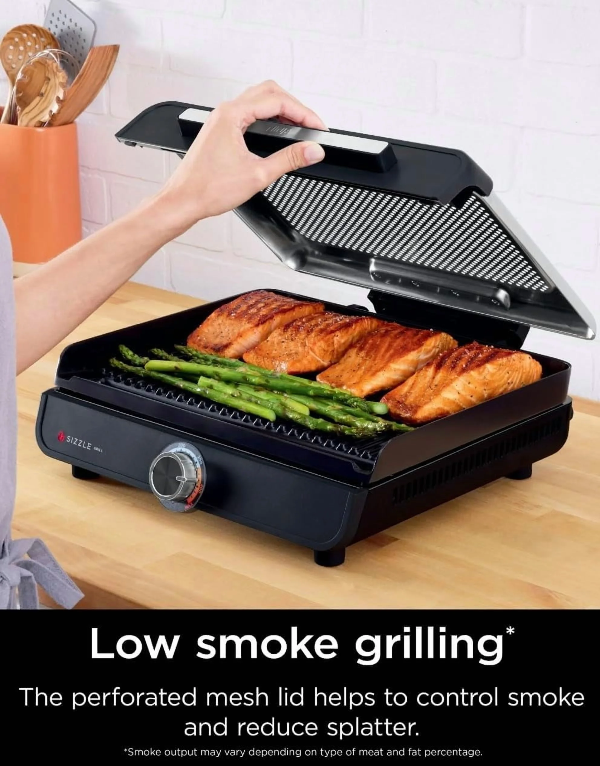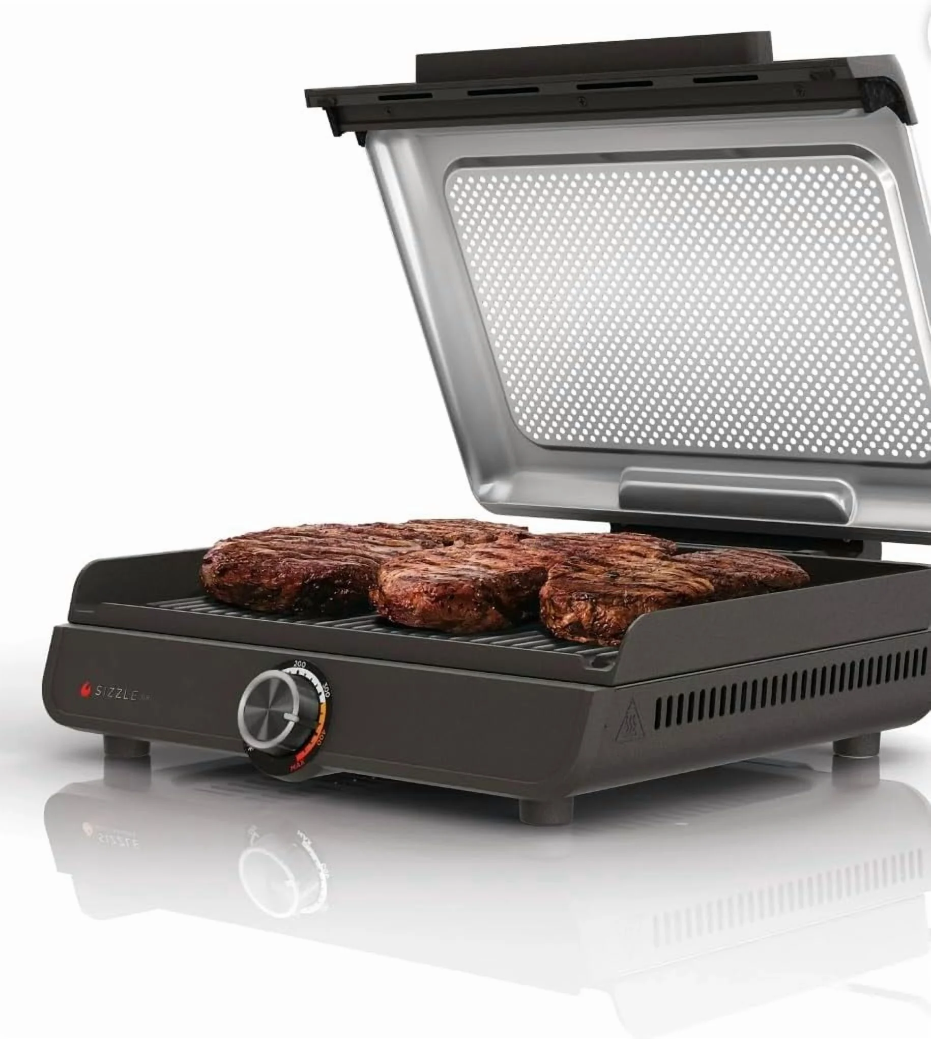 - LOW SMOKE GRILL: The perforated mesh lid helps to control smoke in your kitchen and reduce splatter, and the plates are equipped with high walls and grease catches for a pleasant cooking experience.
