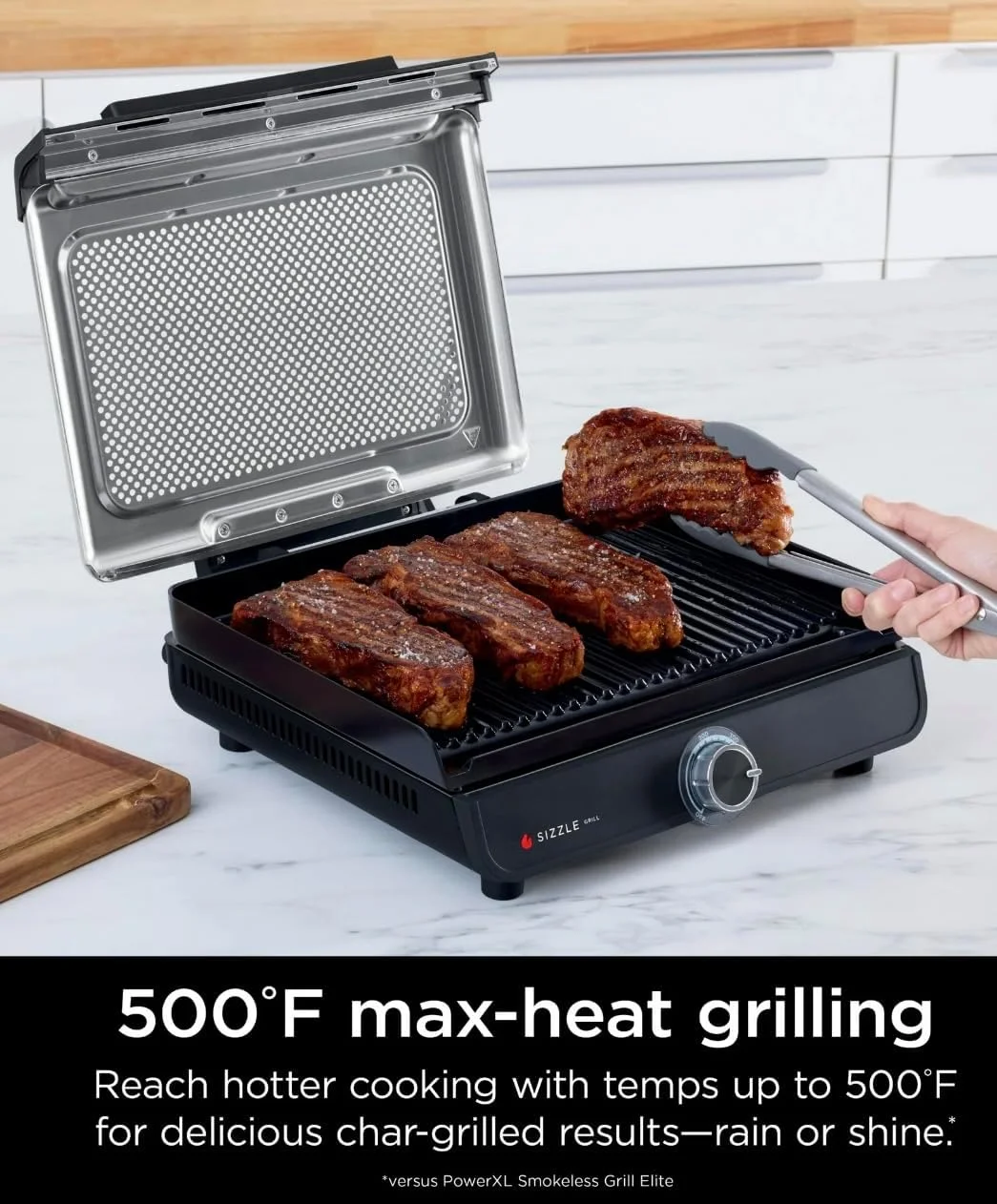 - 500F MAX HEAT: Reach temperatures of up to 500F for high-heat grilling and searing and get better char-grilled marks right from your kitchen
