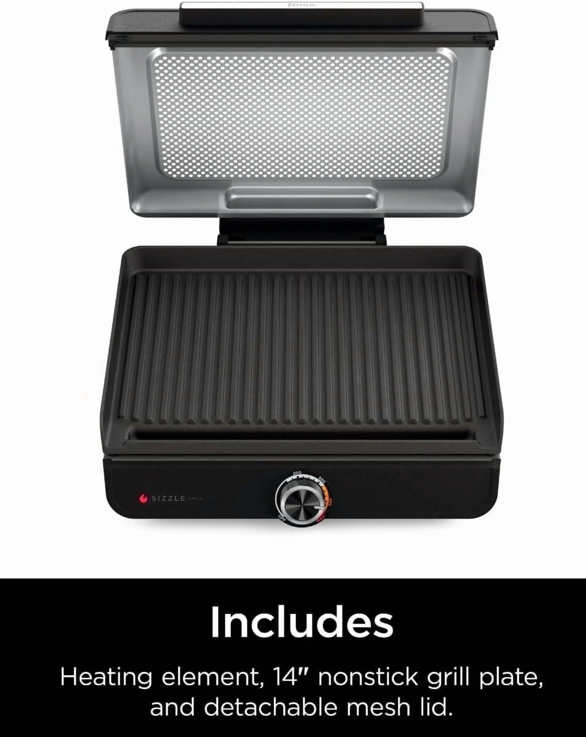 - WHATS INCLUDED: Ninja Sizzle Smokeless Indoor Grill, 14 Nonstick Grill Plate, & Quick Start Guide with 10 Recipes