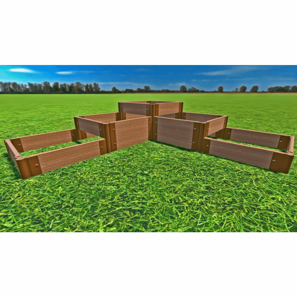 The Yosemite Falls 12' x 12' Raised Garden Bed with 24 square feet of growing area is truly a show stopper that will greatly enhance the eye appeal of any home! No tools required. This multi-level raised bed features dynamic angles that add a refined, organic feeling to your garden. With tremendous capacity to showcase all your plantings yet still make it easy to harvest them, it still has a modest footprint to enable you also locate it on a deck or patio. Tuck neatly into a corner or use two kits to create a grand entrance or to outline a patio area. Tool-free snap-lock joints make it simple to install. Stunning as a flower garden focal point. Incredibly functional as a veggie garden. Plenty of depth to plant potatoes or other root vegetablesl, then cascade down from luscious tomatoes to fragrant herbs and flowers iand with the right amount of sun (ideally six or more hours a day), you can grow blueberries, strawberries, or raspberries. Veggies including artichoke, arugula, asparagus, lettuce, pole beans, beets, carrots and cabbage will all thrive in this multi-level raised garden. For easier harvesting, try to leave about 3 feet of space on all sides so you can reach your garden from all directions to make it super-easy to run out and pick veggies for a salad. Use the two side beds for tall flowers like snapdragons, zinnias or sunflowers. Your kit comes with everything you need except the soil and plants. The insulating open-channel boards trap air, providing insulation to your soil. Keeps soil warmer in the Spring and Fall, and cooler in the Summer, so you can grow for an extended period. Stacking brackets allow you to install the additional layers of your garden just by inserting the stakes into the brackets below. Our patented snap-lock brackets simply slide onto each end of a board and fasten securely with snap-lock buttons. Brackets pivot 270 degrees, allowing endless design options. As your garden needs and expertise grow you can add on to your modular raised bed any time by purchasing additional Frame it All tool-free kits, boards and snap-lock stacking brackets to stack or extend your garden.