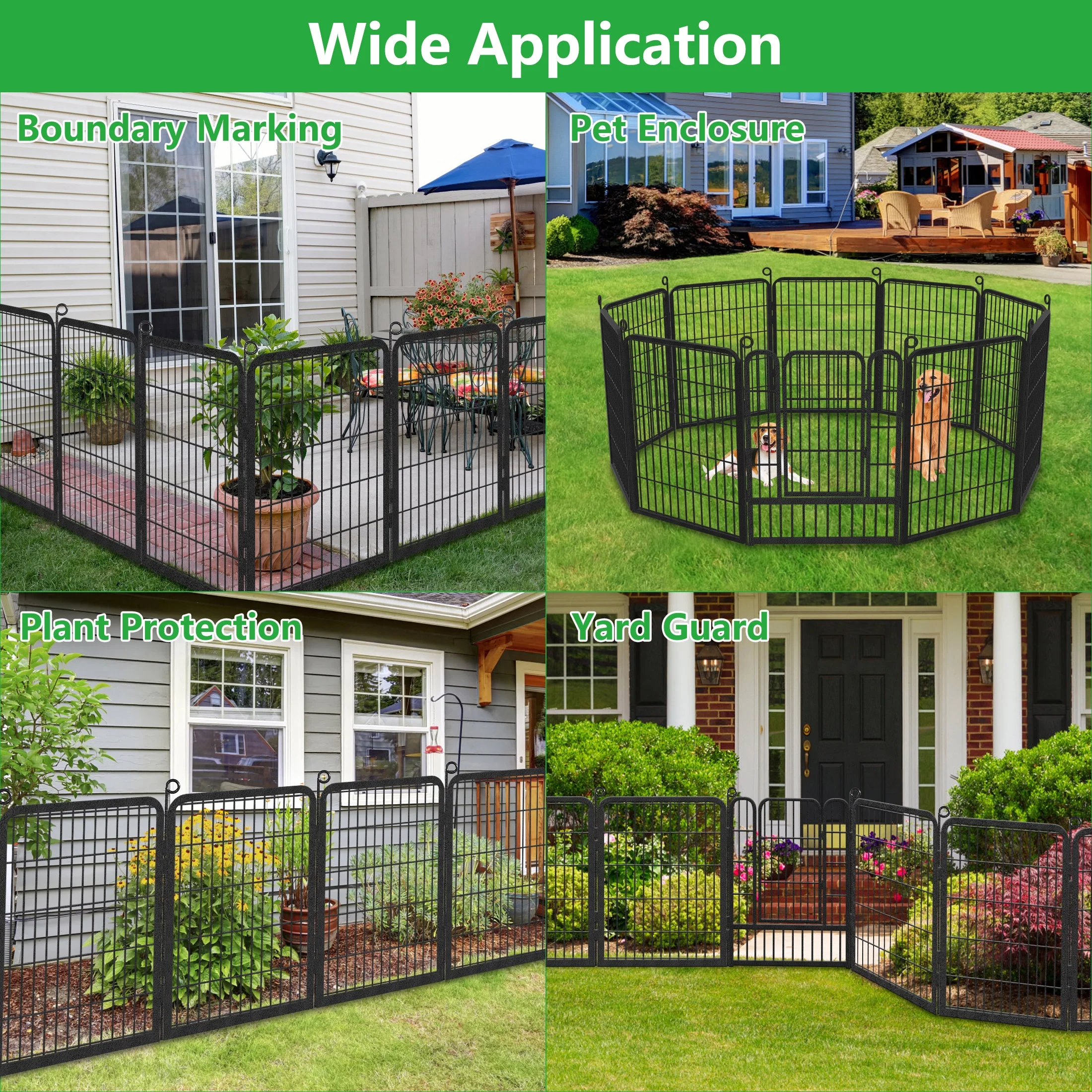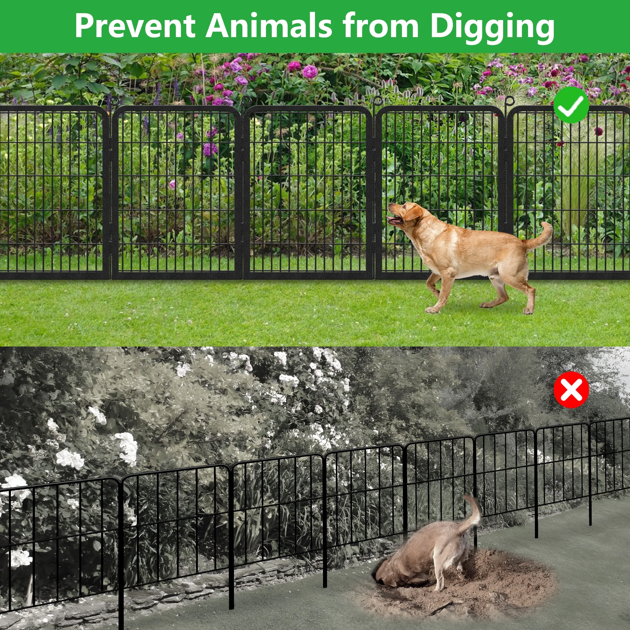 - WIDE APPLICATION - This garden fence can be used as outdoor dog fence to give your dog a safe outdoor activity space. Also can be used as the animal barrier fence to prevent your garden and vegetables from being damaged by animals such as rabbits, civets, and other small animals. Also can be used as a decorative fence to decorate your garden, yard, walkway, etc