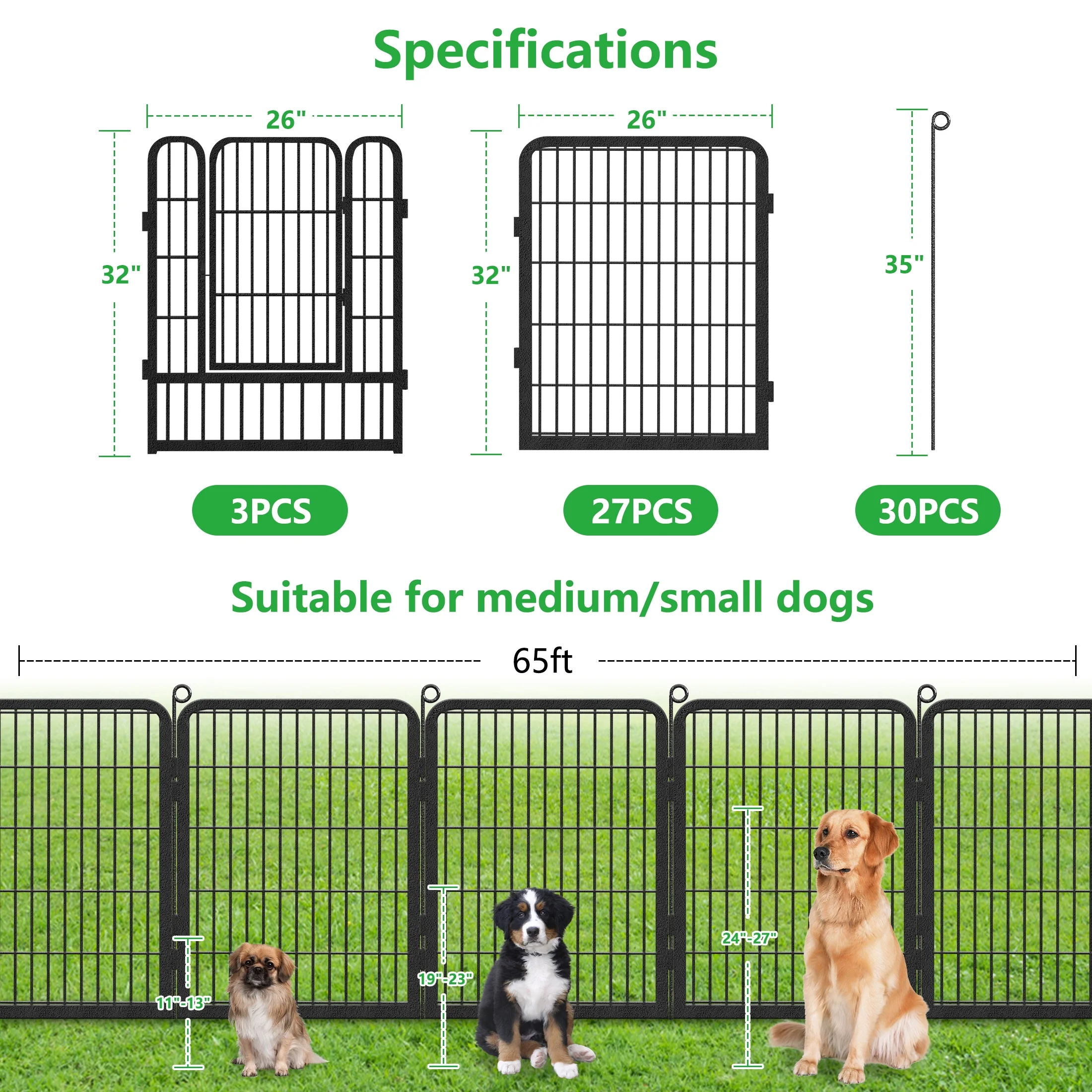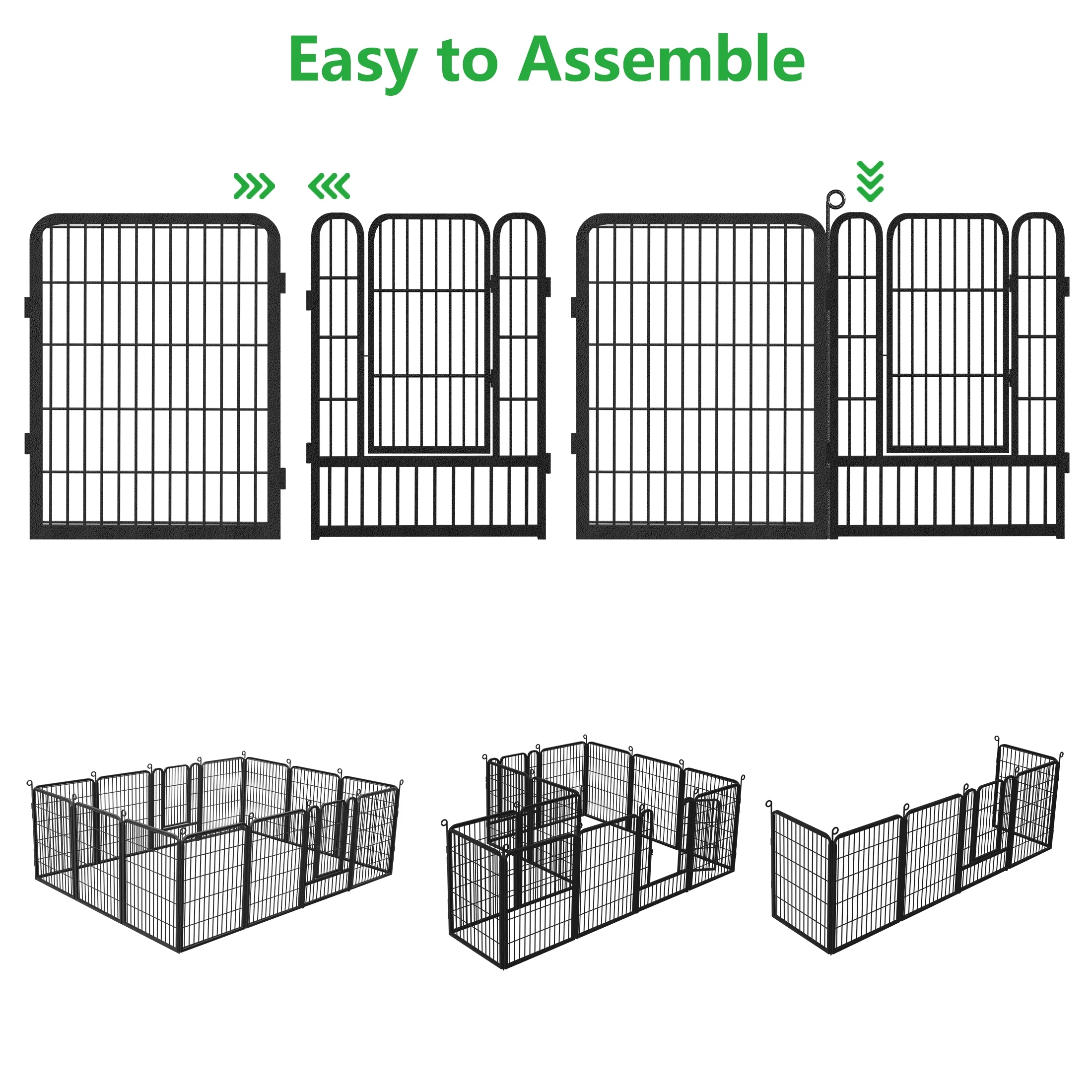 - DIY SHAPES for MULTI-PURPOSE USE - The metal fence panels can be freely added or removed, giving you a fully flexible area and arranging the dog pen in any shape you need. The fencing for dogs can be shaped as "O","L" or "Square" for different uses. It works well as a garden fences and borders for large, medium or small size dogs