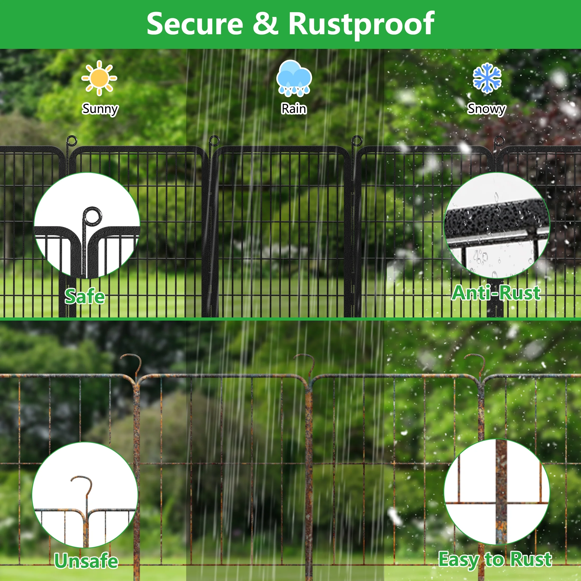 - STURDY & RUSTPROOF - These dog fence outdoor is made of heavy duty metal, sturdy and strong enough to take down and reuse multiple times. The stable structure allows the garden fence animal barrier to withstand the elements and keep the animals away. The surface is coated with baking paint to prevent rust
