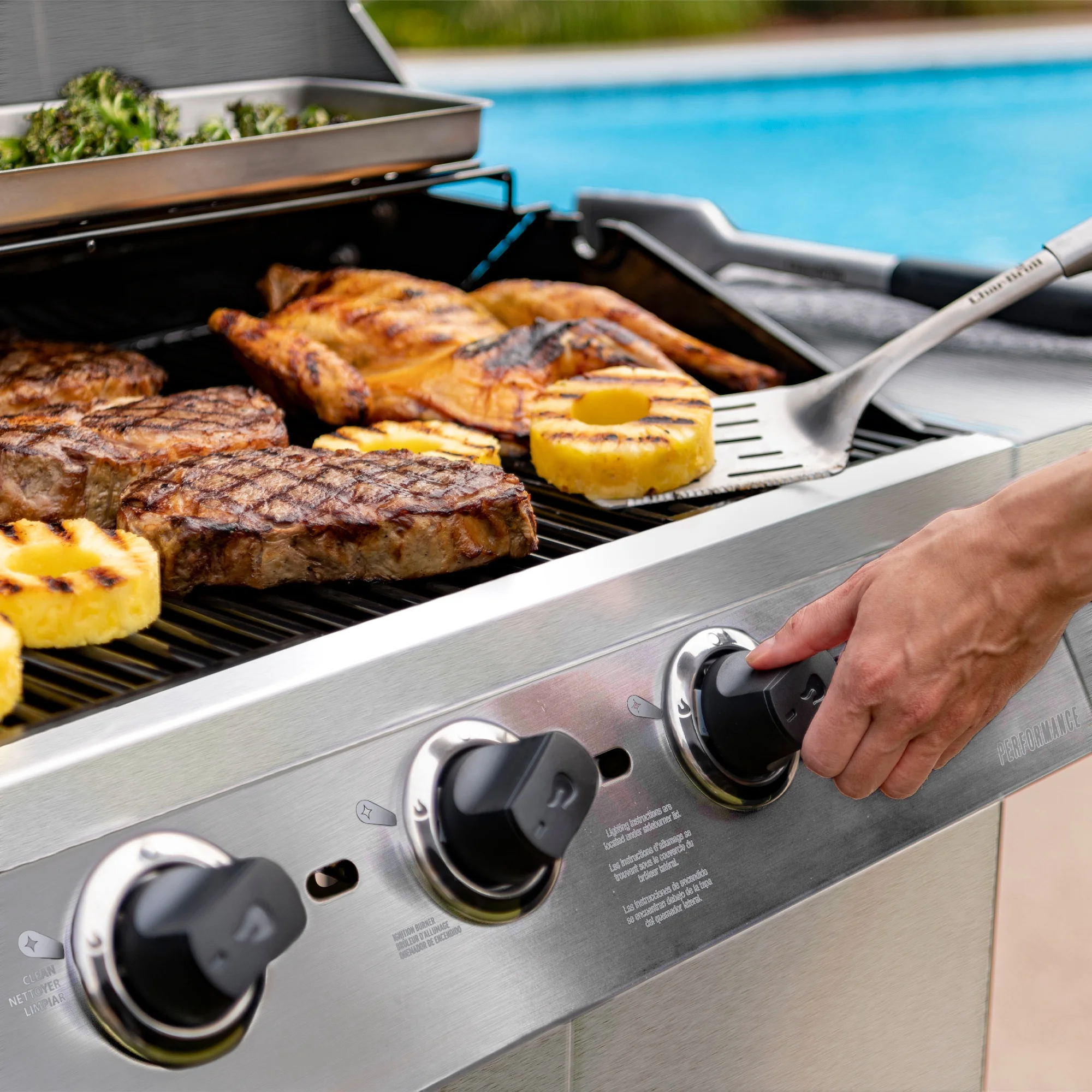 - GRATES: Porcelain-coated steel grates are durable, rust-resistant and easy-to-clean