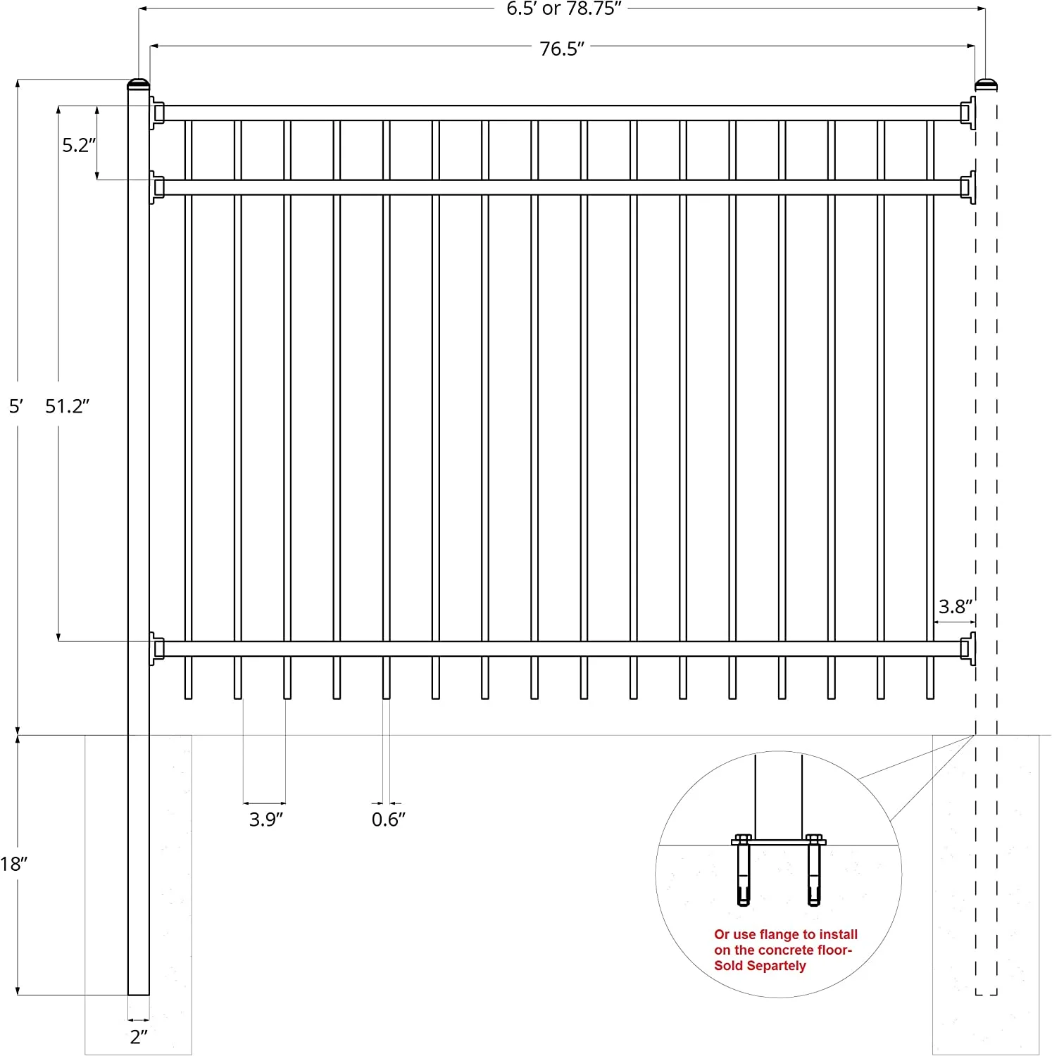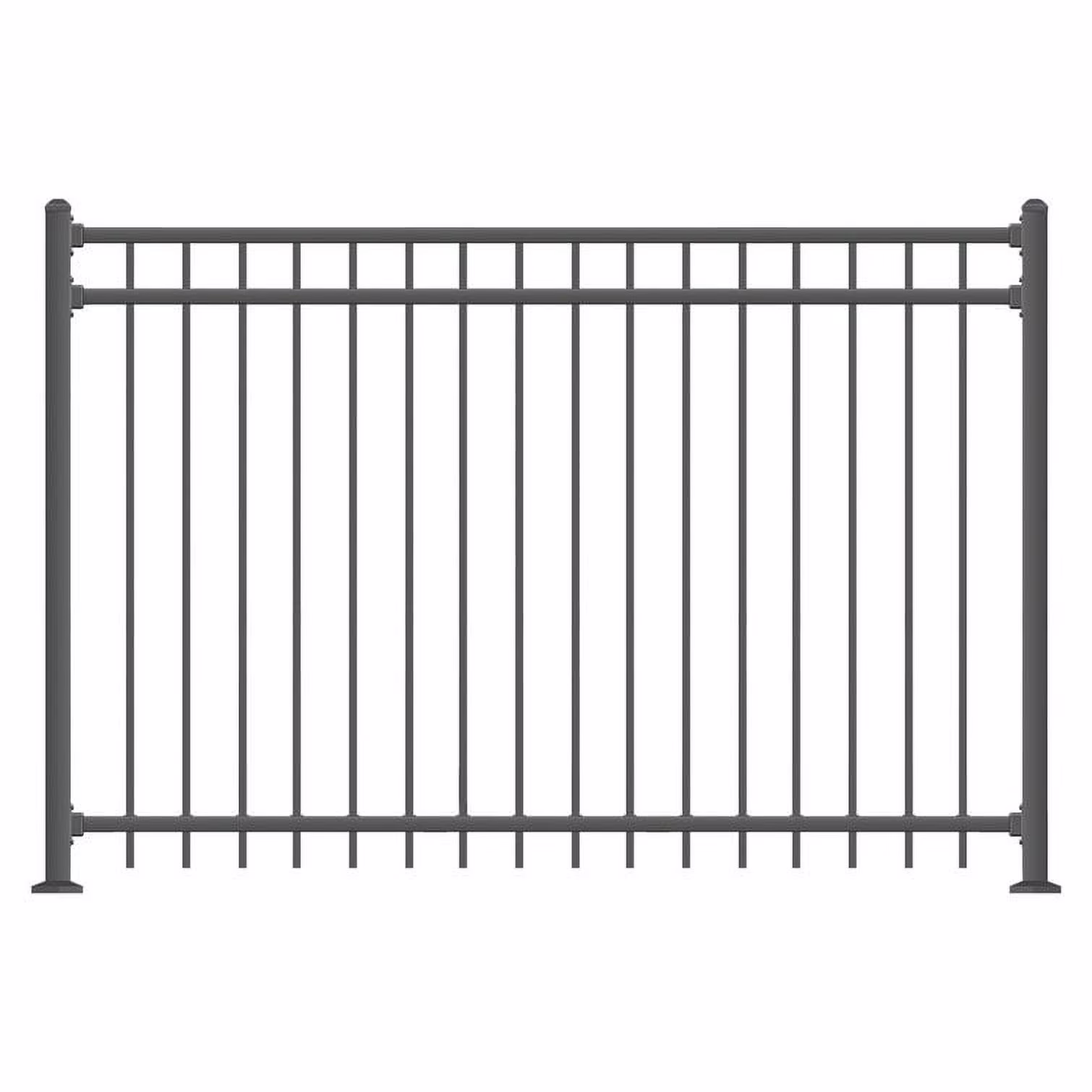 - Kit includes: 6.5'W x 5'H 3-rail steel fence panel