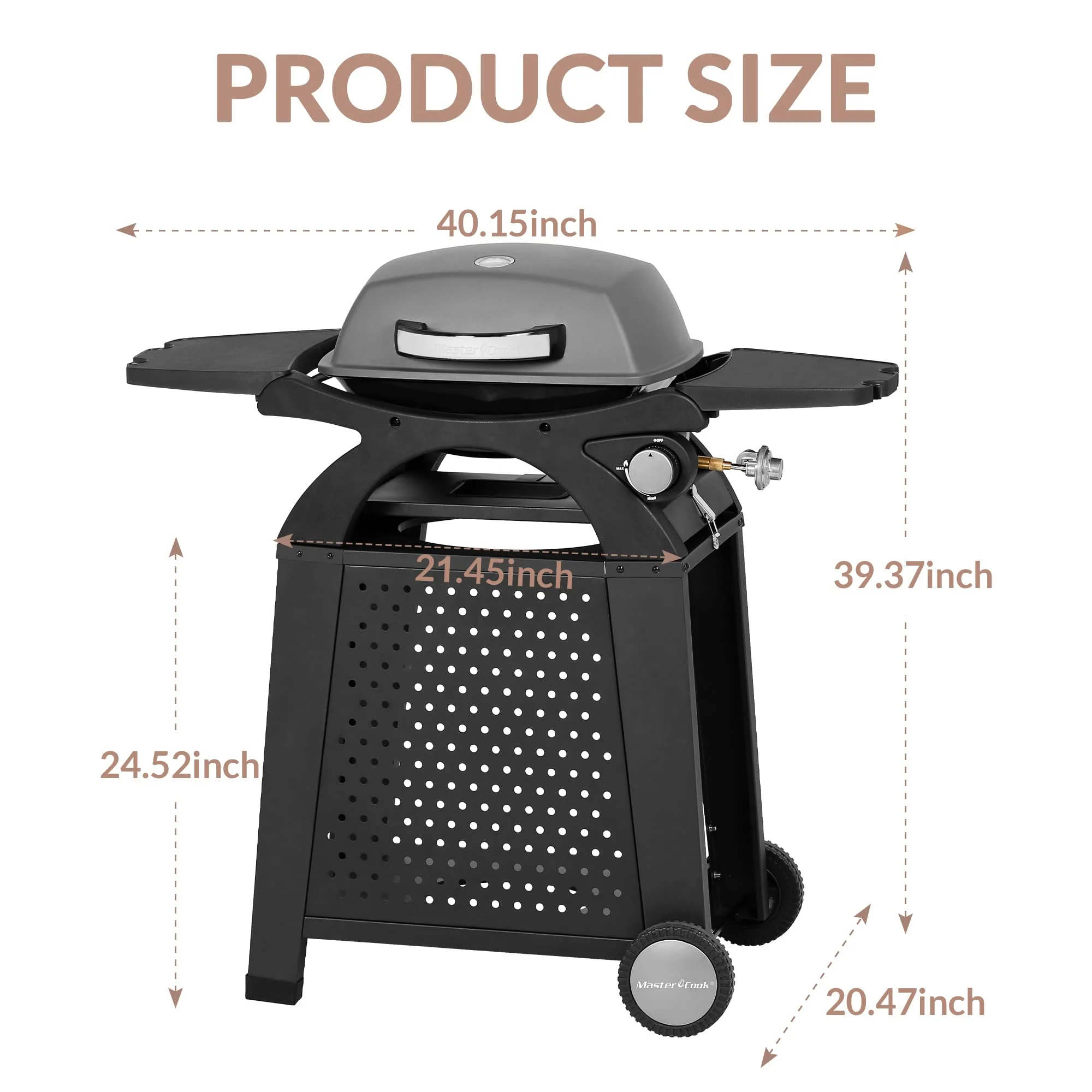 - DIMENSIONS - Our MASTER COOK propane gas grill is 40.15 L x 20.47 W x 39.37 H inch, 29.5 inch Length when removing both side shelves, and 18.7 x 14 inch of the cooking area, perfect for use at home or ideal for camping, picnics and outdoor events