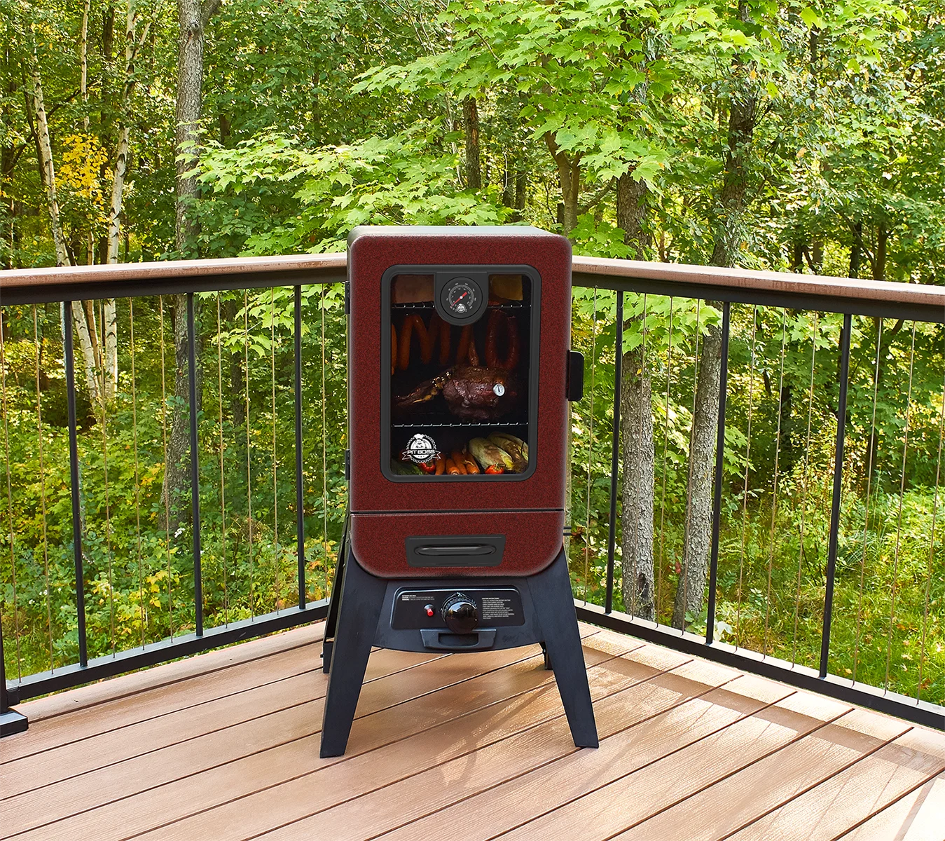 - Features 1 included meat probe, 2 rear rolling wheels, and a large thermometer