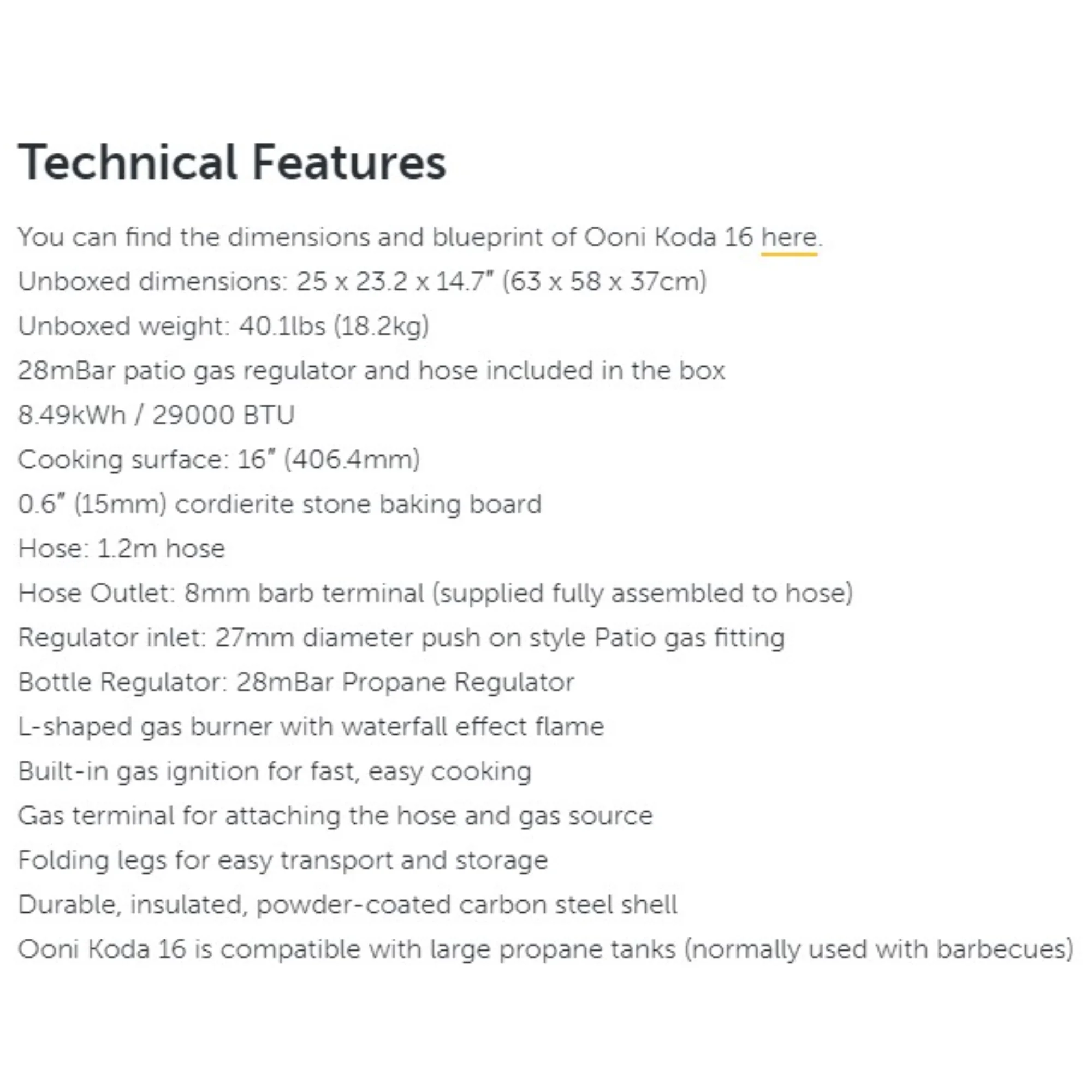 - VERSATILE �C We believe that everybody deserves great pizza and our Ooni Koda 16 gas pizza oven has been designed and developed with that sole purpose in mind �C Or maybe you want to roast some meat, fish or veg? Because if you combine the Koda 16 with one of the Ooni cast iron cooking accessories, it becomes more than a pizza oven!