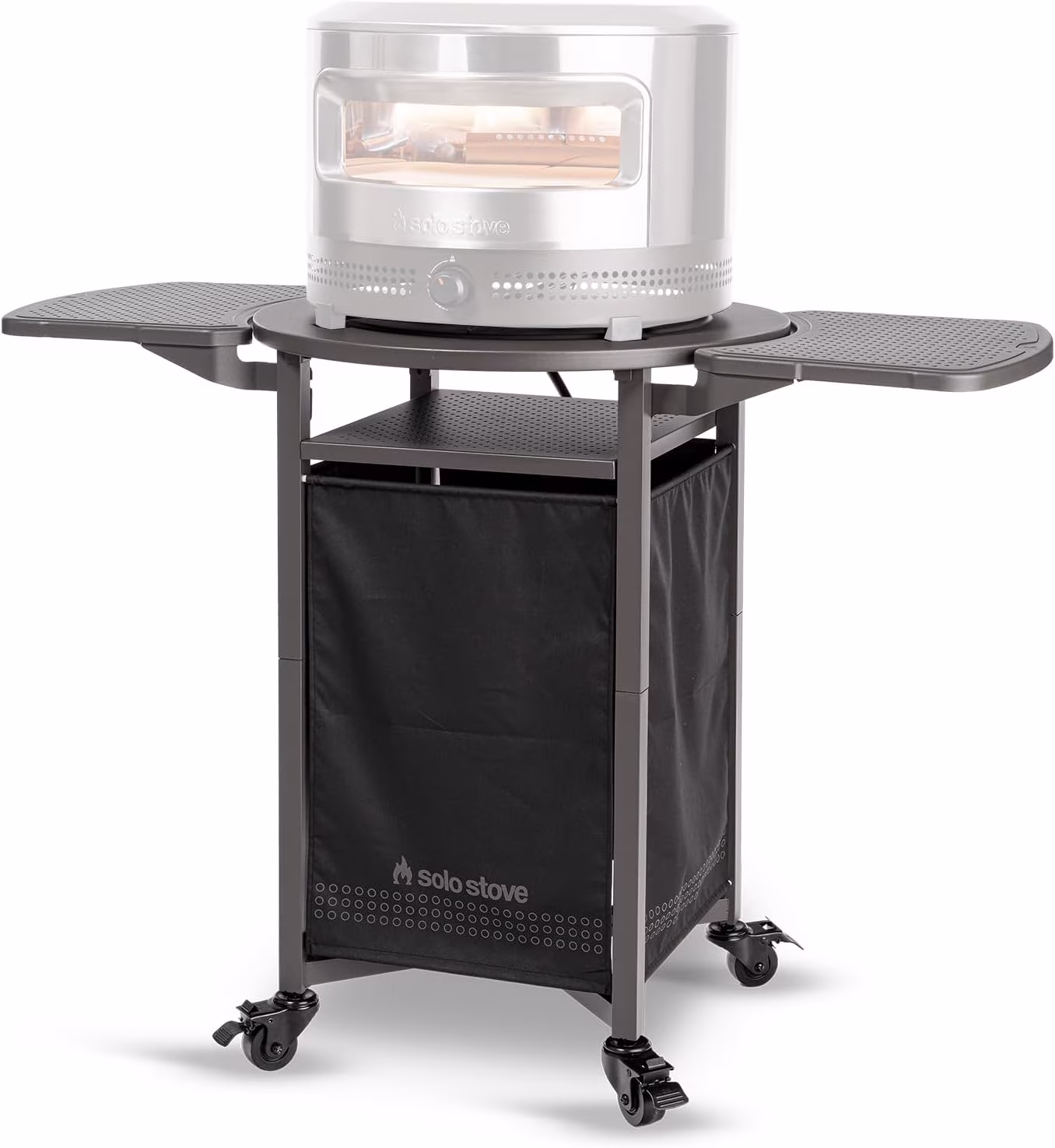 Solo Stove Pizza Oven Cart for Outdoor Pi Pizza Ovens | Portable Pizza Oven Table, Compatible with the Entire Pi Family, Locking Wheels, Foldable Shelves, Steel, Height: 35.75 in, Weight: 43 lb