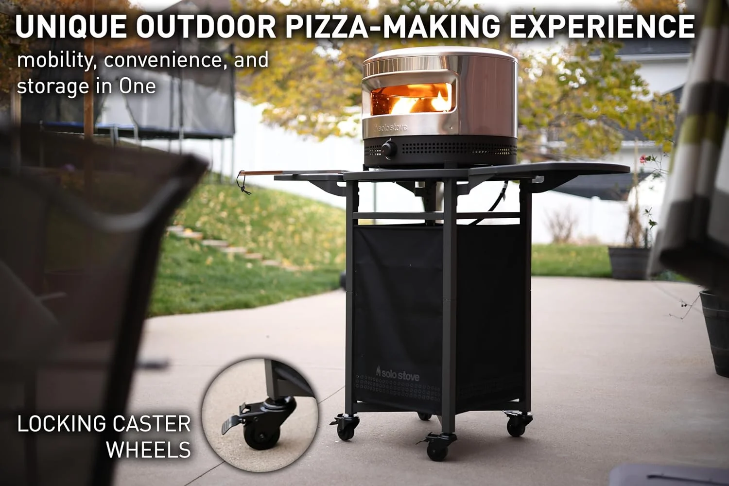 - LOCKING CASTER WHEELS: Roll your oven out, fire it up, and put it away in a flash with smooth gliding caster wheels that lock into place when you��ve found your perfect spot.