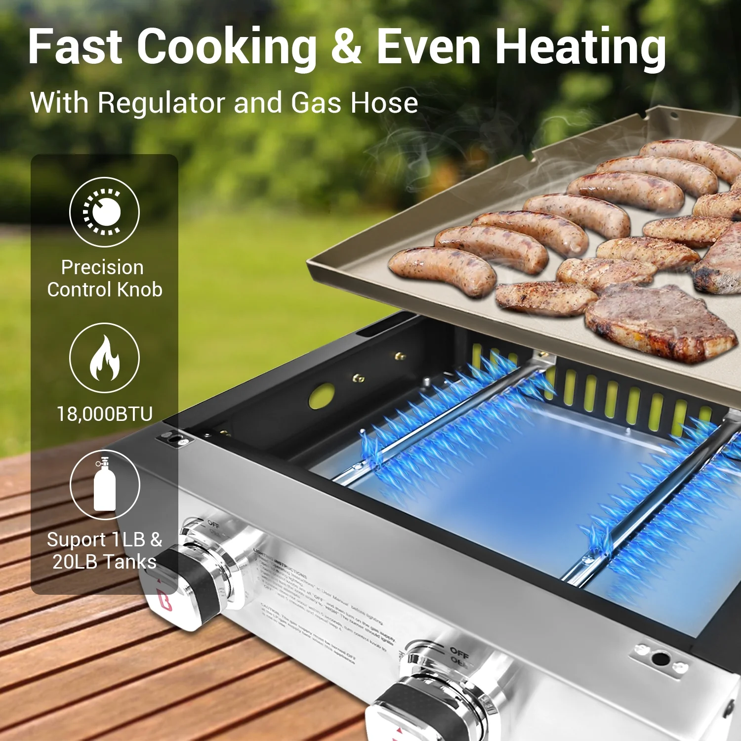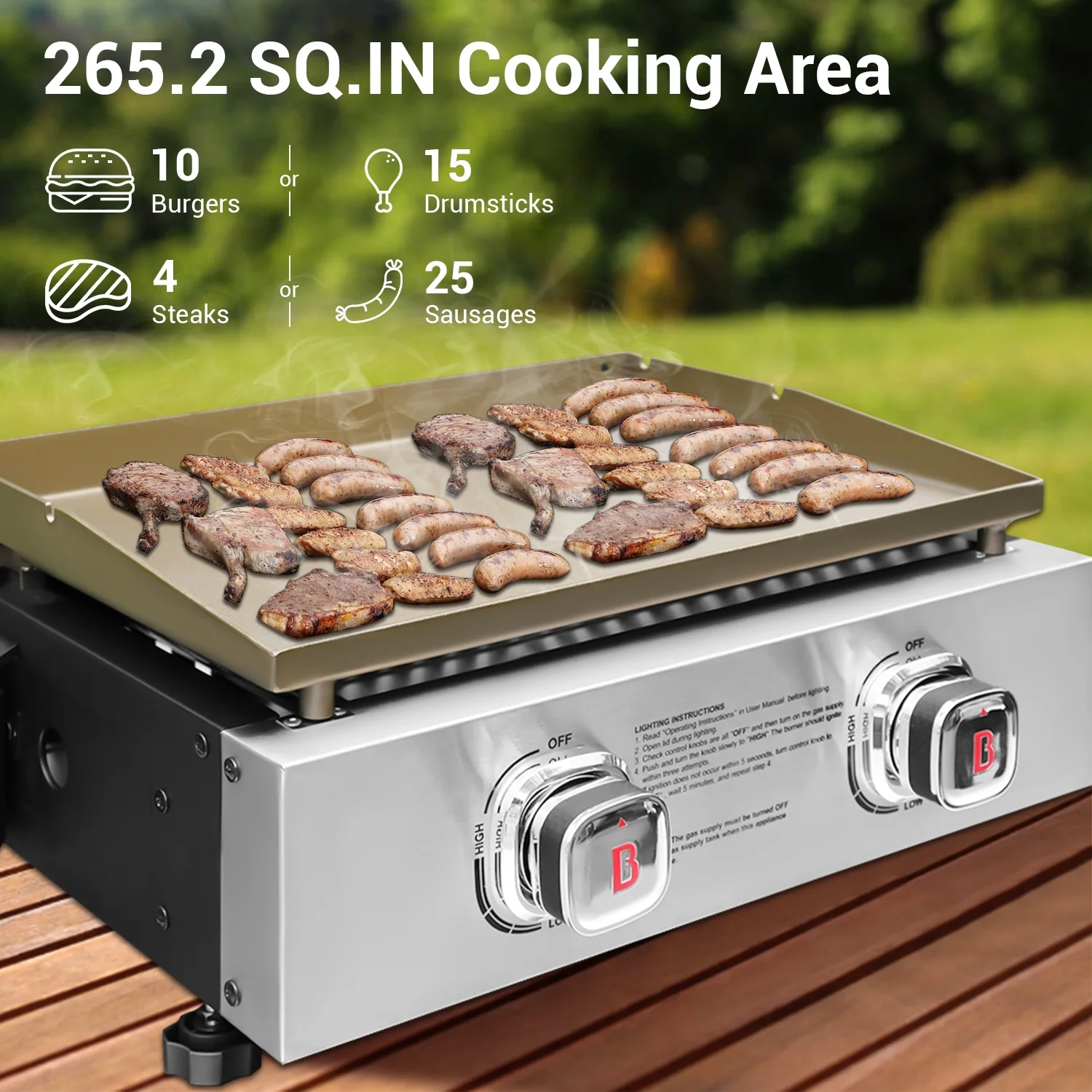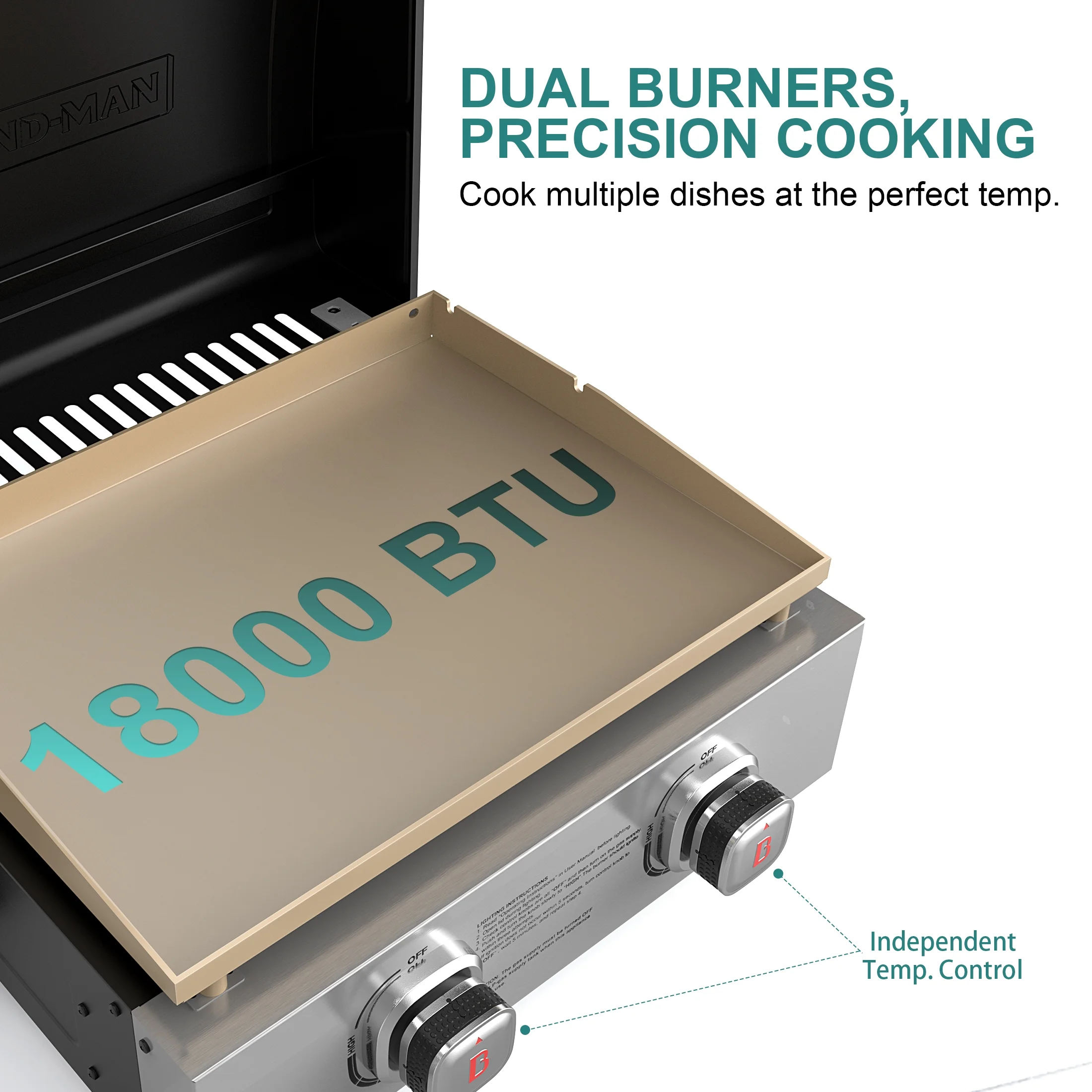 - Precision 2-Burner Control: Features two independently controlled stainless steel burners delivering 18,000 BTU, allowing precise temperature adjustments for versatile cooking.