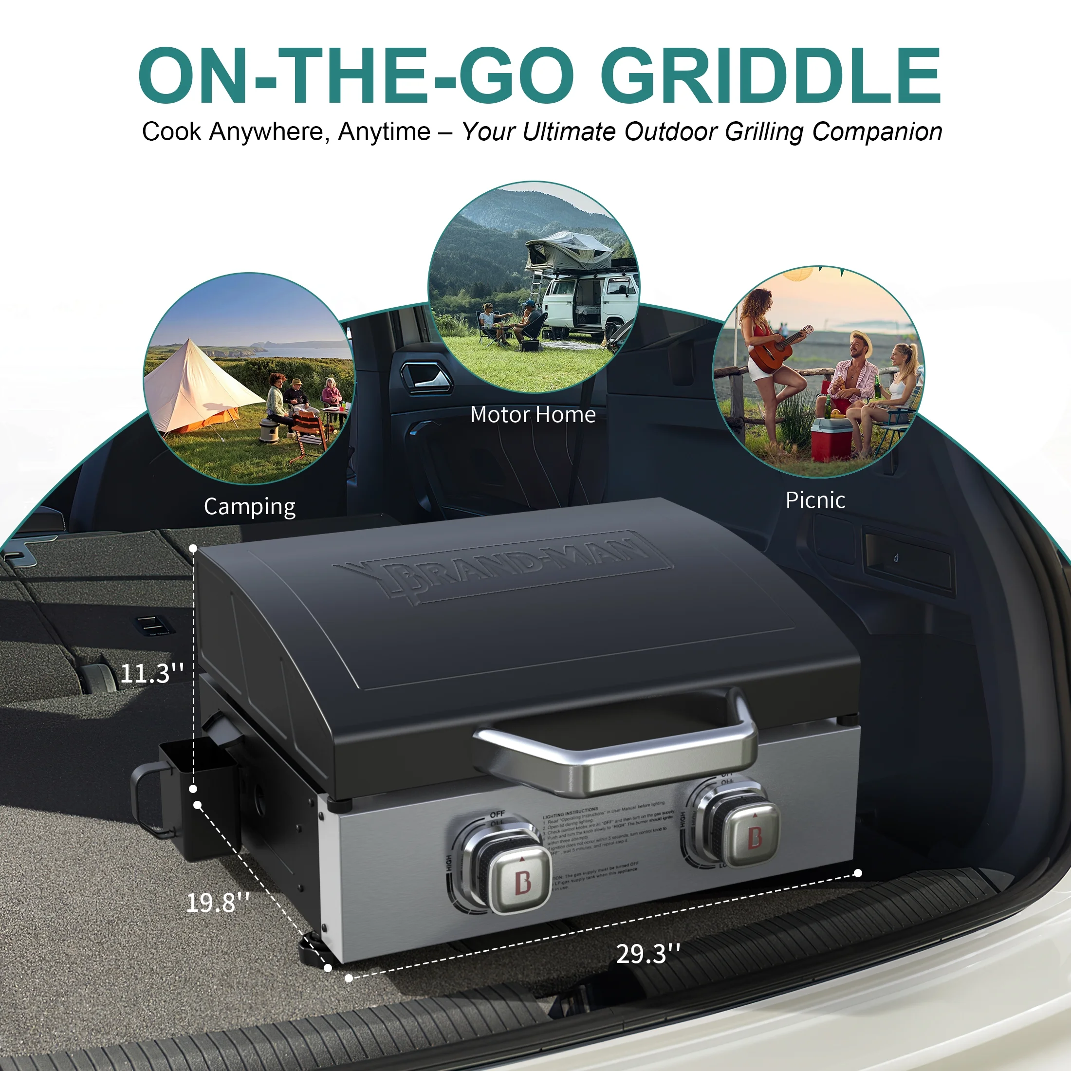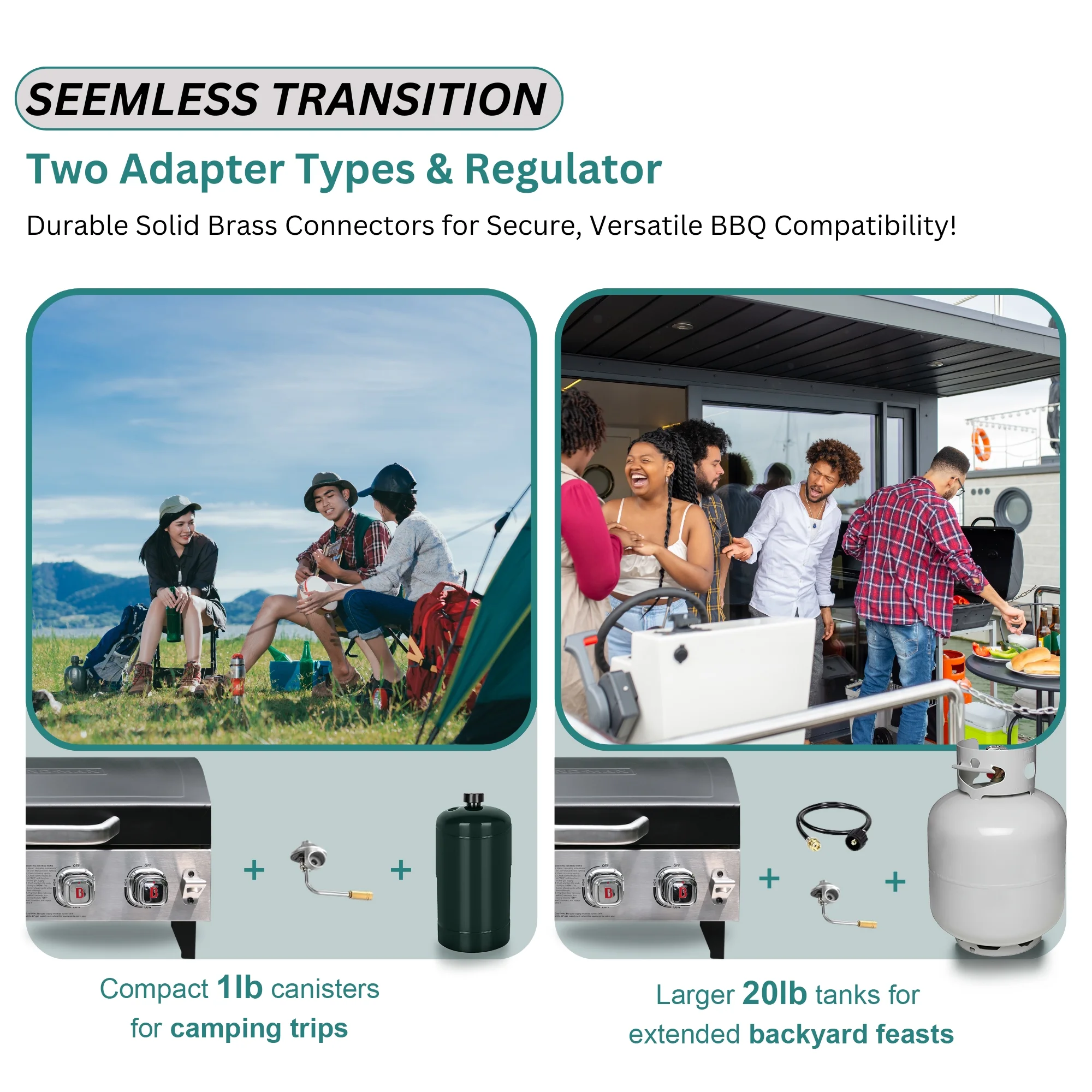- BRAND-MAN Fuel Flexibility: Easily switch between 1 lb and 20 lb propane tanks with the included hose and regulator, perfect for camping, RV trips, tailgating, picnics, and backyard BBQs.