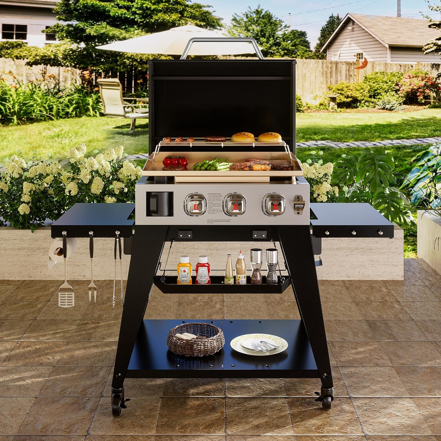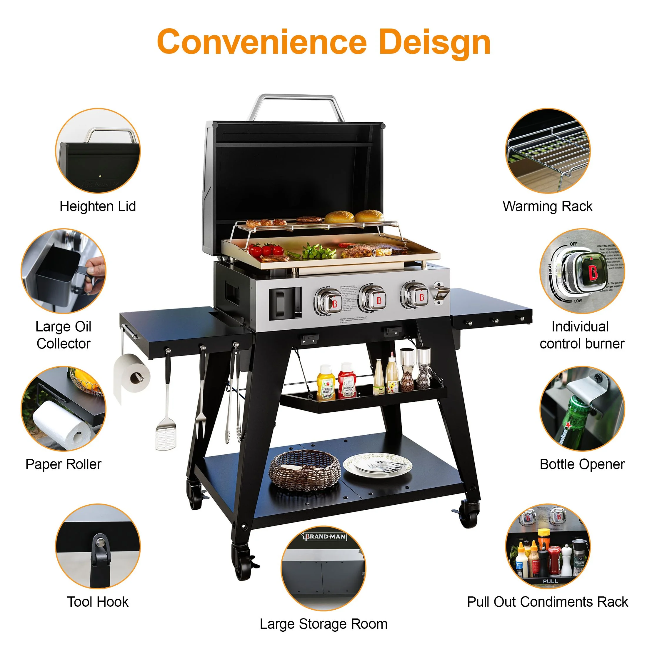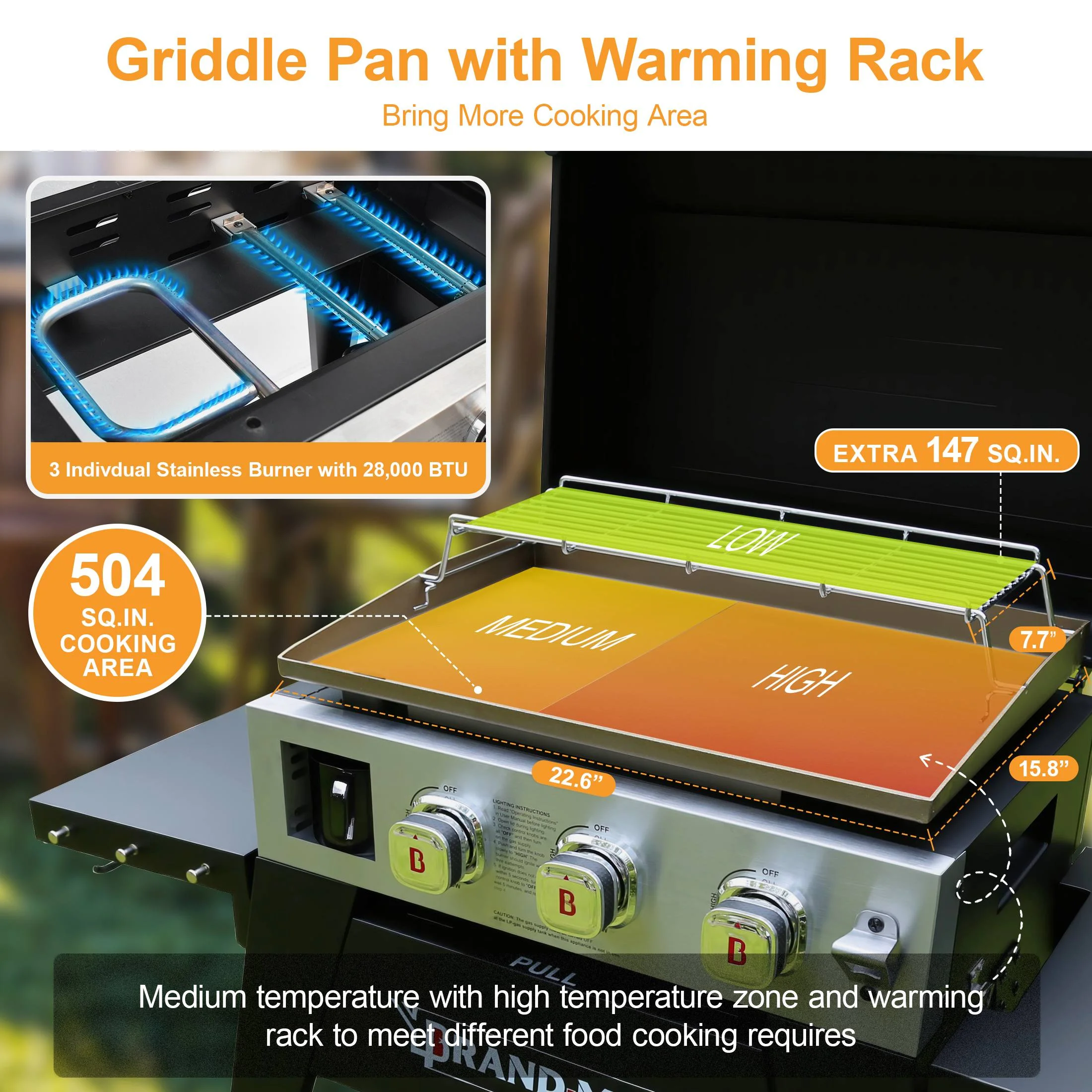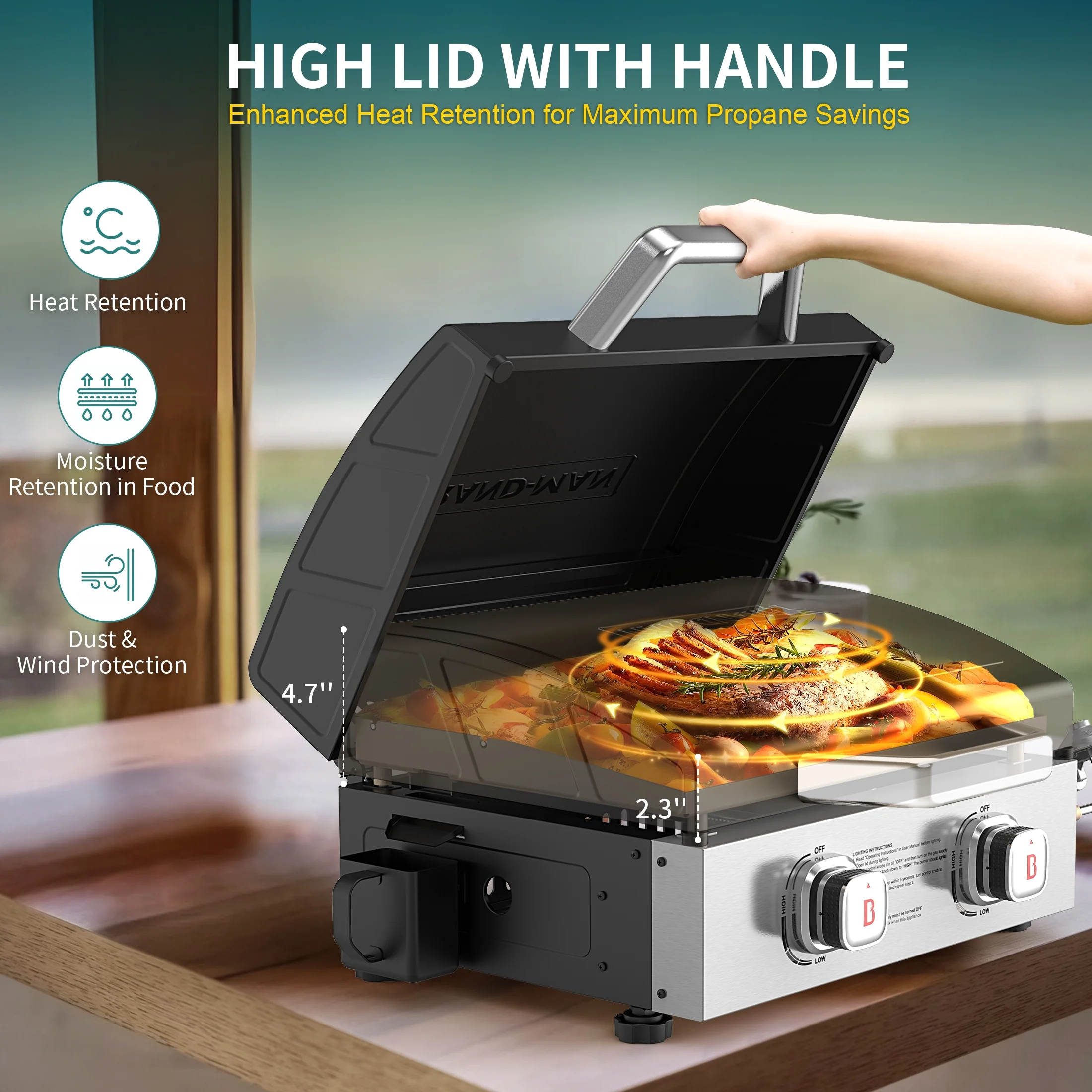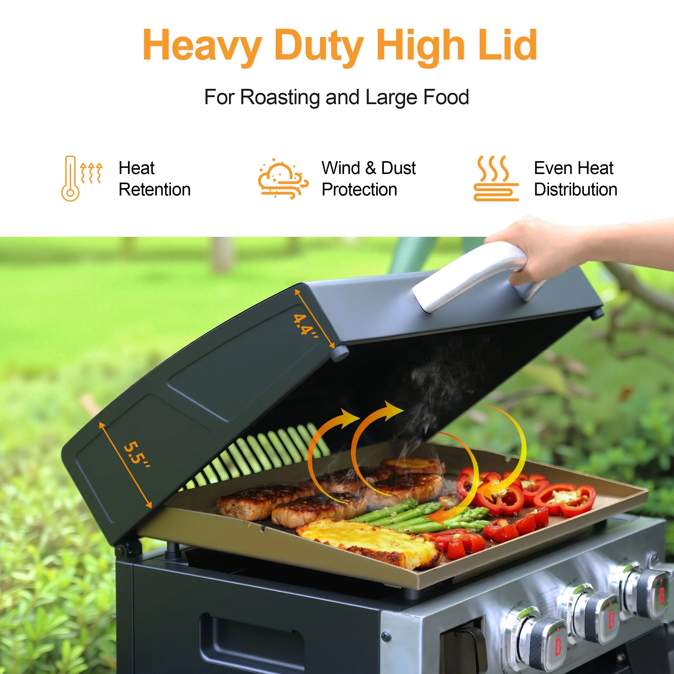 - Efficient Cooking System: High-lid design retains heat; 4mm thick rolled steel griddle ensures even heat distribution and a non-stick surface for healthier, easy cooking.
