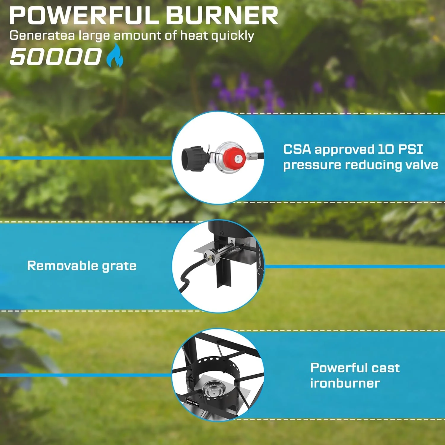 - ?Powerful 50,000 BTU Propane Deep Fryer �C High-performance cast burner delivers fast, even heating, making this propane deep fryer perfect for outdoor cooking, backyard parties, and holiday gatherings.