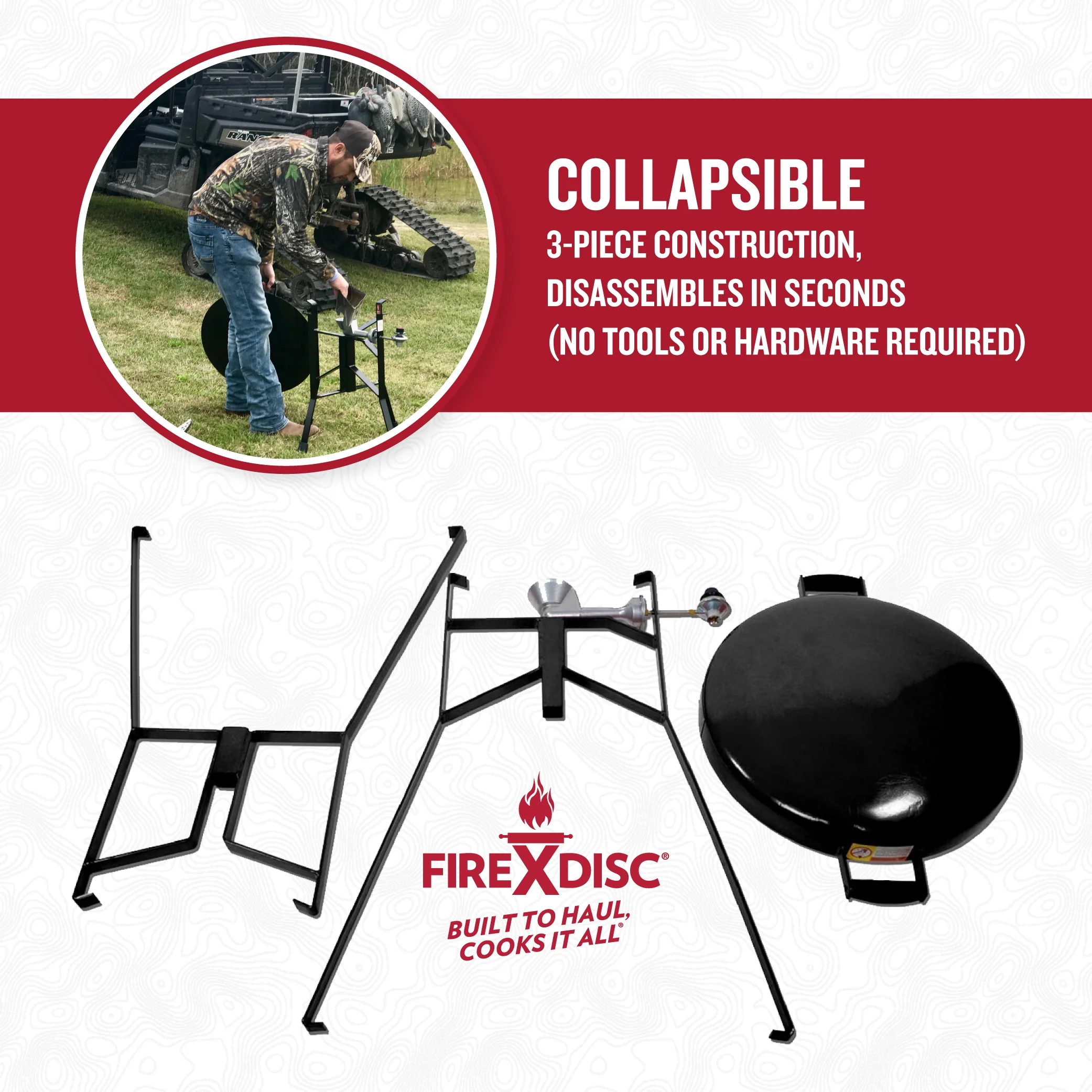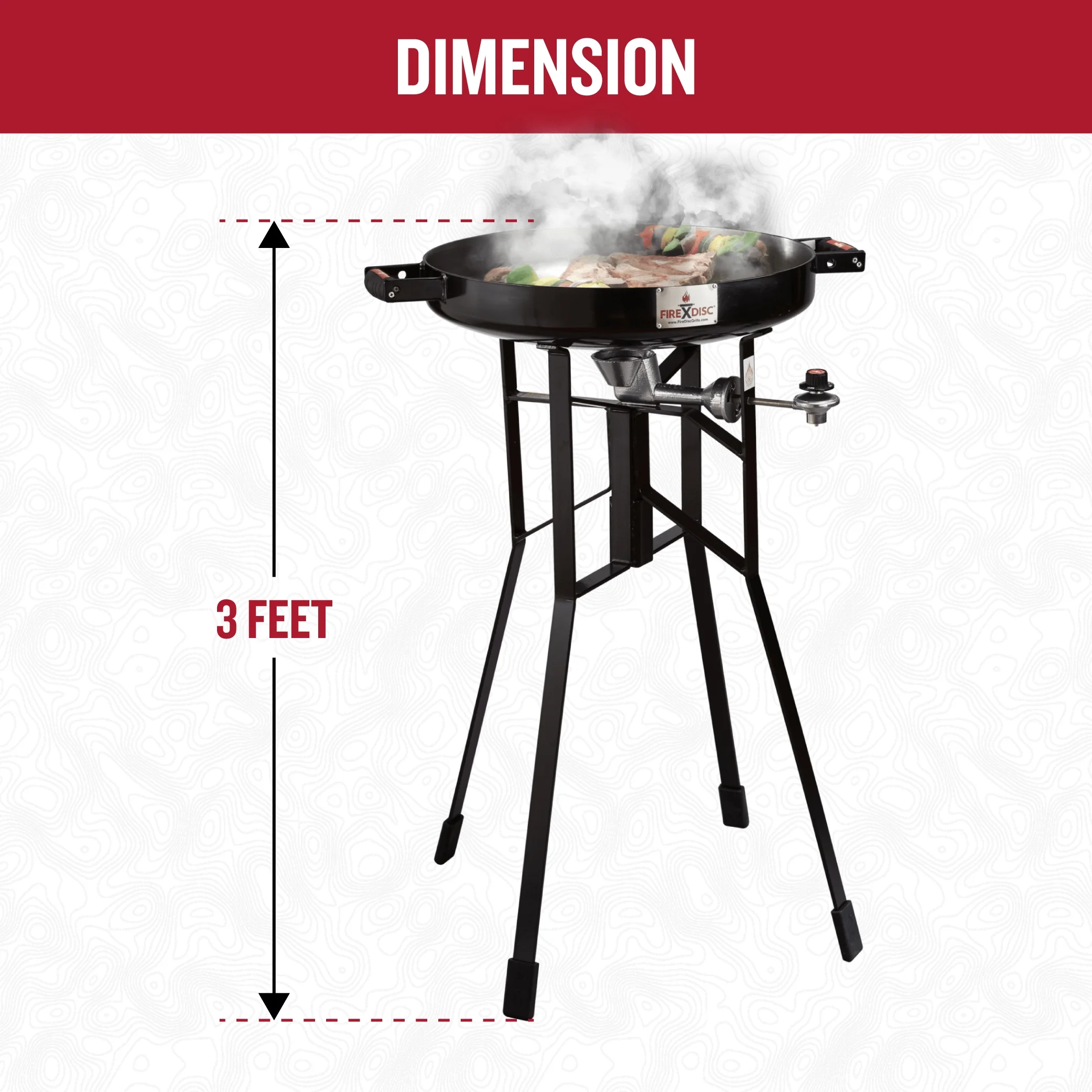 - 36-in. adjustable stand on propane stove is countertop height for easier cooking