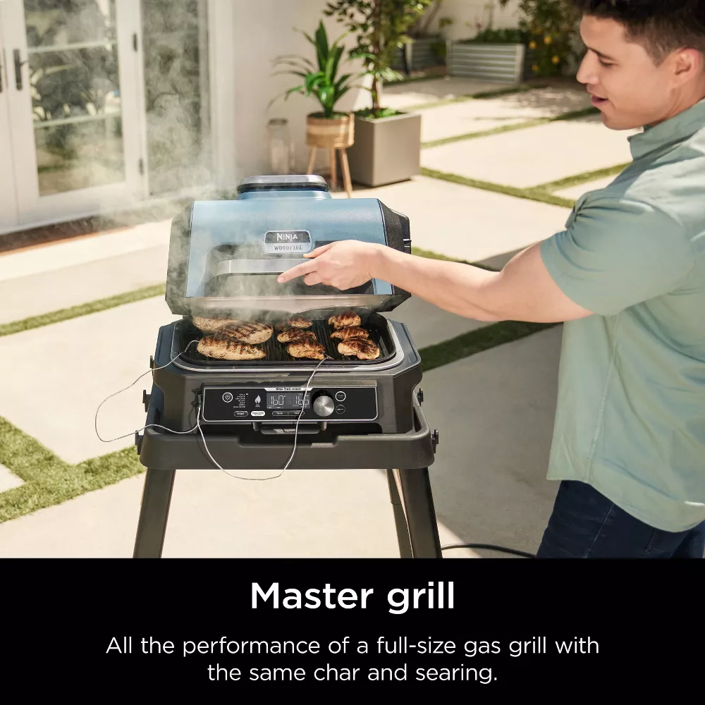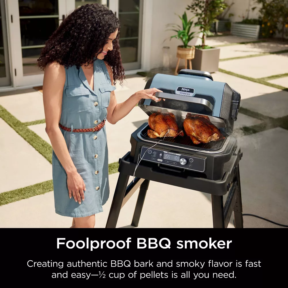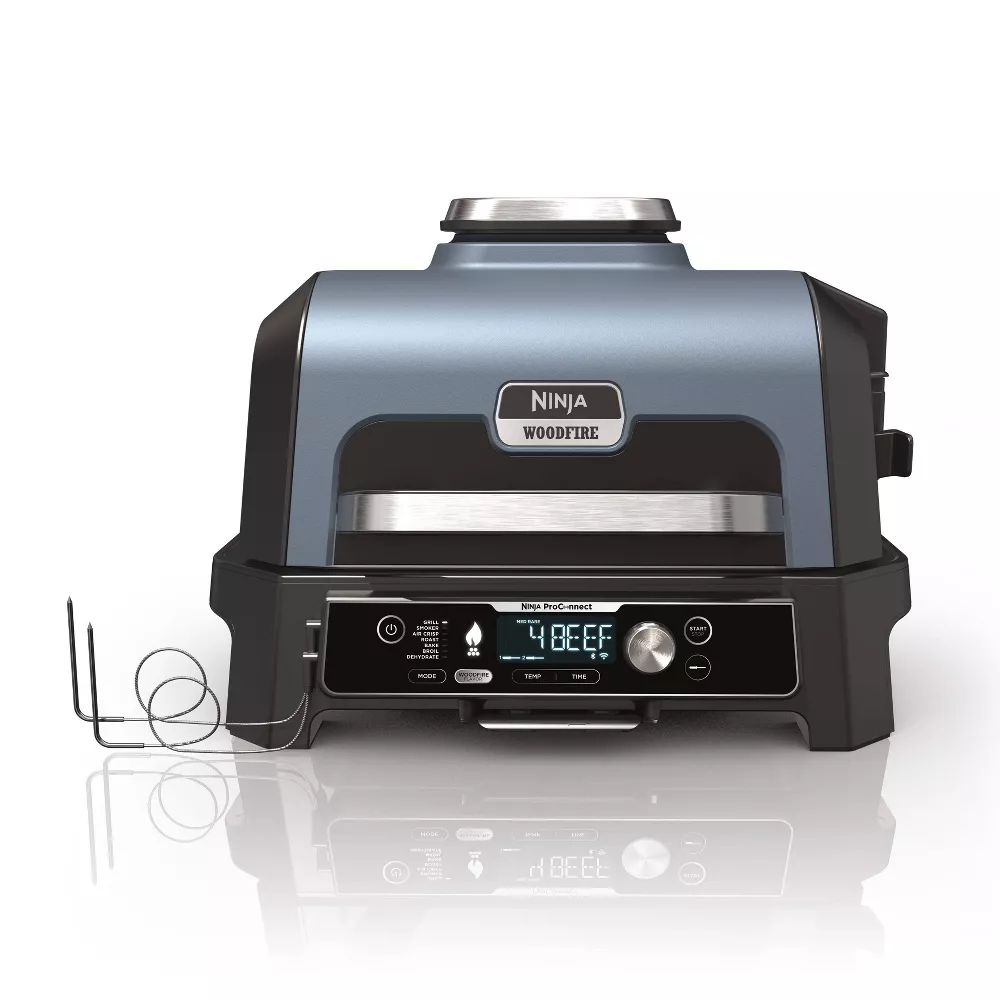 Ninja OG951 Woodfire ProConnect Premium XL Outdoor 7-in-1 Grill & Smoker, App Enabled, Air Fryer, 2 Built-In Thermometers - Blue🔥Today's Deal