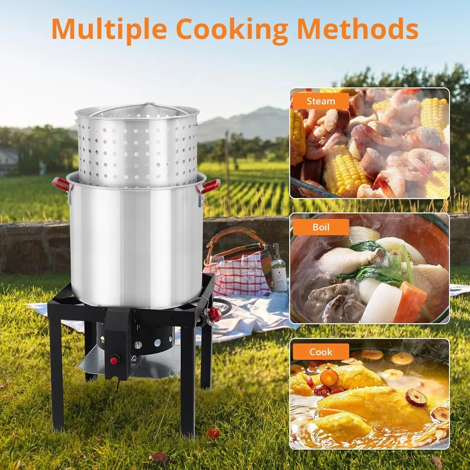 - Generous Capacity: The 60-quart pot is perfect for preparing large quantities of seafood, making it easy to host family and friends during festive celebrations or outdoor adventures.
