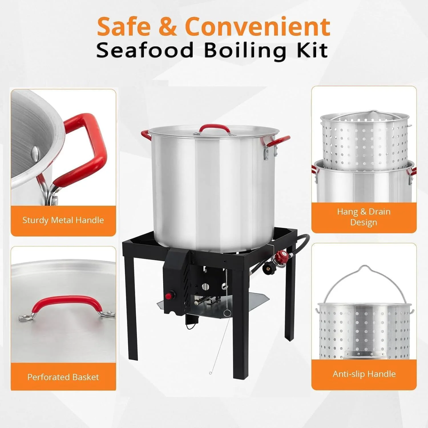 Elevate your outdoor cooking experience with the Seafood Boil Pot & Fish Fryer Kit, Aluminum Seafood Crawfish Boiler Pot. This versatile kit provides everything you need to fry a mouthwatering crawfish or fish, and it's also perfect for hosting a family gathering with the flavors of crawfish, crabs, corn, potatoes, and more.