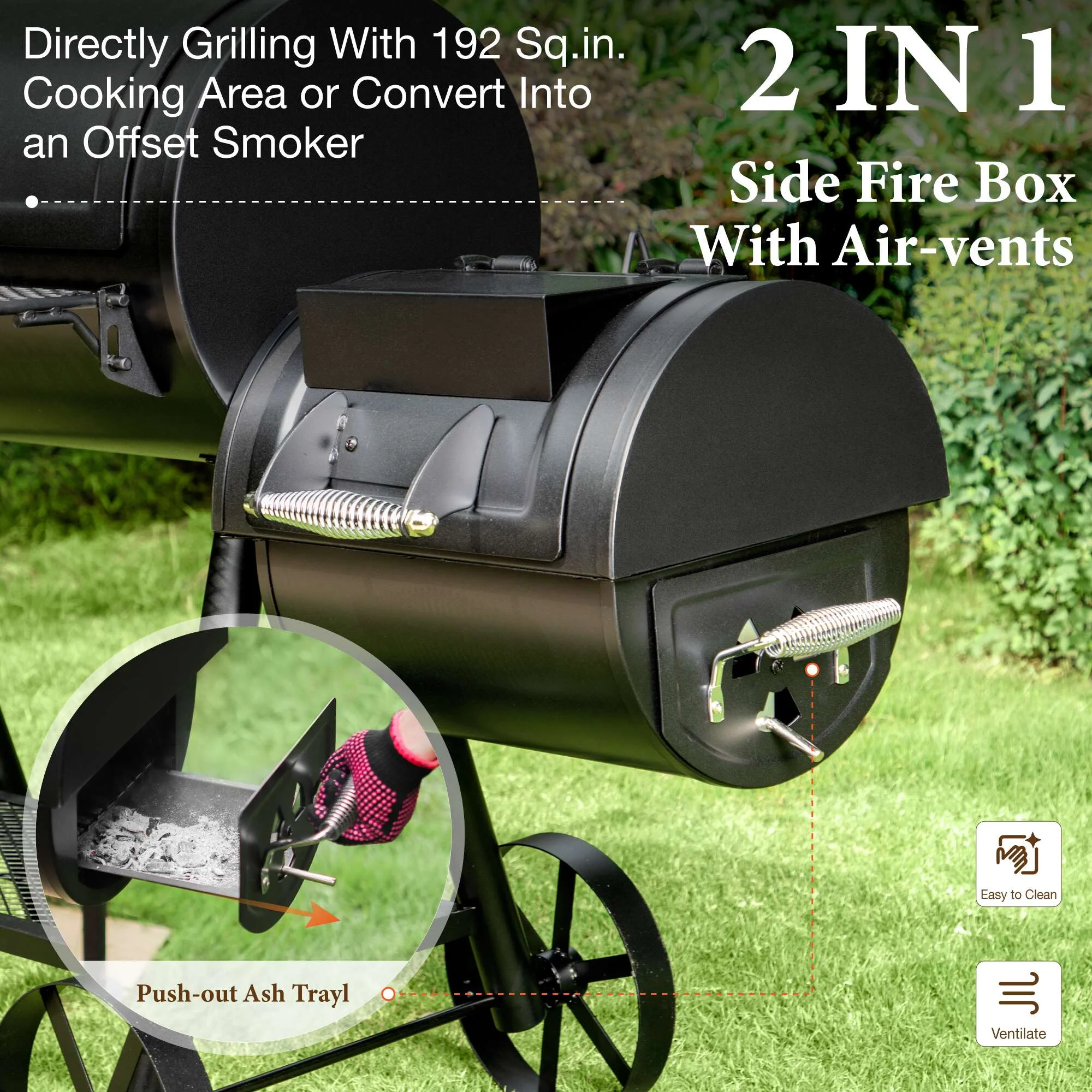 With side charcoal access door, more convenient to add charcoal