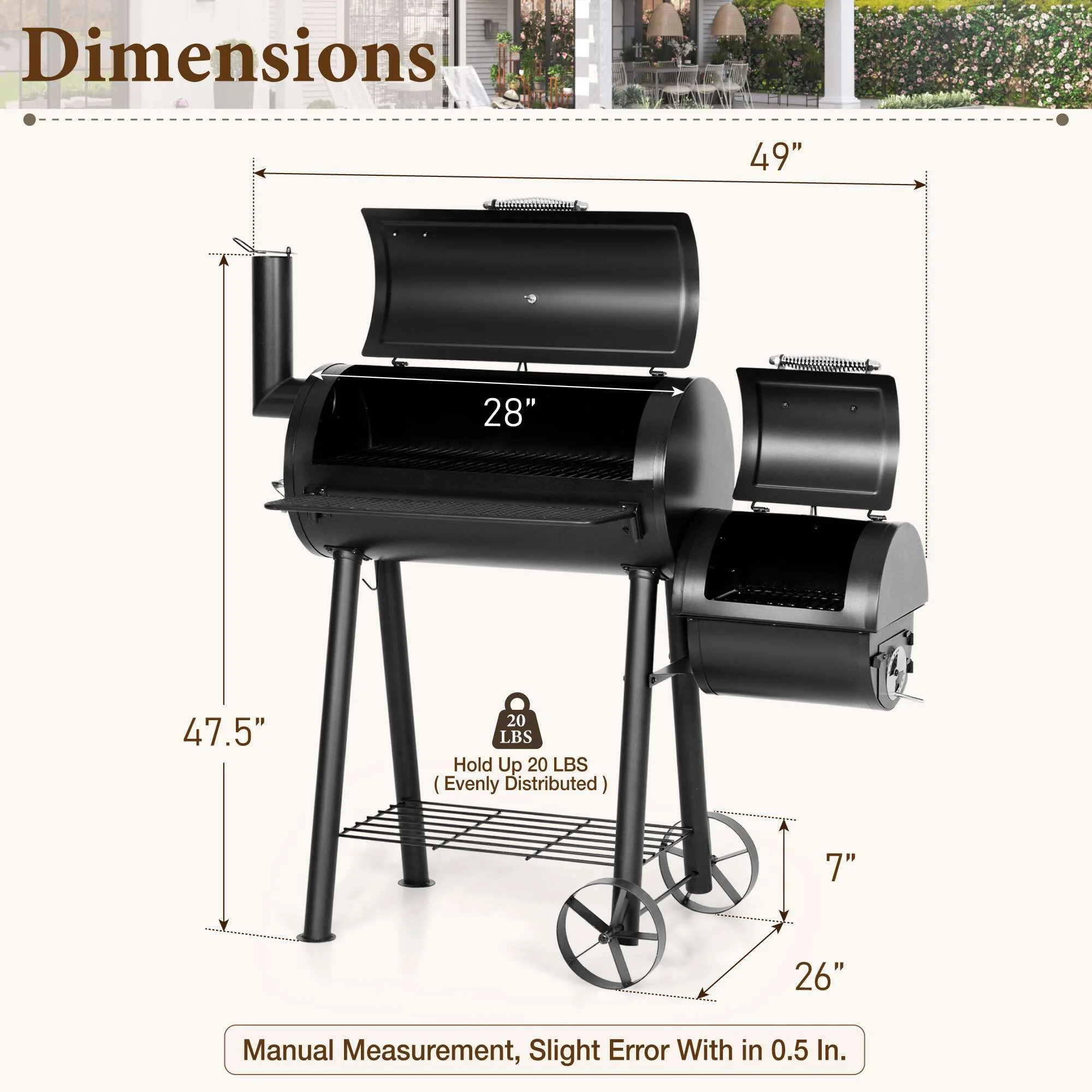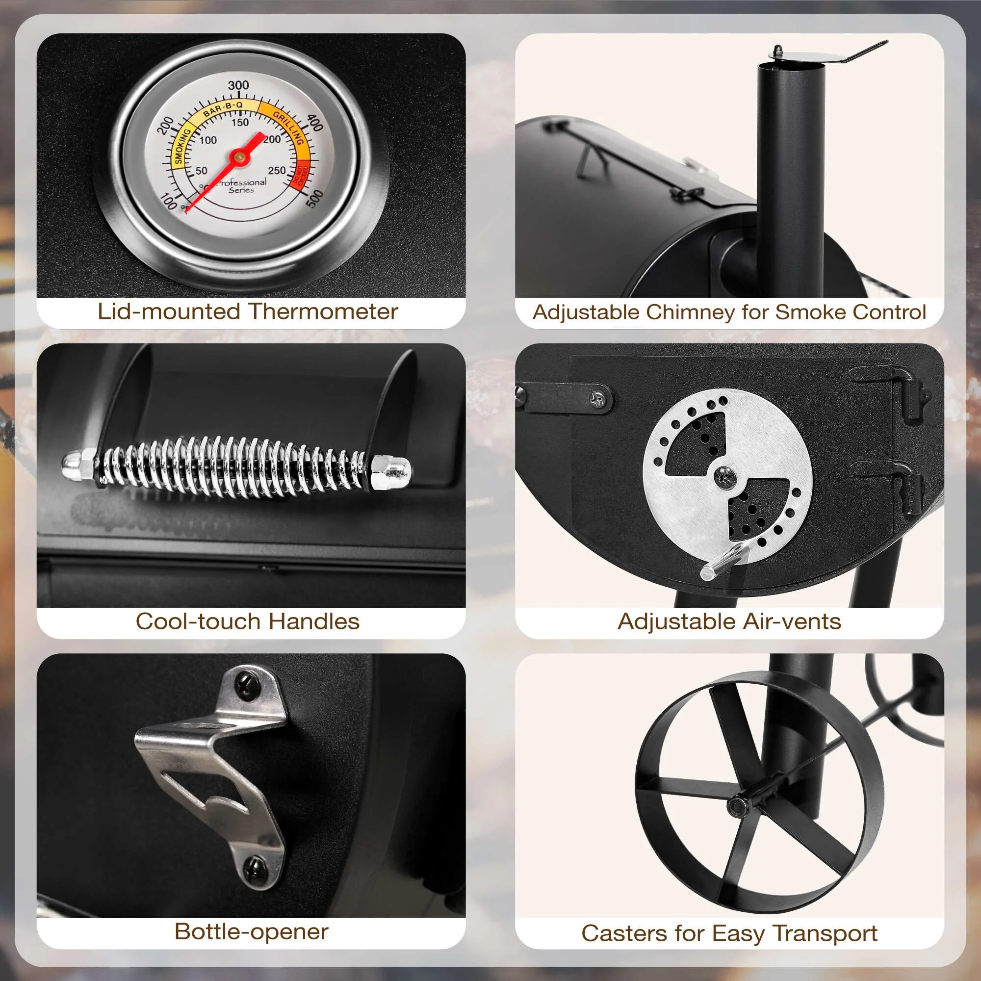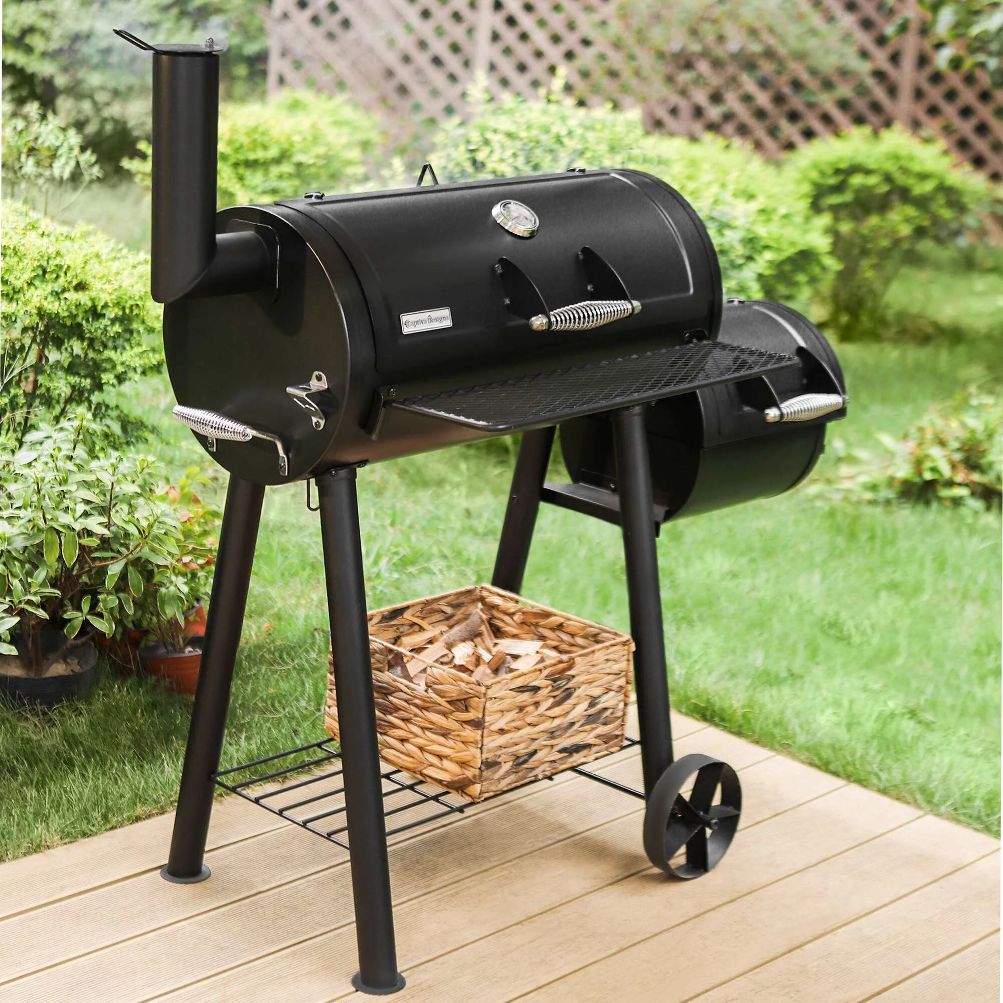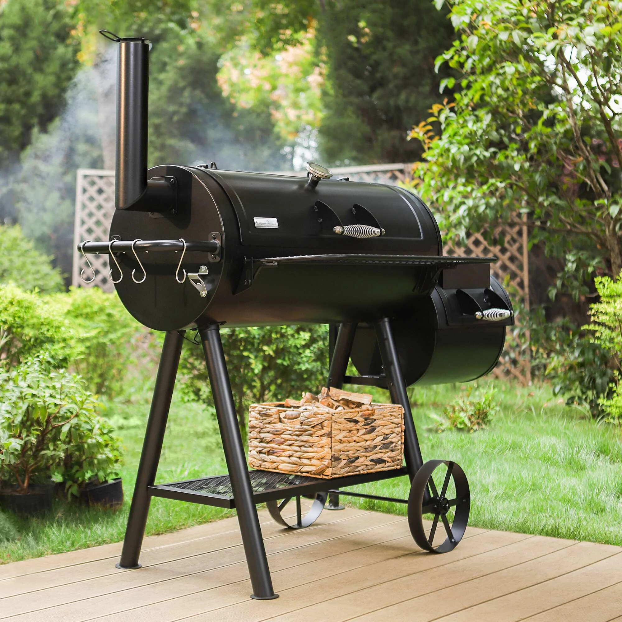 - ��Charcoal Grill��With a firm combination of offset smoker, this charcoal grill delivers excellent performance. Experience grilled and smoked meat at the same time with no hassle.