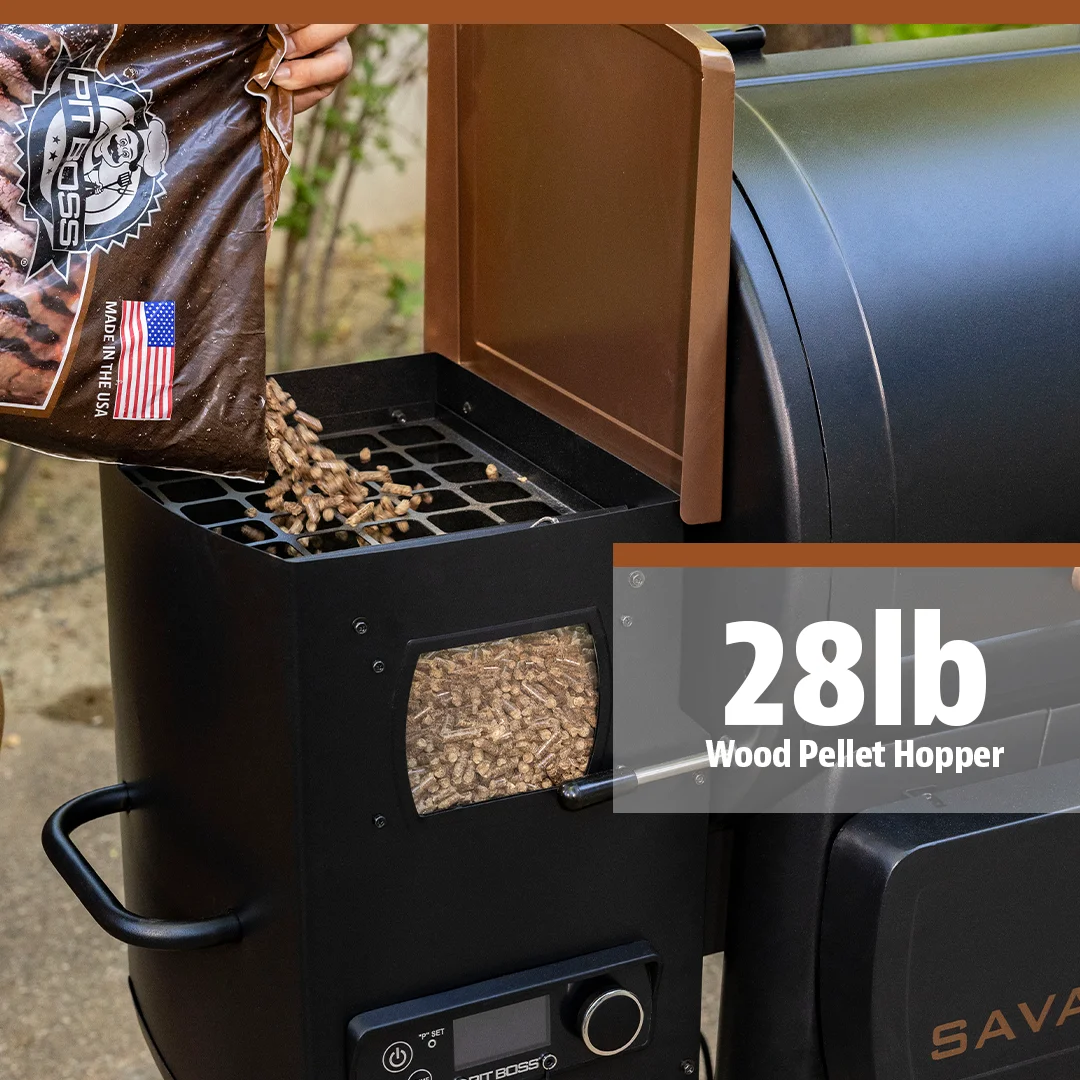 - The 28 lb. hopper holds enough pellets to cook even the lowest and slowest of dishes and features a hopper cleanout door for easy access