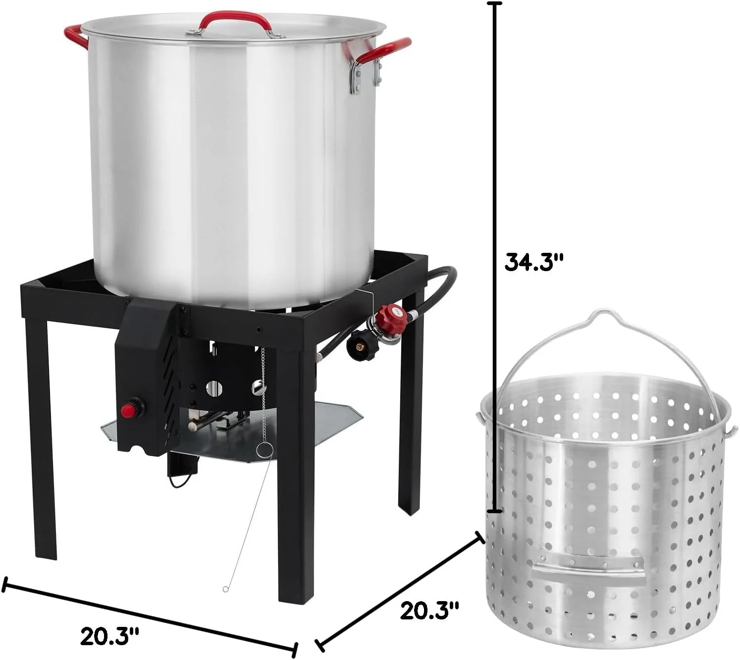 - Sturdy Stand-- The crawfish boiler features a sturdy square-shaped steel stand with 5 legs for stability and secure support. The heat-resistant powder coating enhances its ability to withstand high temperatures