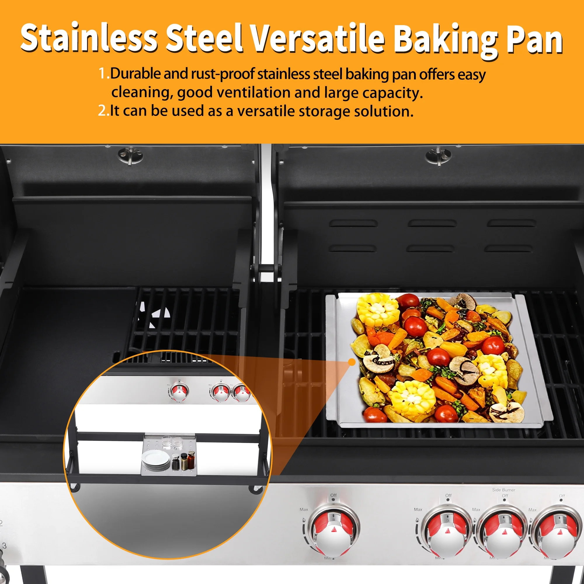 - Utilize 37200 BTU propane gas power across three burners and a side burner for efficient searing.