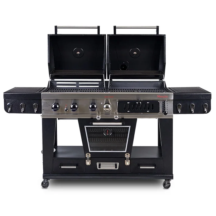 - Can be used as a liquid gas grill, a charcoal grill, a smoker or indirect cooking