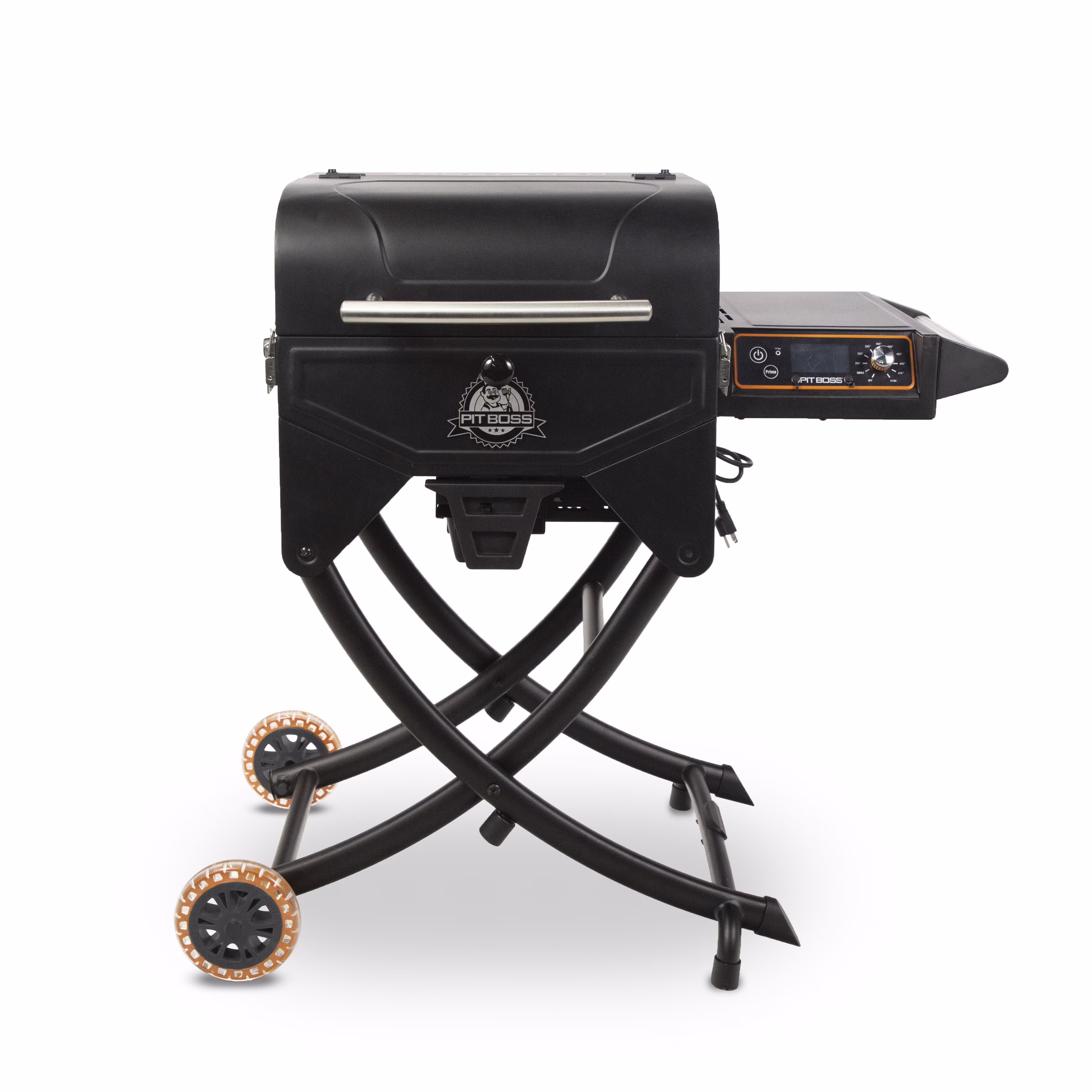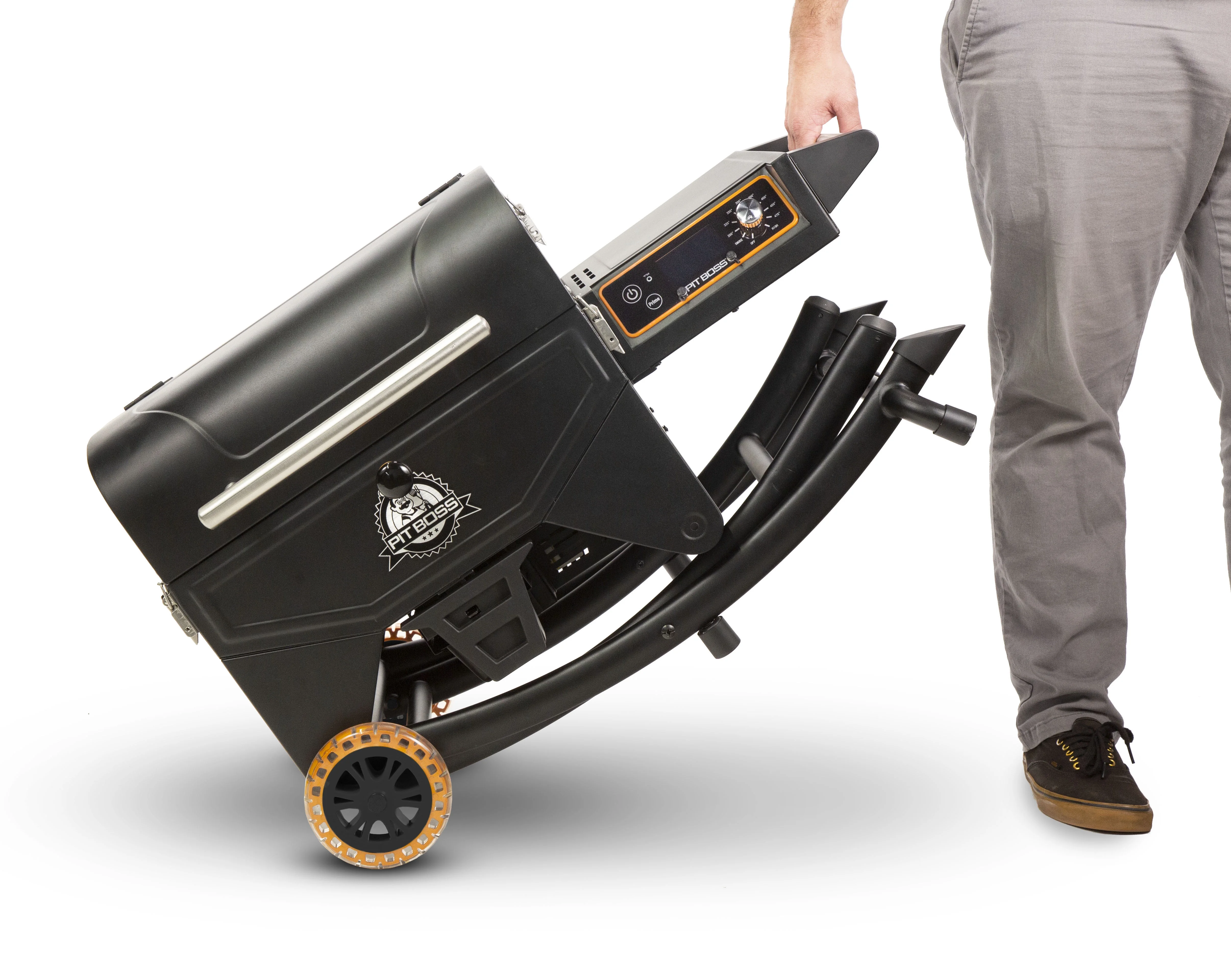 - Portable design with folding legs, rolling wheels, a heavy-duty steel construction, and a high-temp coat finish. This grill is both foldable and durable