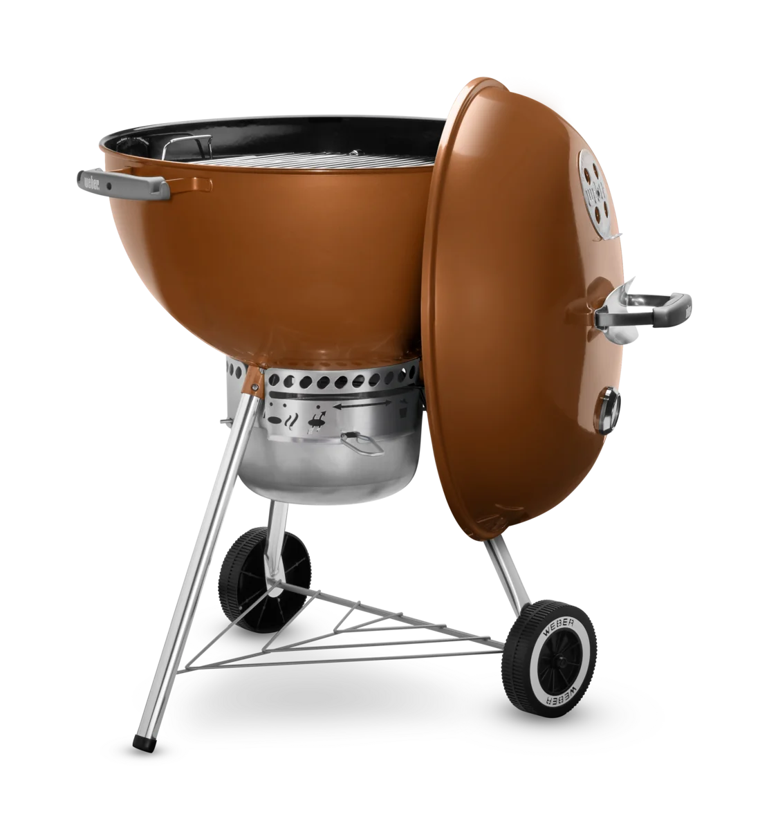 Ignite your love for charcoal grilling with the iconic Weber Original Kettle? Premium Grill with black finish. Featuring a hinged cooking grate for easy charcoal refueling and the One-Touch? cleaning system with a high-capacity ash catcher, this grill delivers a seamless grilling experience from start to finish. Its durable porcelain-enameled bowl and lid retain heat and resist rust, while the classic kettle shape ensures even cooking and timeless style. Perfect for backyard barbecues, this upgraded classic makes grilling simple, clean, and flavorful.