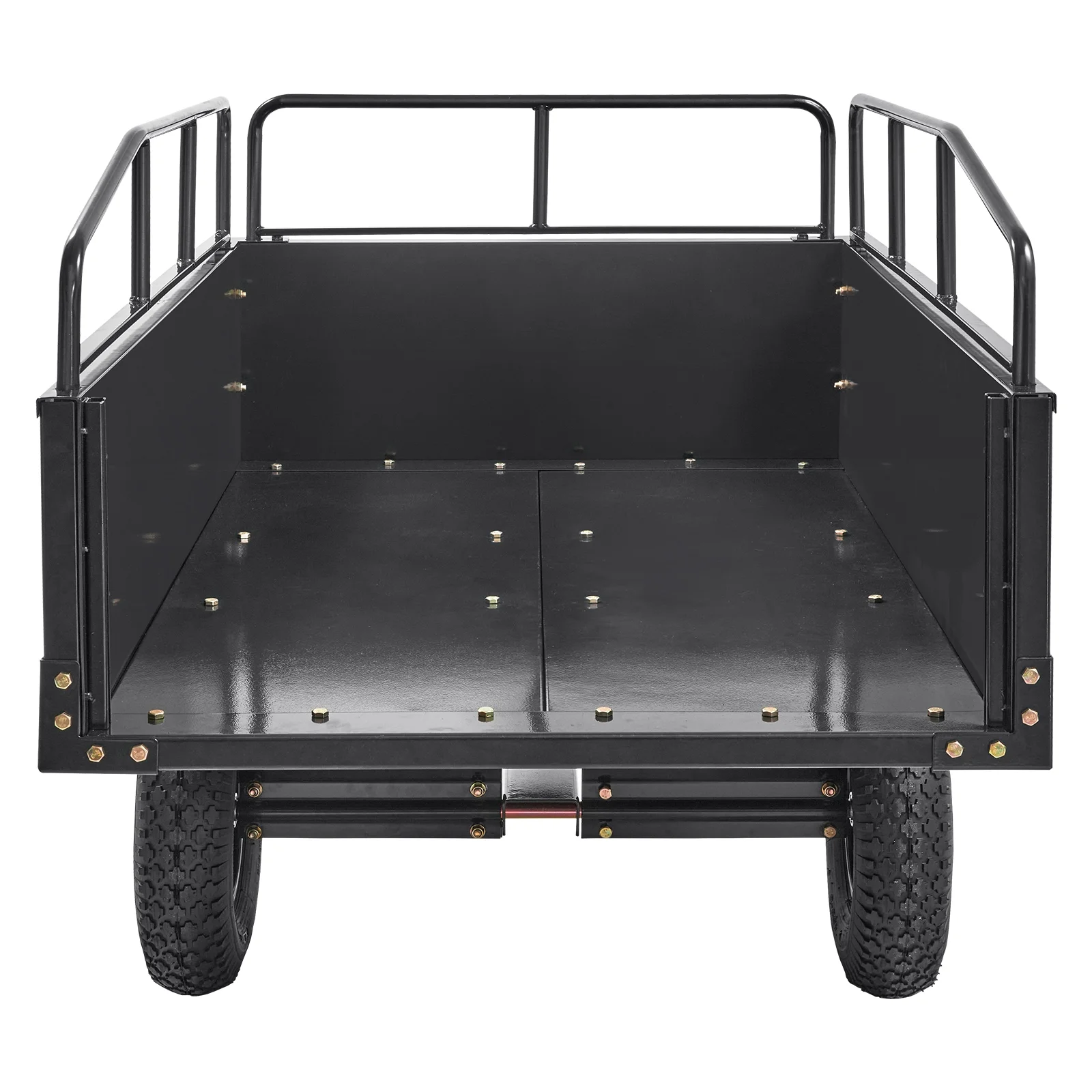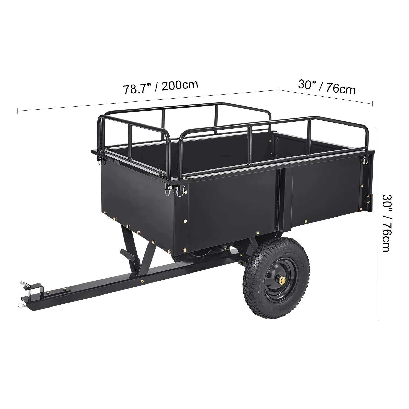 - Flexible Dumping: Say goodbye to the strain of manual handling. Our garden ATV trailer boasts a user-friendly dump feature, allowing you to clear debris swiftly with a simple hand-pull or foot-step and a quick opening of the rear gate. Make your yard work less work and more comfortable.