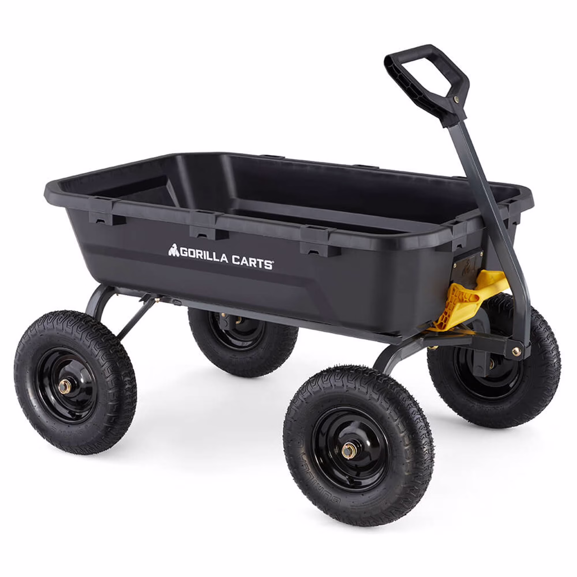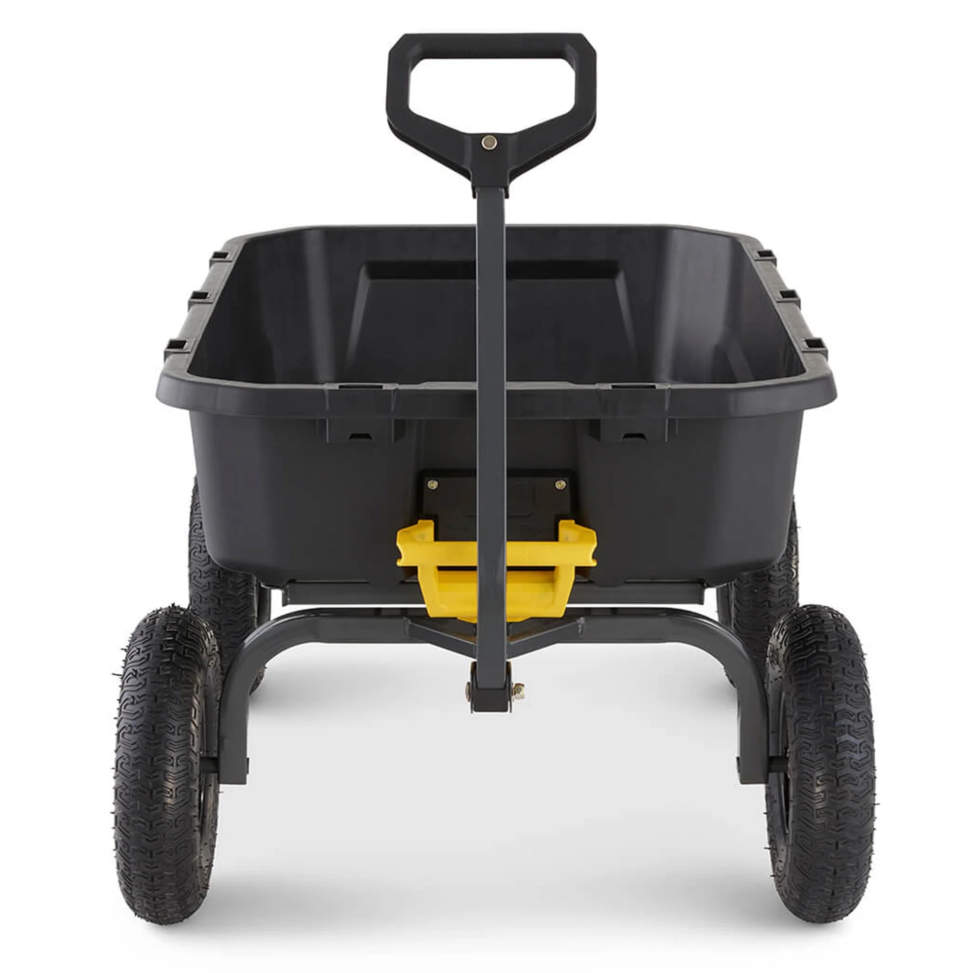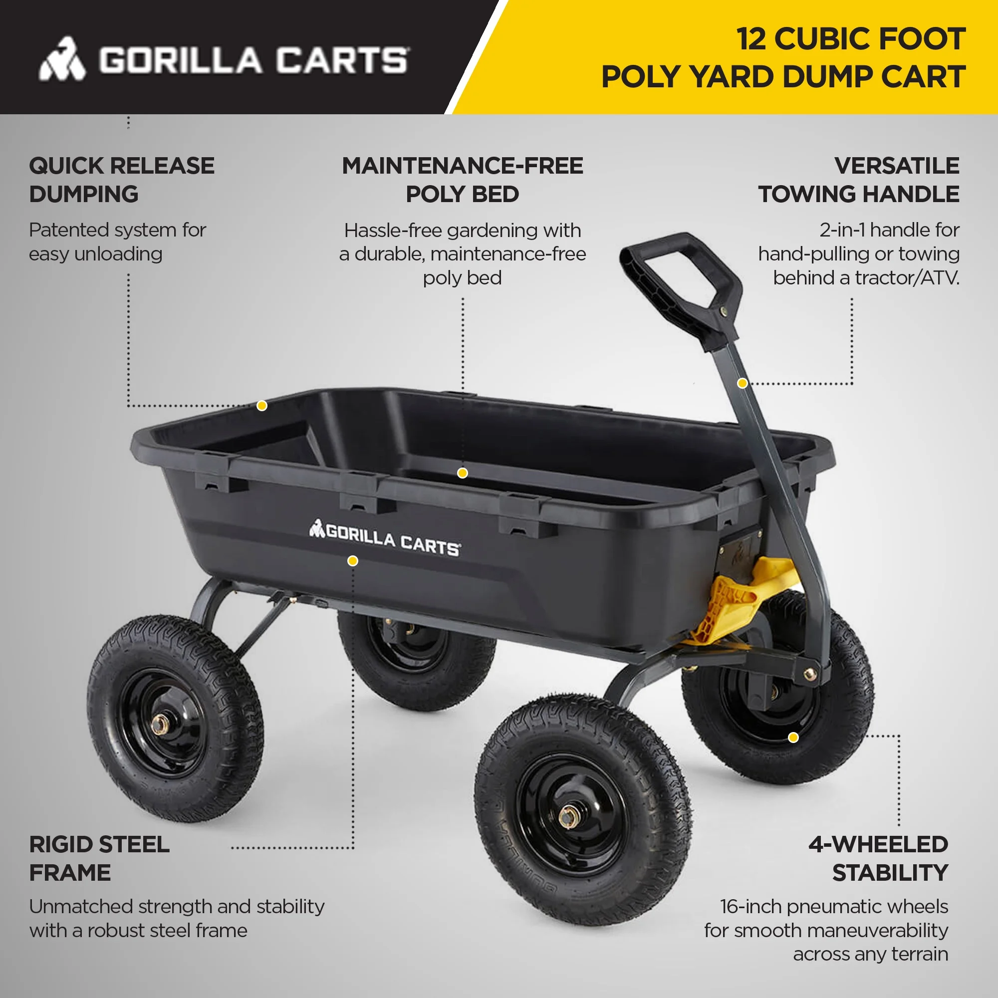 - Extra-large poly yard dump cart with 12-cubic-foot capacity, ideal for heavy projects