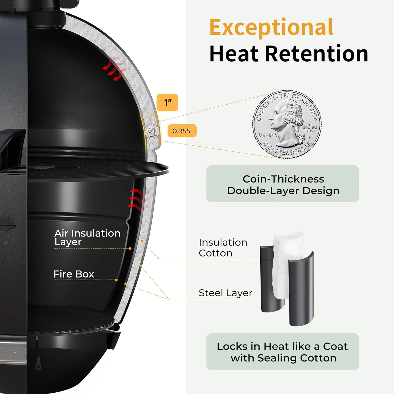 - ??[Superior Heat Retention] Double-layer 0.955" sealing cotton enhances insulation, reduces heat loss, and boosts fuel efficiency for eco-friendly grilling
