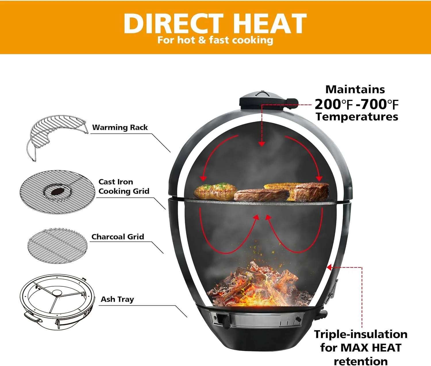 - ??[Flexible Temperature Control] Wide range of 200��F to 700��F lets you switch between low smoking and high searing. Perfect for any cooking style you need