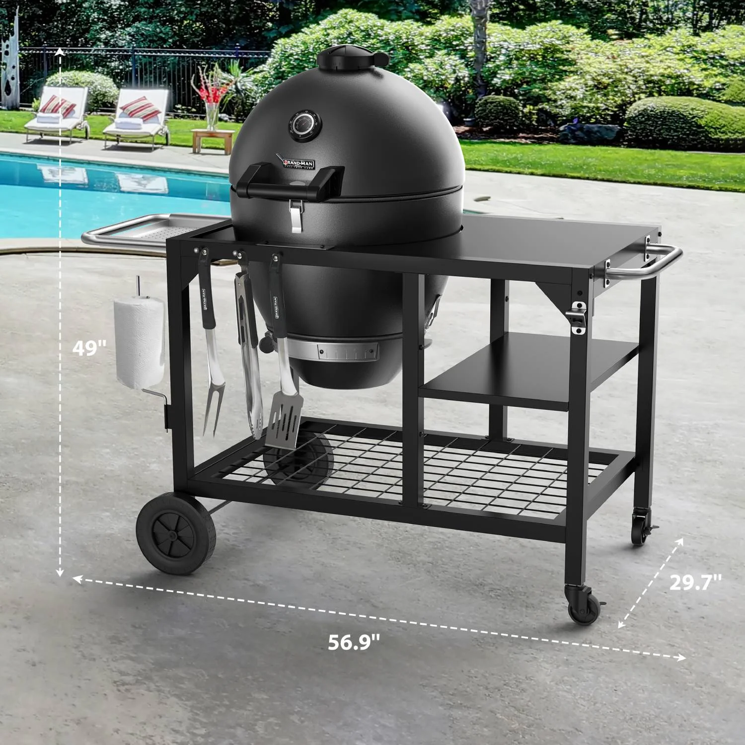 - ??[Portability] With a sturdy cart and lockable casters, easily moved around your backyard, patio, or any outdoor space. It's ideal for backyard BBQs, picnics, or camping trips