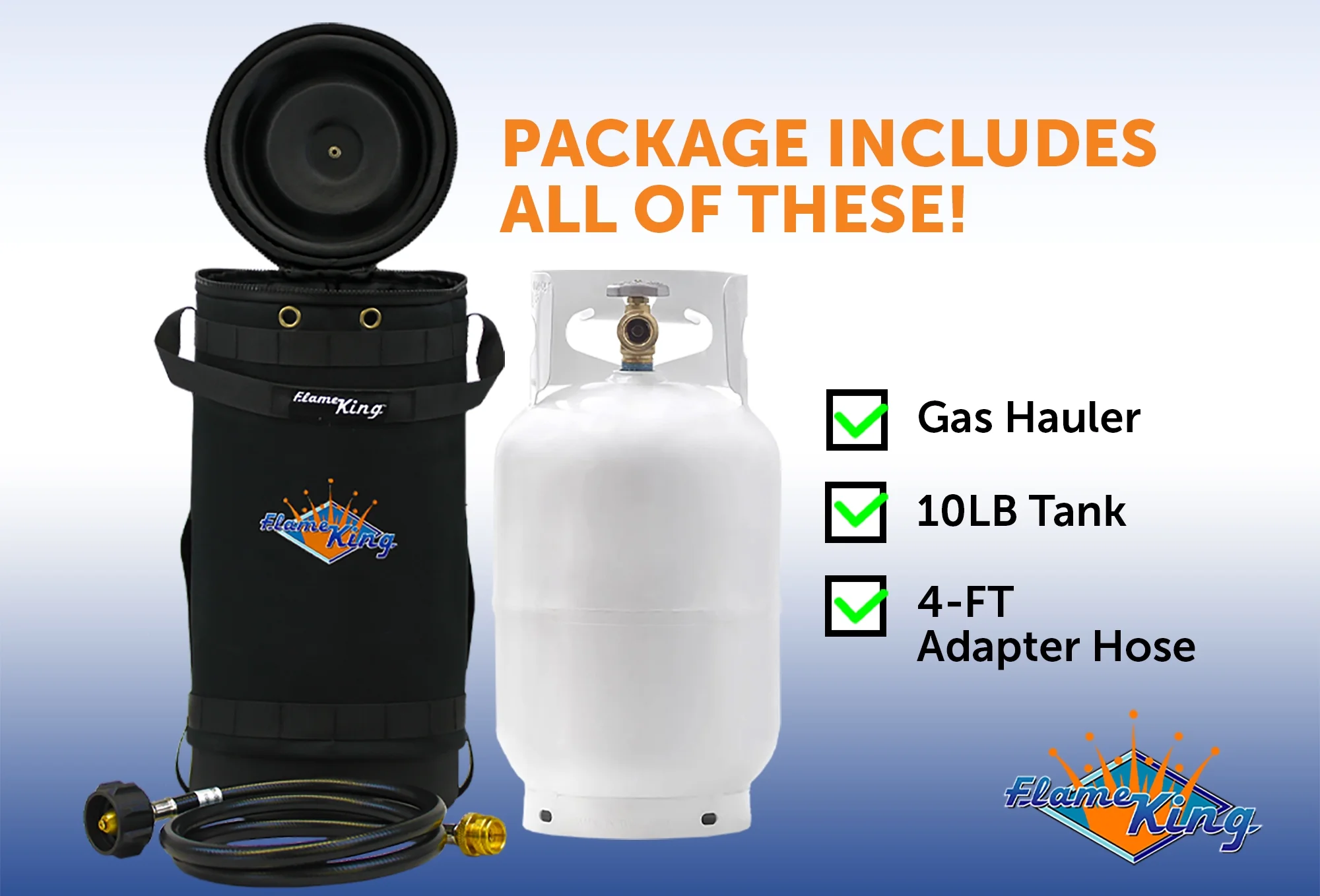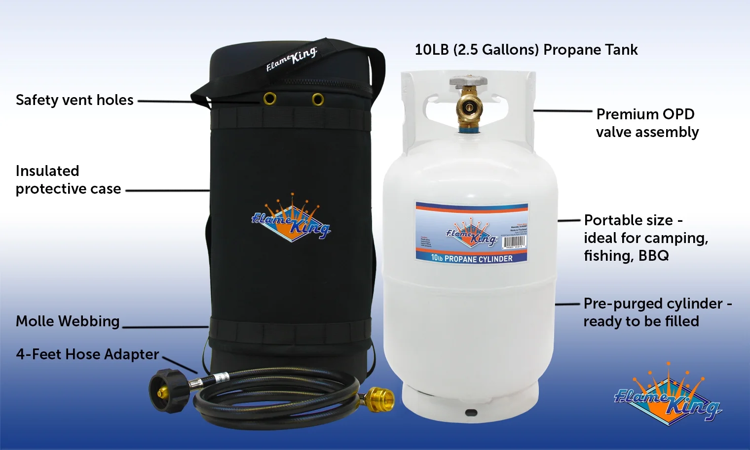 - Your Ideal Carrying Case: Protect your 10-lb propane tank with the Flame King gas hauler during transport for activities like boating, camping, fishing, RVing, or tailgating. Keep your tank secure and easily accessible.